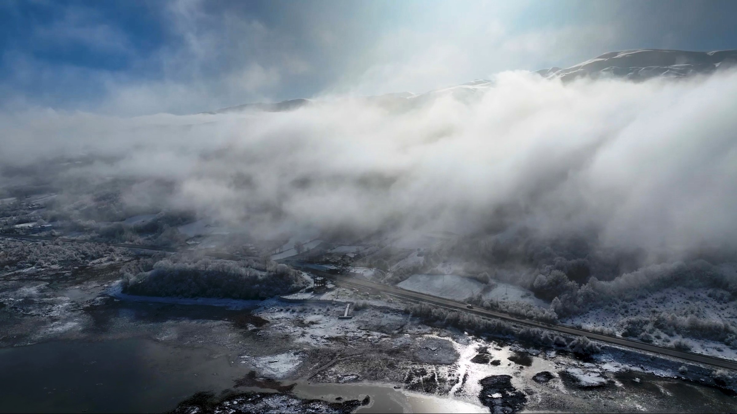 Karla kaplanan göl, sessizliği ve dinginliğiyle kışın farklı bir yüzünü ortaya koyuyor.