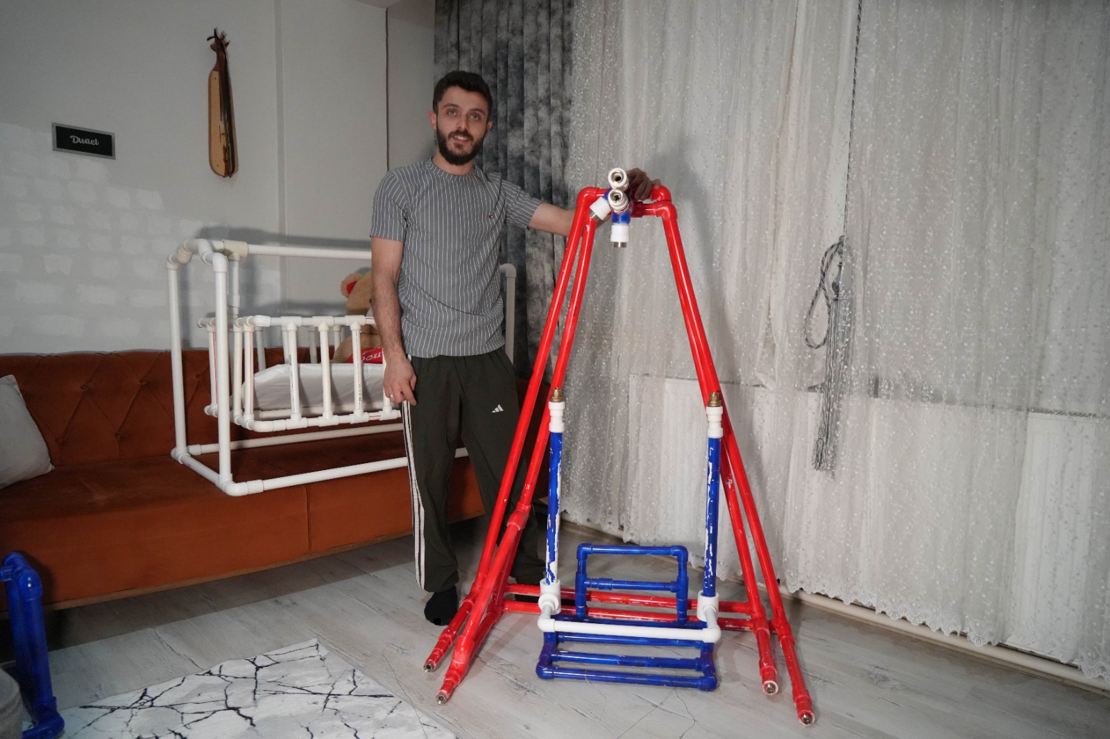 Samsun’da 10 yıldır su tesisatçılığı yapan Furkan Karadağ, yakında dünyaya gelecek kızı için unutulmayacak bir hediye hazırlamaya karar verdi. Mesleğinden ilham alan genç baba adayı, tamamen su borularından bir beşik tasarladı. Boruları ısıtarak şekillendiren Karadağ, ortaya hem sağlam hem de dikkat çekici bir beşik çıkardı.