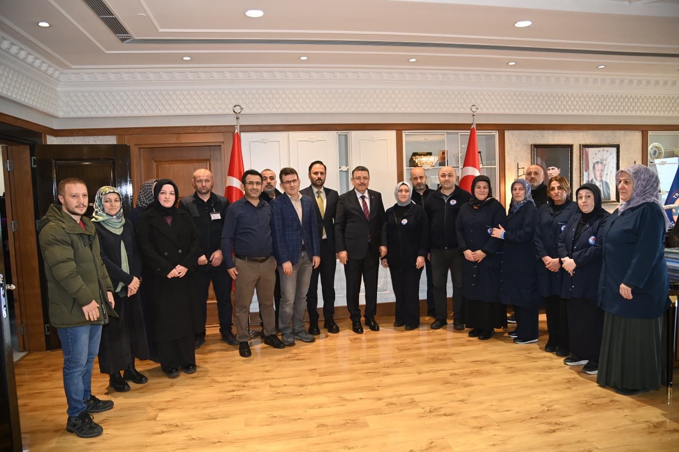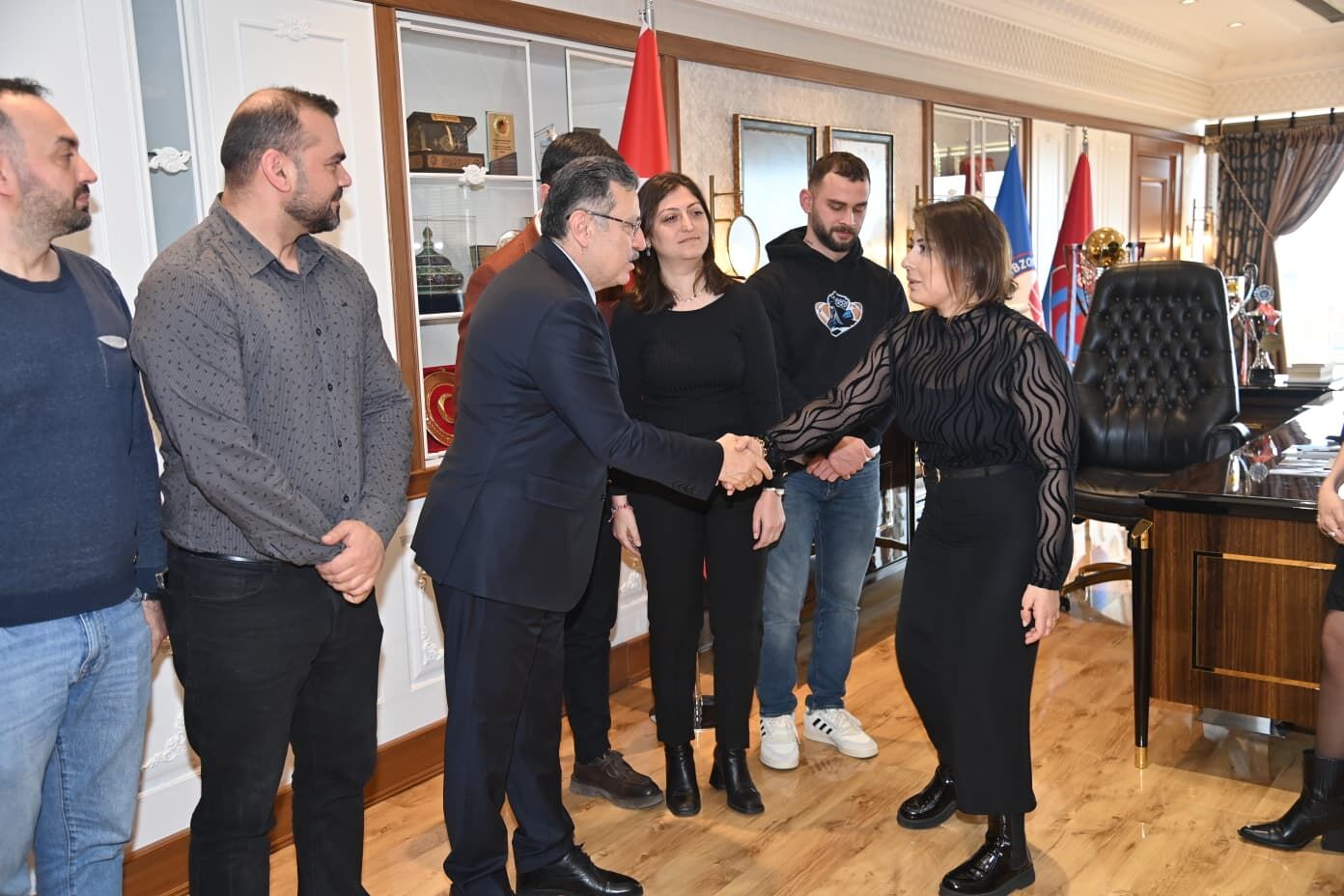 Trabzon Büyükşehir Belediyesi’nde bayram öncesi anlamlı bir buluşma yaşandı. Büyükşehir Belediye Başkanı Ahmet Metin Genç, belediye personeliyle bir araya gelerek bayram sevincini paylaştı. Başkanlık makamında gerçekleşen programda Genç, tüm çalışanlarla tek tek bayramlaşarak günün anısına hatıra fotoğrafları çektirdi. Samimi atmosferde gerçekleşen buluşma, belediye çalışanları arasında birlik ve motivasyonu artırdı.