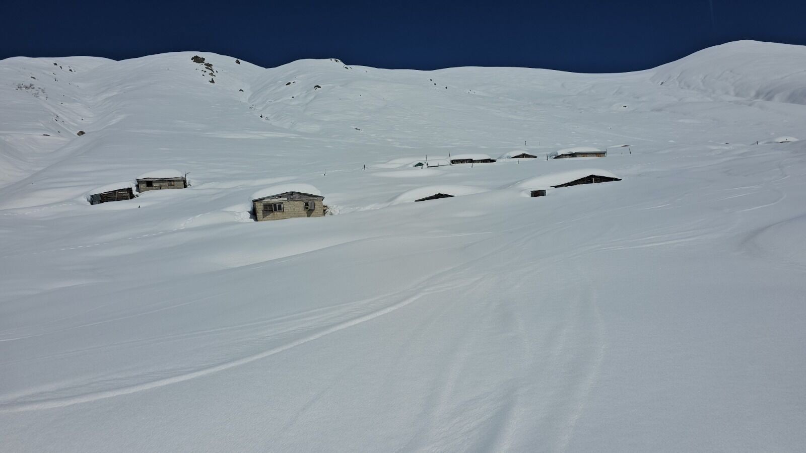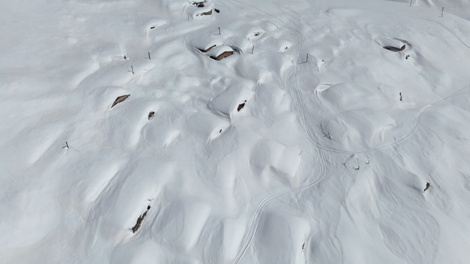 Yayla evlerinin çatılarına kadar ulaşan kar, bölgede yaşamı büyük ölçüde durma noktasına getirirken, ortaya çıkan görüntüler adeta kartpostalları andırıyor. Kışın sert yüzünü gösterdiği yaylada, doğanın sunduğu bu manzara dikkat çekiyor.