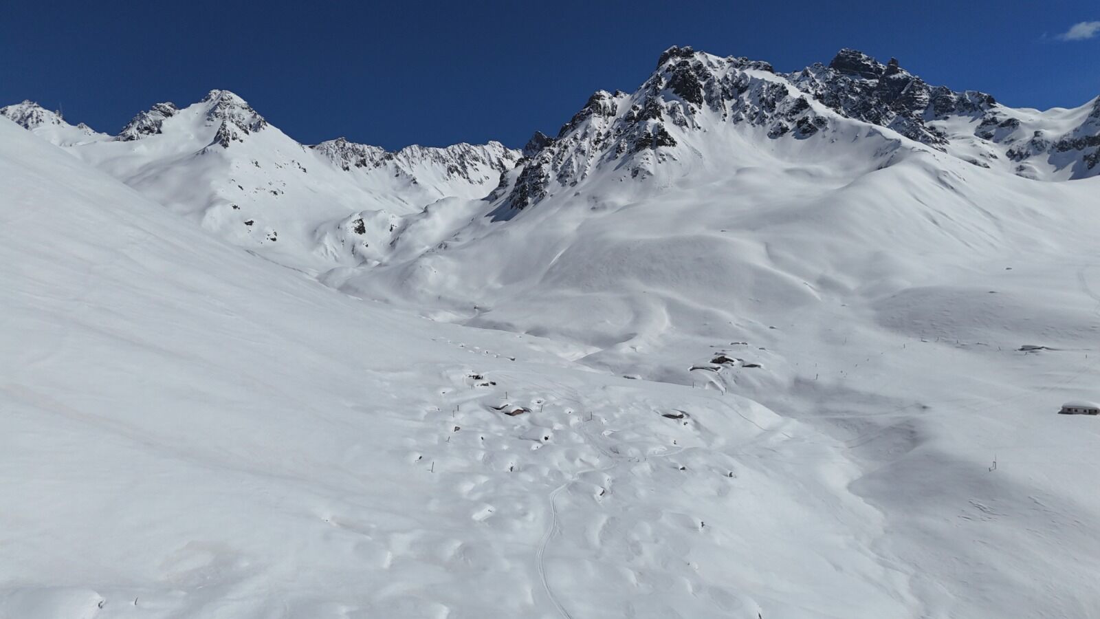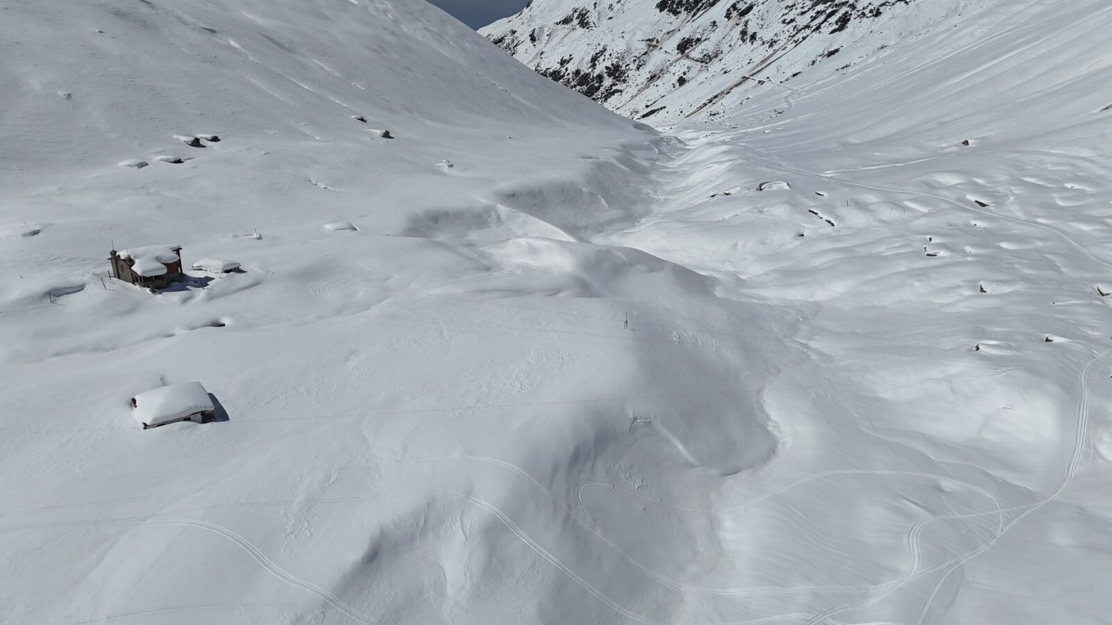 Karla kaplanan yayla ve çevresi, dron ile havadan görüntülendi. Beyaz örtüyle kaplanan evler, dağlar ve vadiler, görsel açıdan etkileyici kareler ortaya çıkardı.