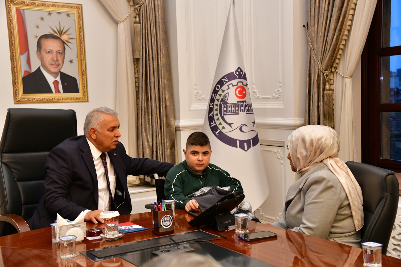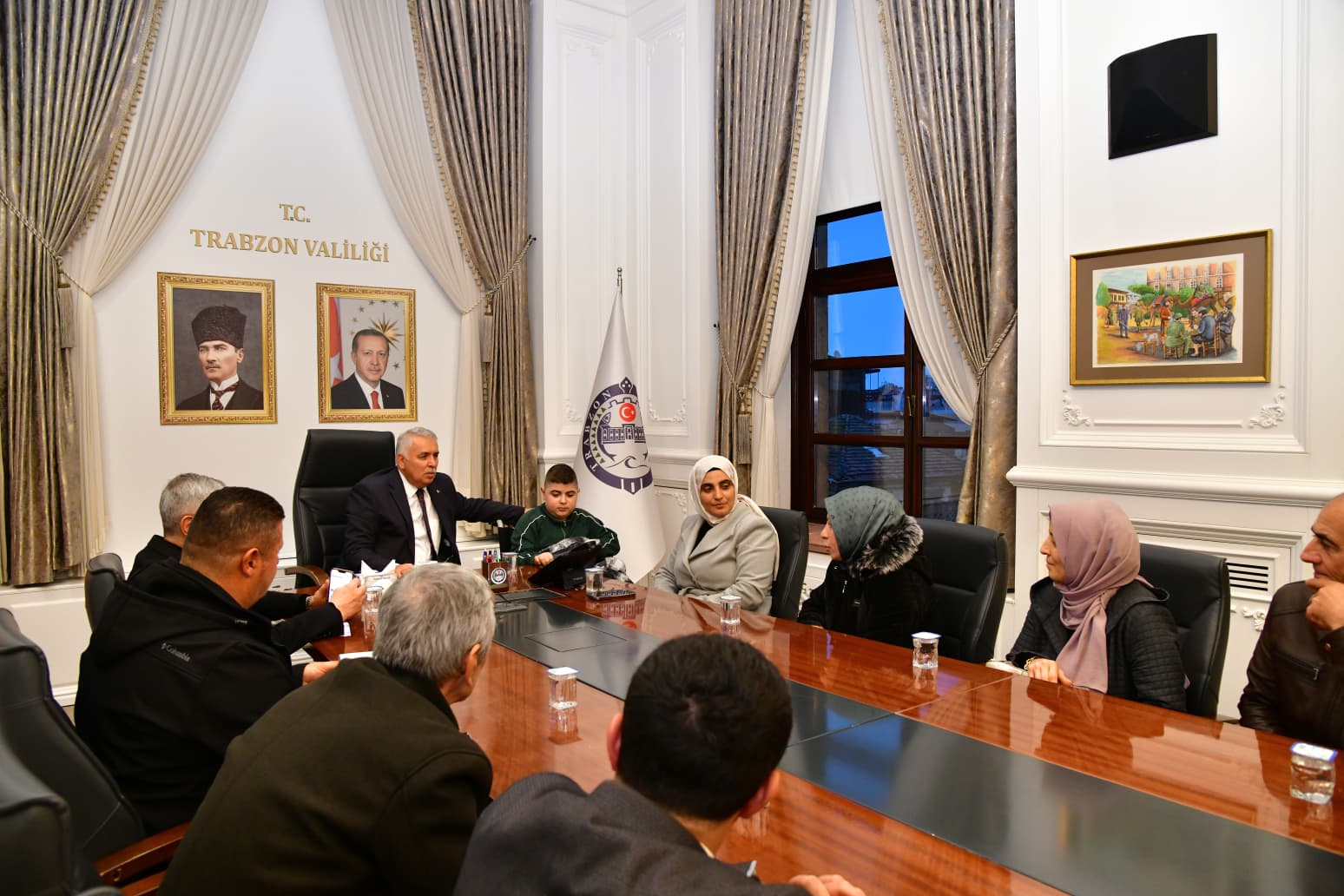 Trabzon Valisi Aziz Yıldırım, Duchenne Musküler Distrofi (DMD) hastalığı bulunan Harun Yakupoğlu ve ailesini makamında kabul etti.