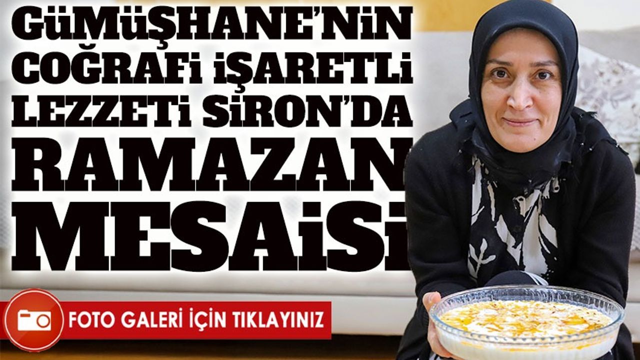 Gümüşhane’nin coğrafi işaretli lezzeti olan Gümüşhane Sironu, Ramazan ayı öncesinde kent genelinde yeniden mutfakların baş tacı oldu. 2018 yılında tescillenerek coğrafi işaret alan bu geleneksel lezzet, özellikle sahur ve iftar sofralarının vazgeçilmezleri arasında yer alıyor. Kadınlar, imece usulü bir araya gelerek günler öncesinden siron hazırlıklarına başlıyor. Uzun süre muhafaza edilebilmesi ve pratik şekilde hazırlanabilmesi sayesinde Ramazan boyunca büyük kolaylık sağlayan Gümüşhane Sironu, hem kültürel mirasın yaşatılmasına hem de şehir ekonomisine katkı sunuyor.