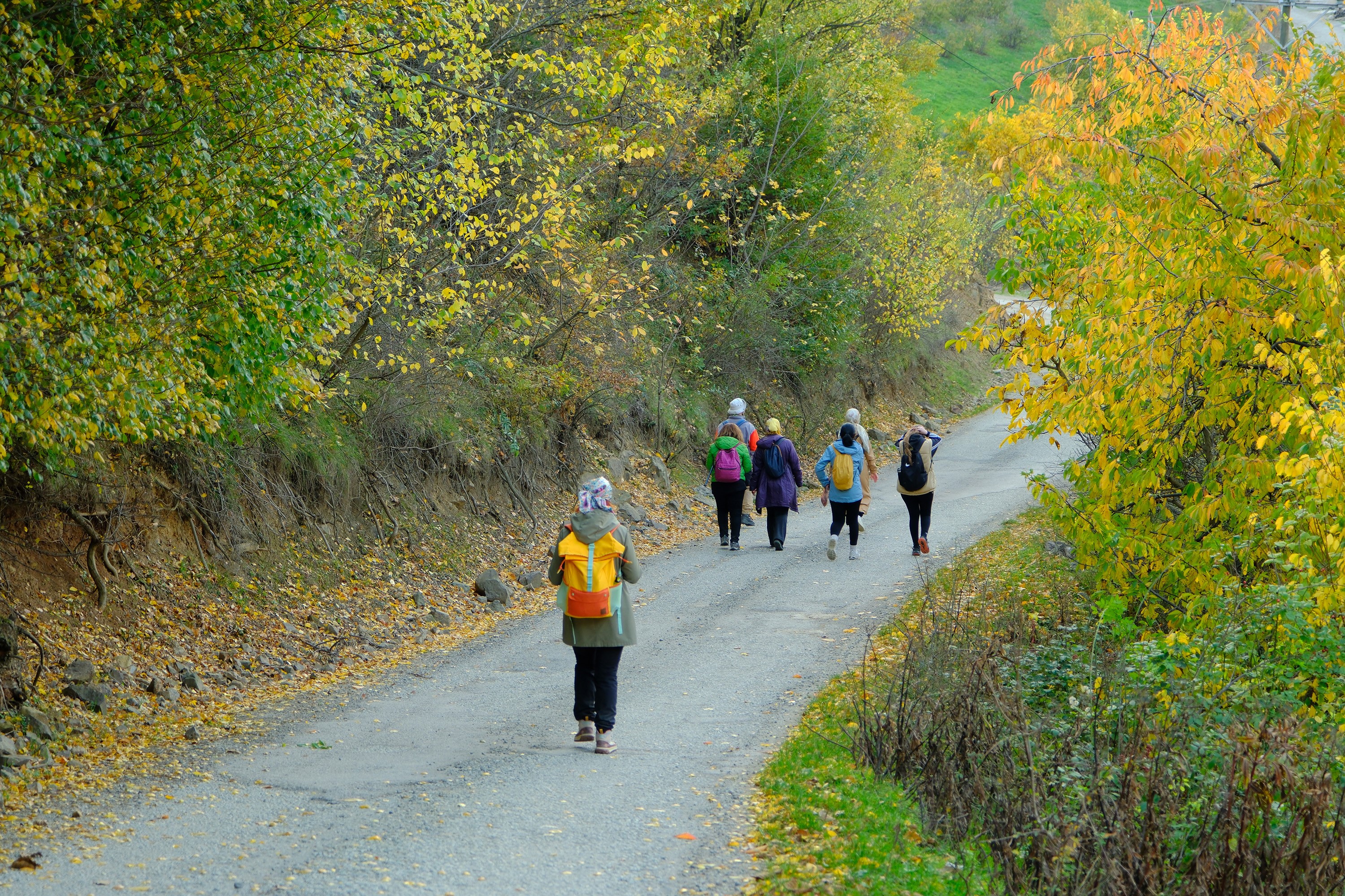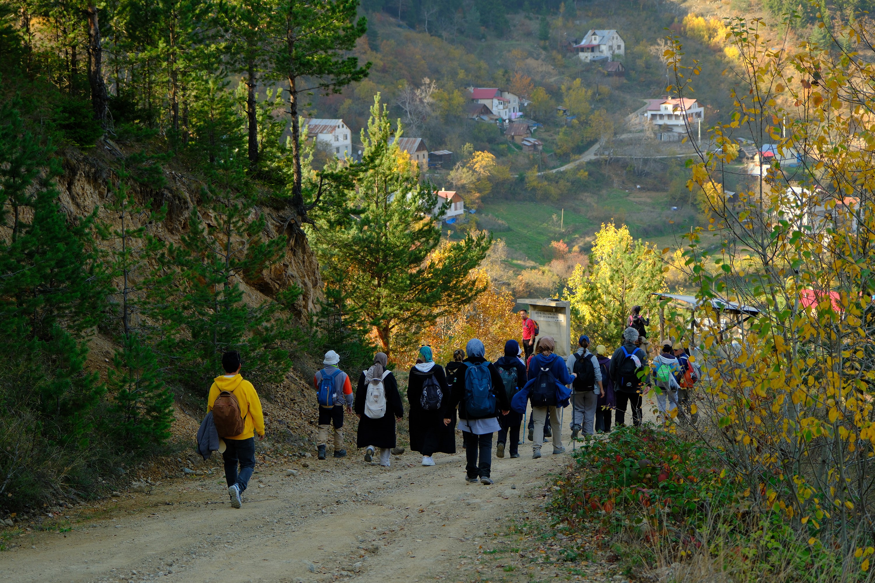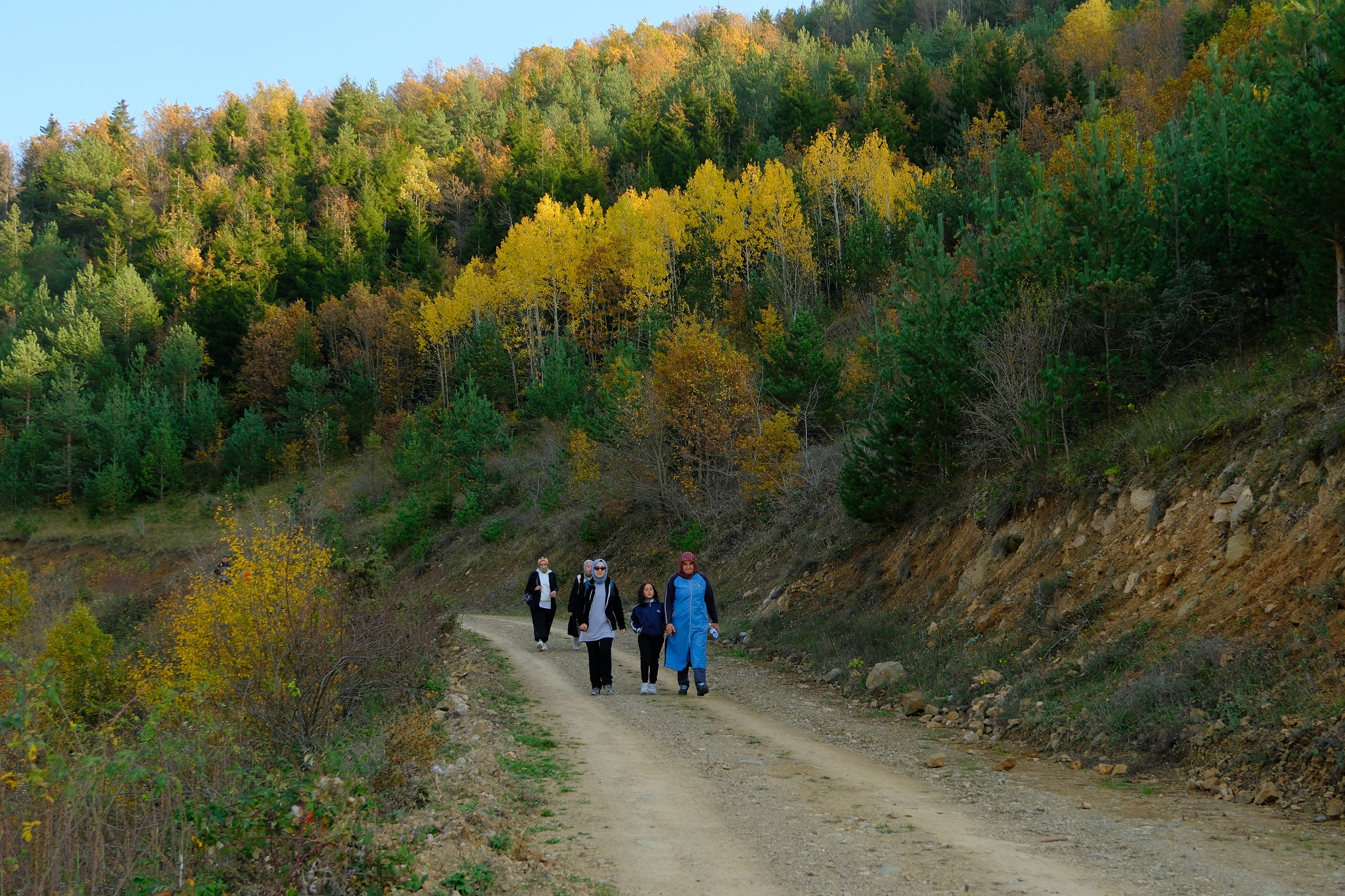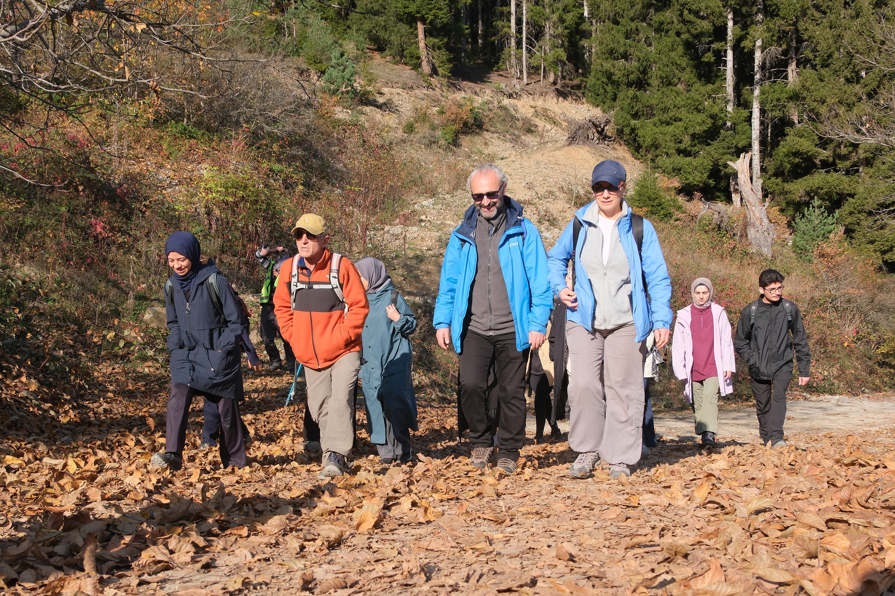Doğa severler Yurt Köyü'nden başladıkları 14 kilometrelik zorlu parkurda, orman yollardan ve Sarıç Dağı eteklerinden geçerek sonbaharın sunduğu görsel şölenin tadını çıkardı.