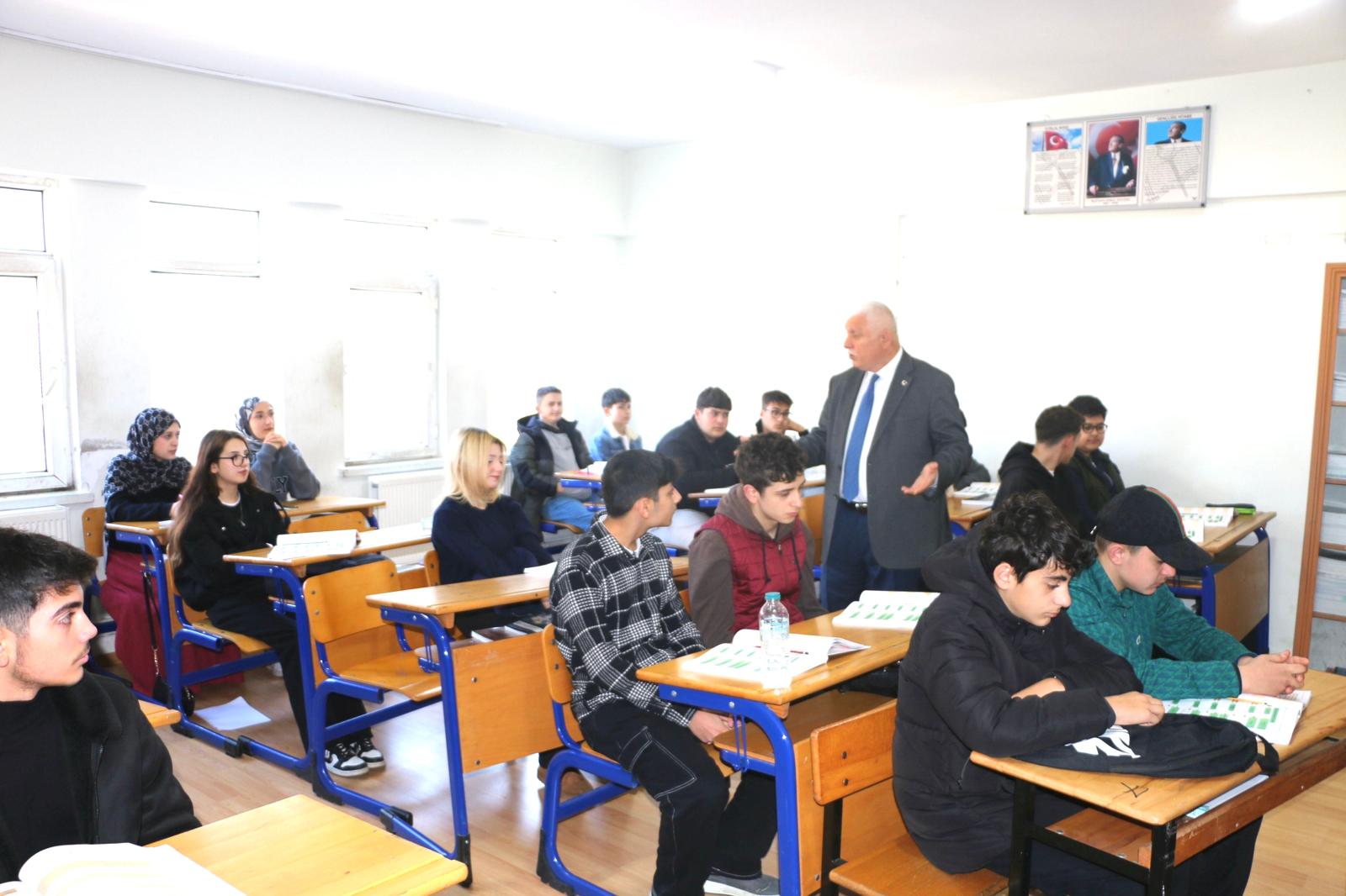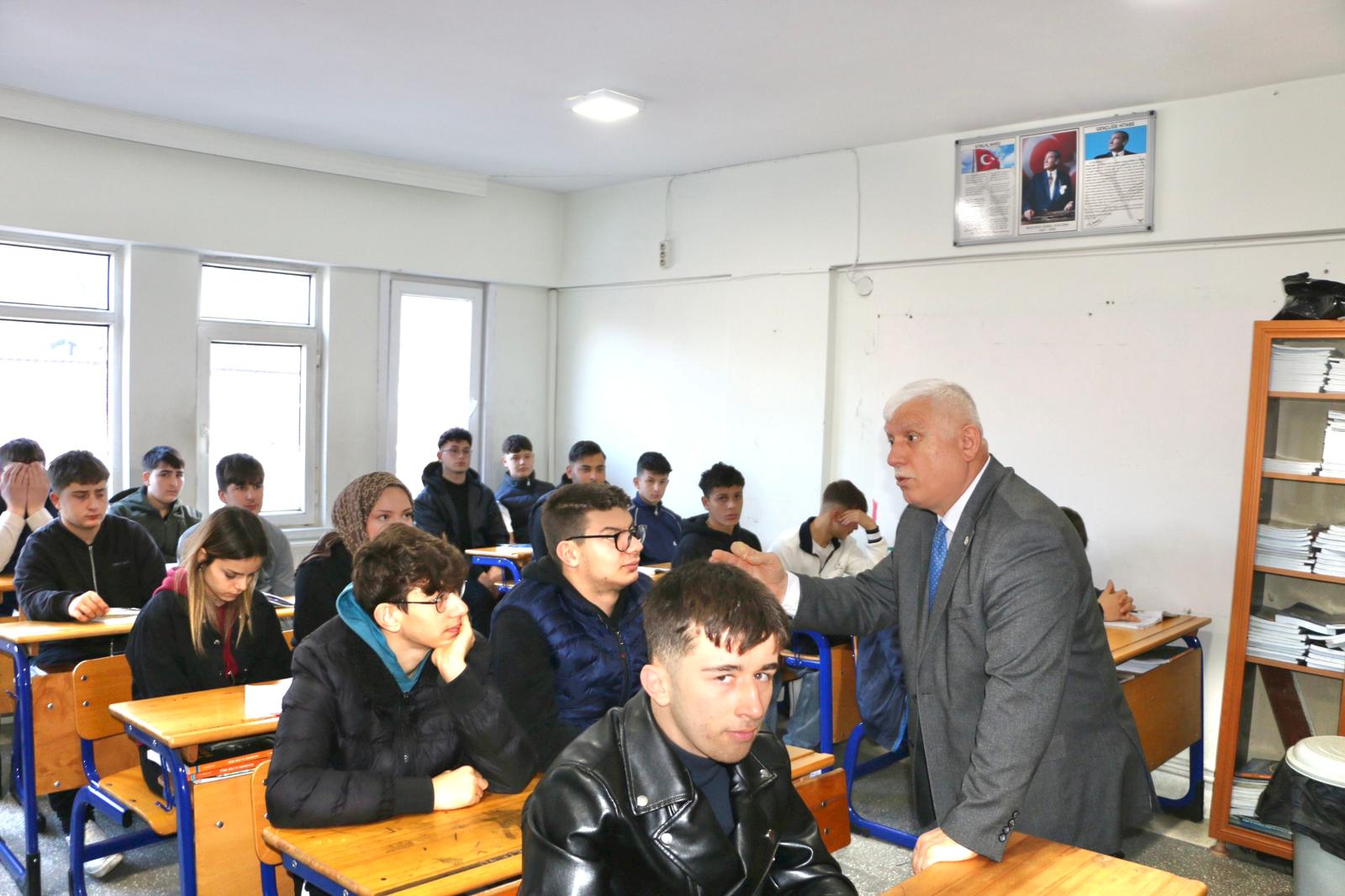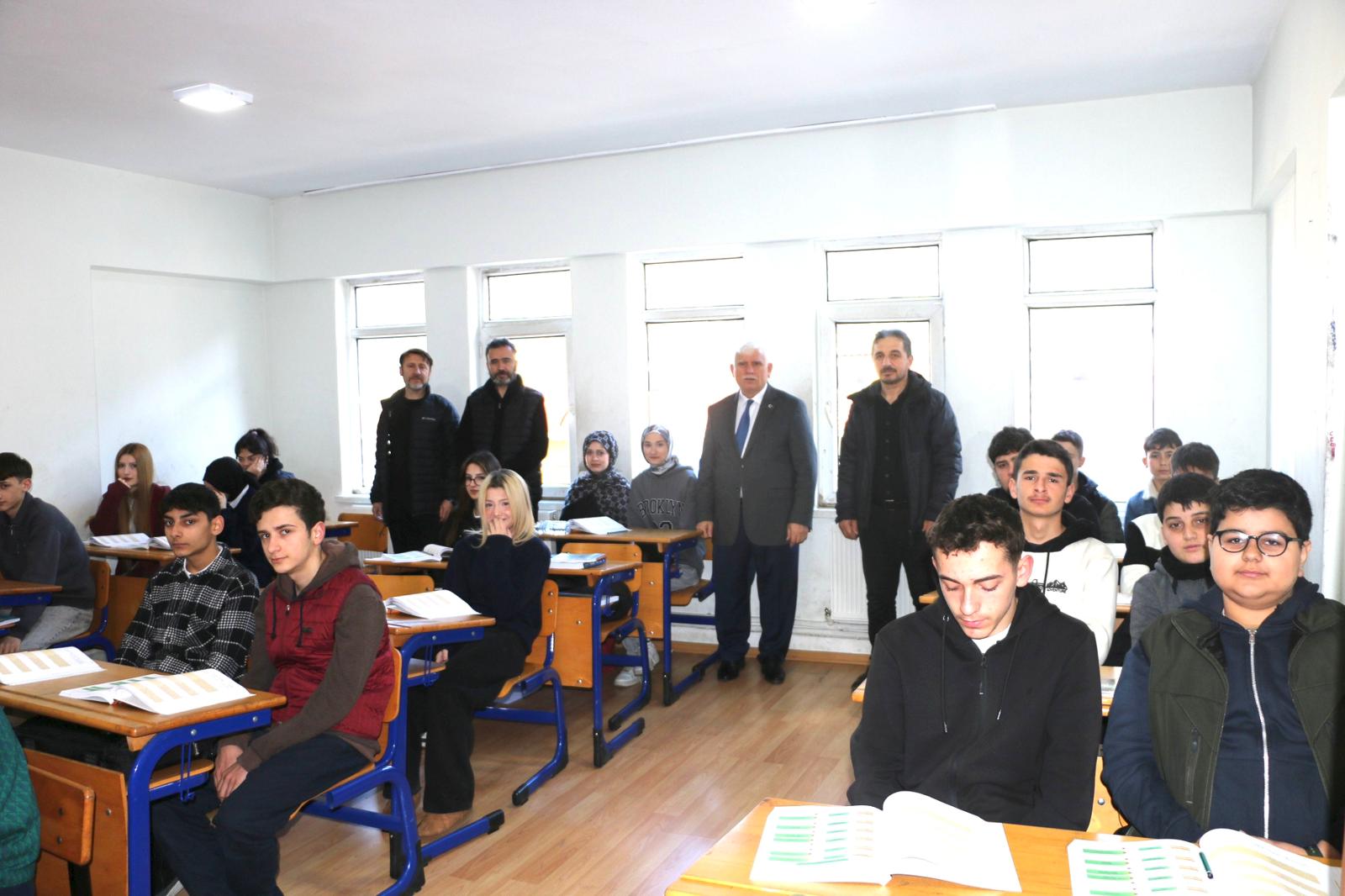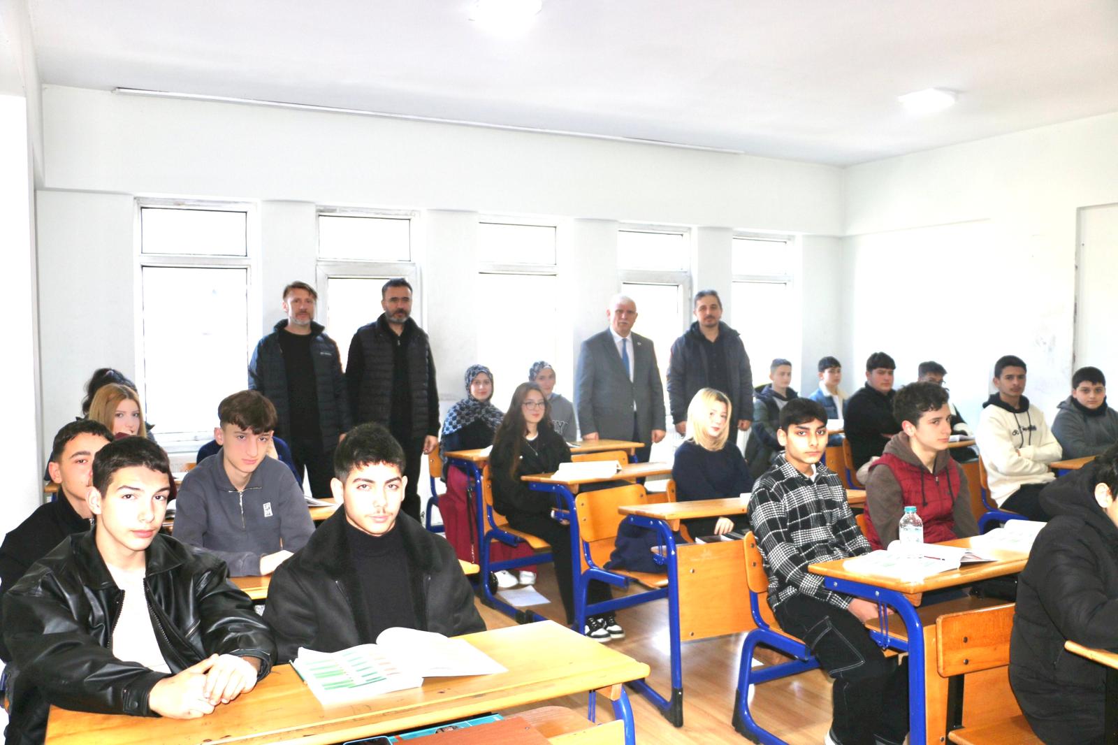 İlçe Milli Eğitim Müdürü İdris Kabahasanoğlu kurum hakkında aldığı bilginin ardından sınıflarında eğitim gören 9. sınıf öğrencilerini ziyaret ederek öğrencilerle sohbet etti.