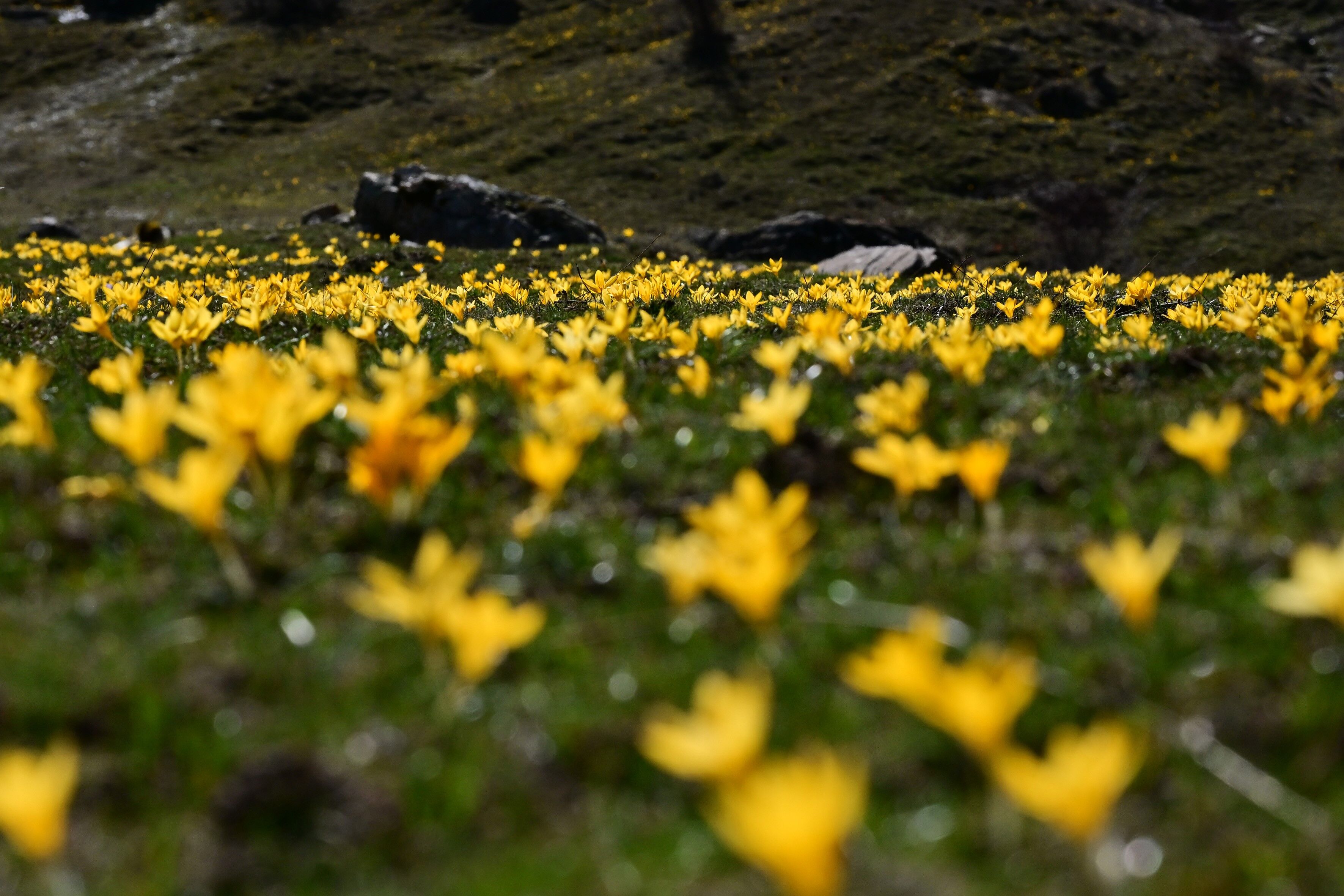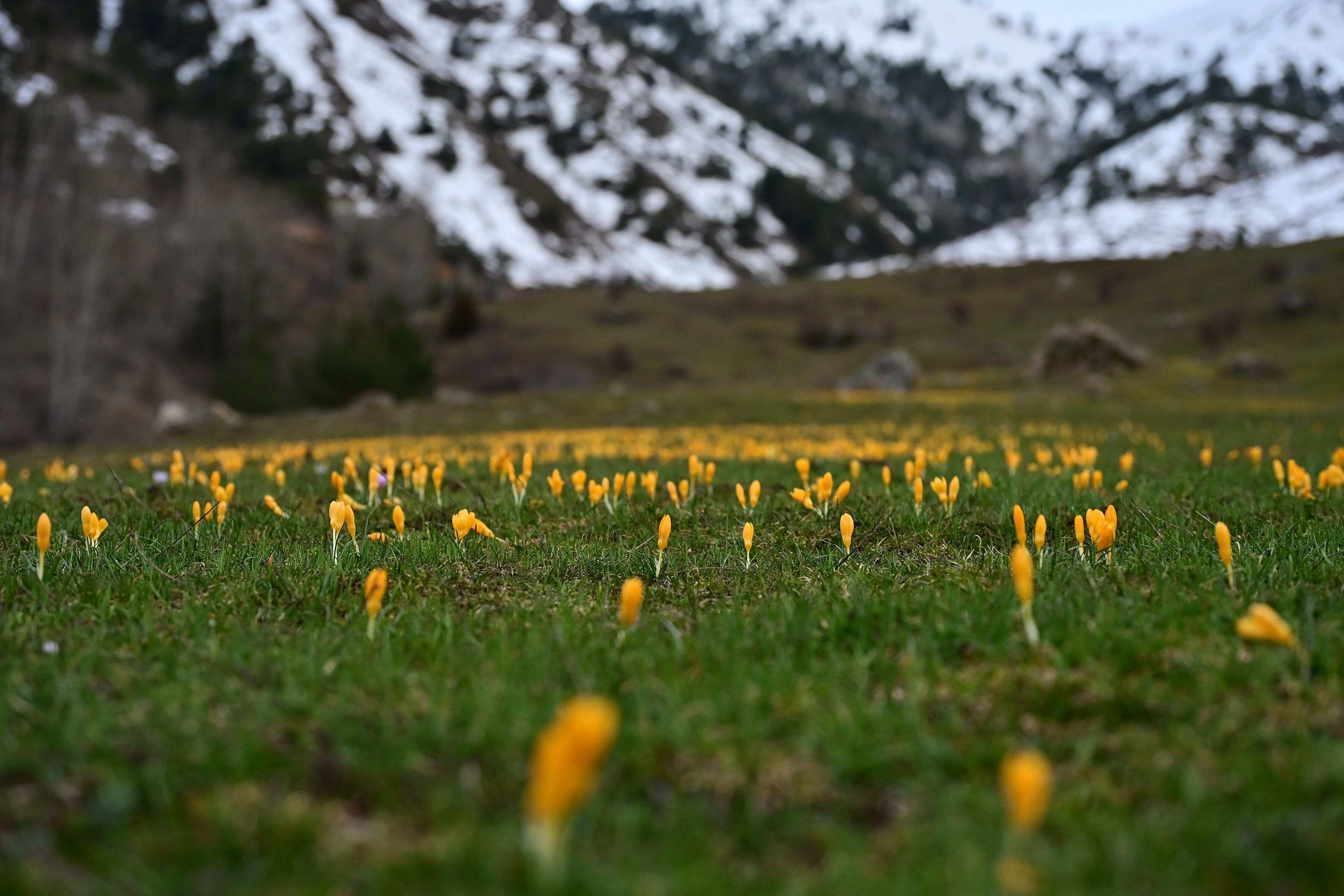 Bölgenin yüksek kesimlerinde kışın izleri olan kar kütleleri henüz tam olarak erimemişken, Musalla Vadisi boydan boya sarı ve mor renkli çiğdem çiçekleriyle kaplandı.