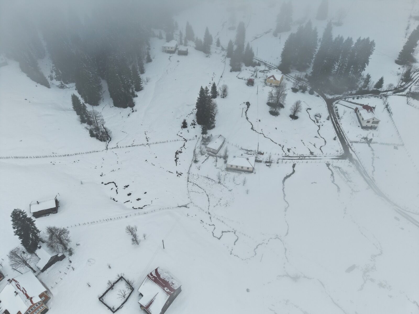 Bahar aylarında yeşil görüntüsüyle bilinen yayla, kısa sürede kış manzarasına büründü. Sabah saatlerinde bölgeye çıkan vatandaşlar, karşılaştıkları manzara karşısında şaşkınlık yaşadı. Özellikle fotoğraf tutkunları için eşsiz kareler sunan yayla, dronla da görüntülenerek görsel şölen ortaya koydu.