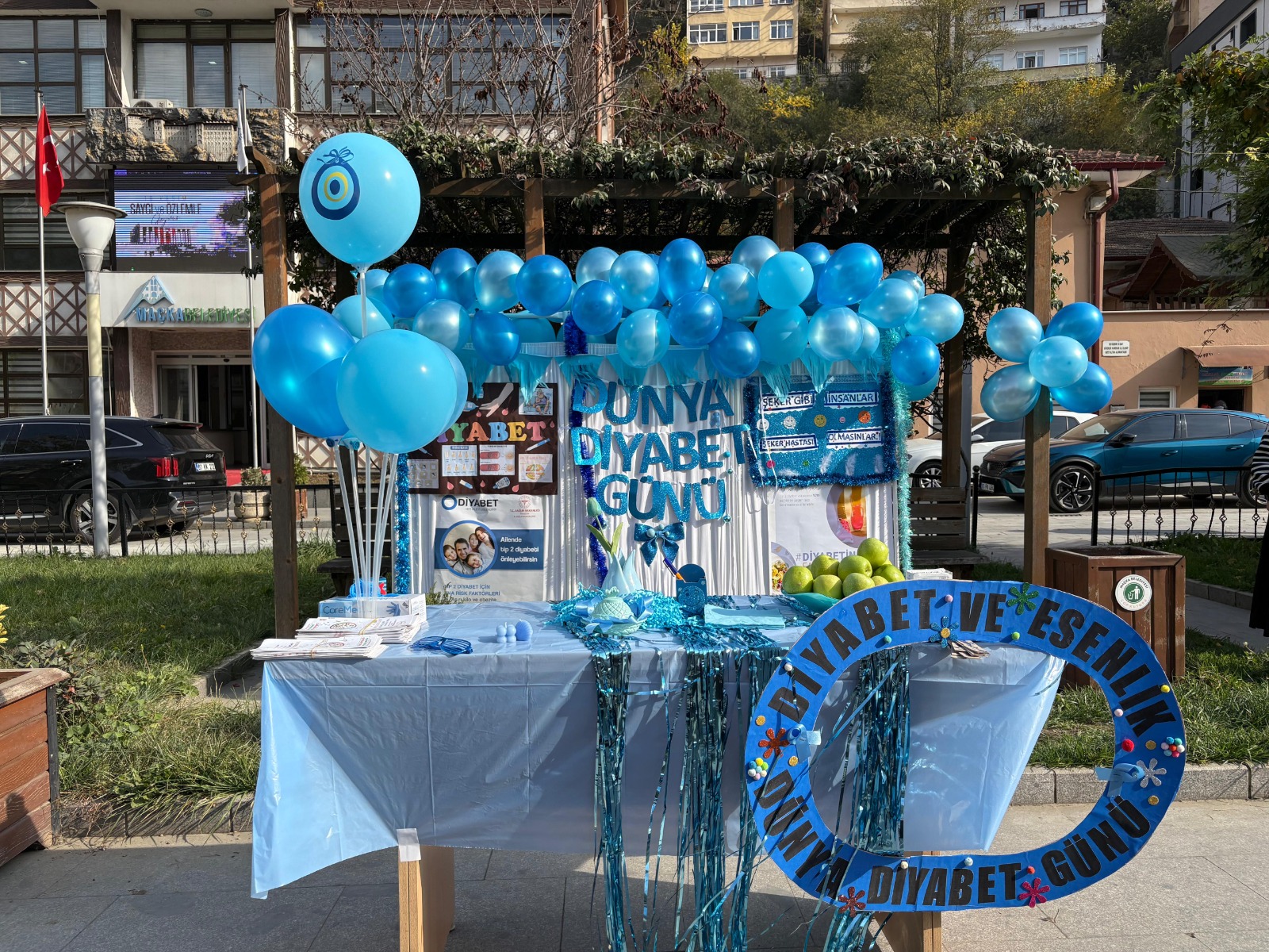 14 Kasım Dünya Diyabet Günü kapsamında Maçka Toplum Sağlığı Merkezi tarafından Turgut Özal Parkı’nda anlamlı bir farkındalık etkinliği gerçekleştirildi. Diyabetin önlenebilir ve yönetilebilir bir hastalık olduğunu vurgulamak amacıyla düzenlenen etkinlikte, vatandaşlara ücretsiz şeker ve tansiyon ölçümleri yapılırken, vücut kitle indeksi hesaplamaları ve sağlık danışmanlık hizmetleri de sunuldu. Mavi balonlarla süslenen alanda oluşan sıcak atmosfer, katılımcılara hem sağlık dolu bir gün yaşattı hem de bilinçli yaşamın önemini hatırlattı.