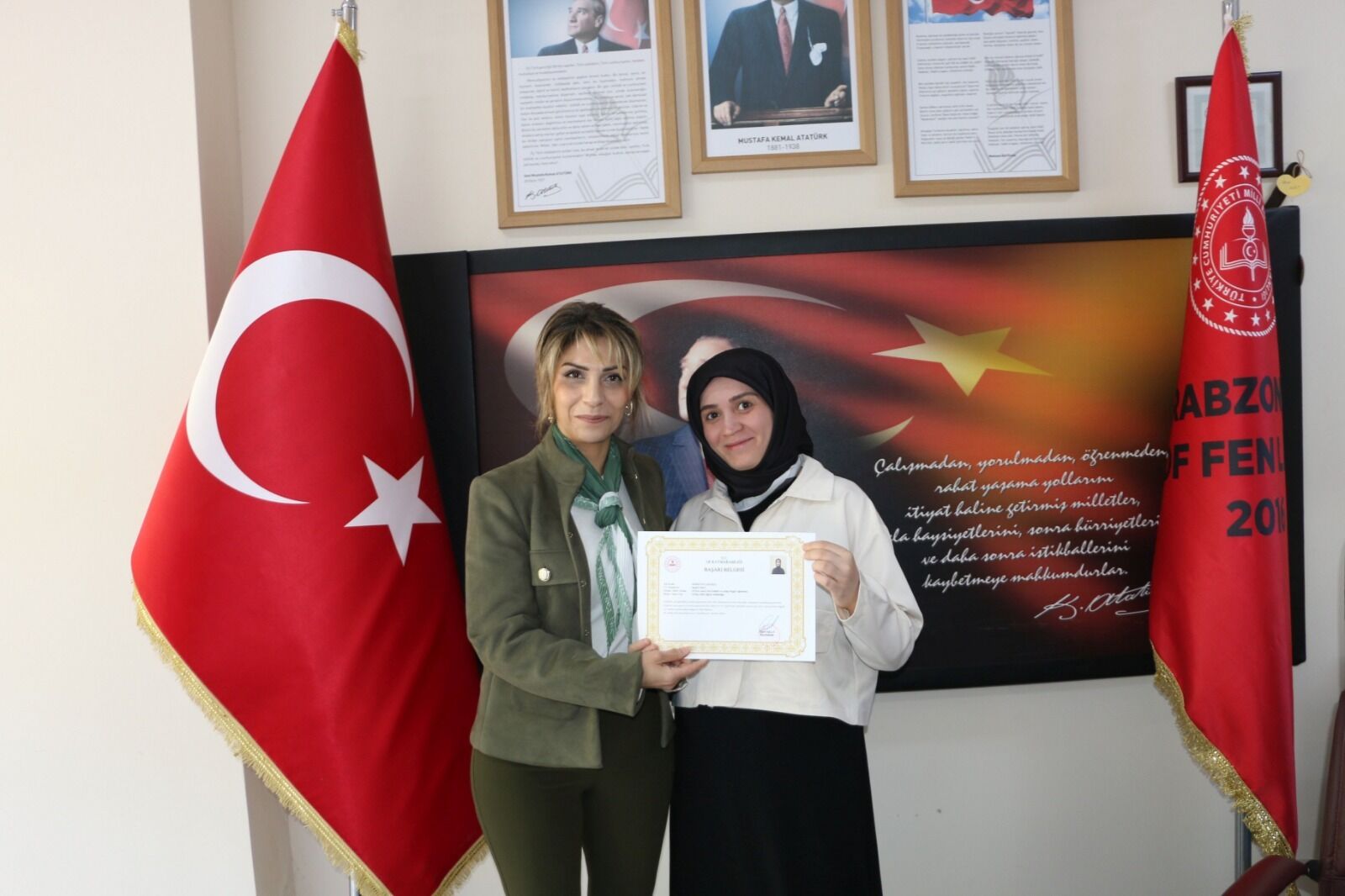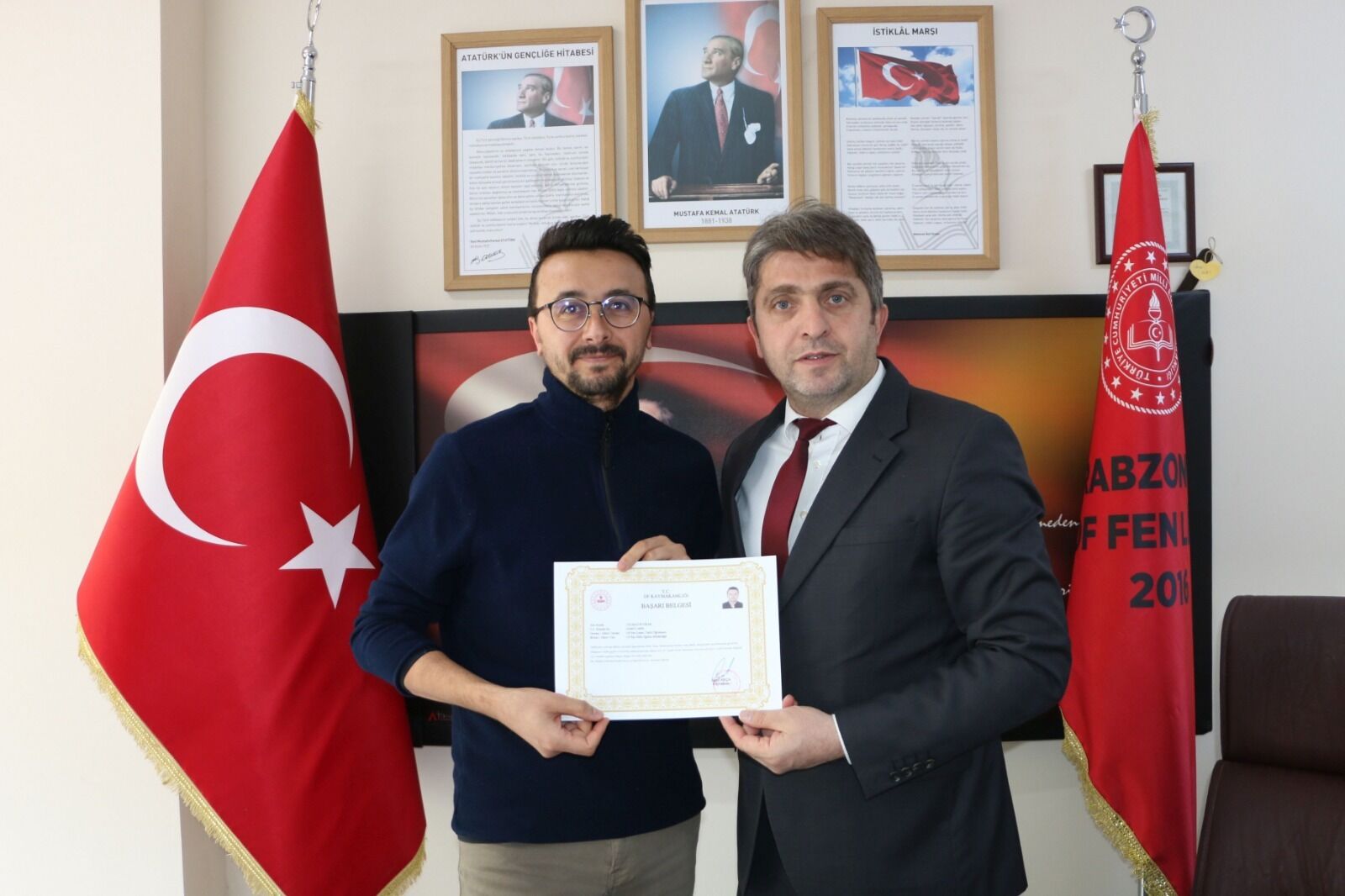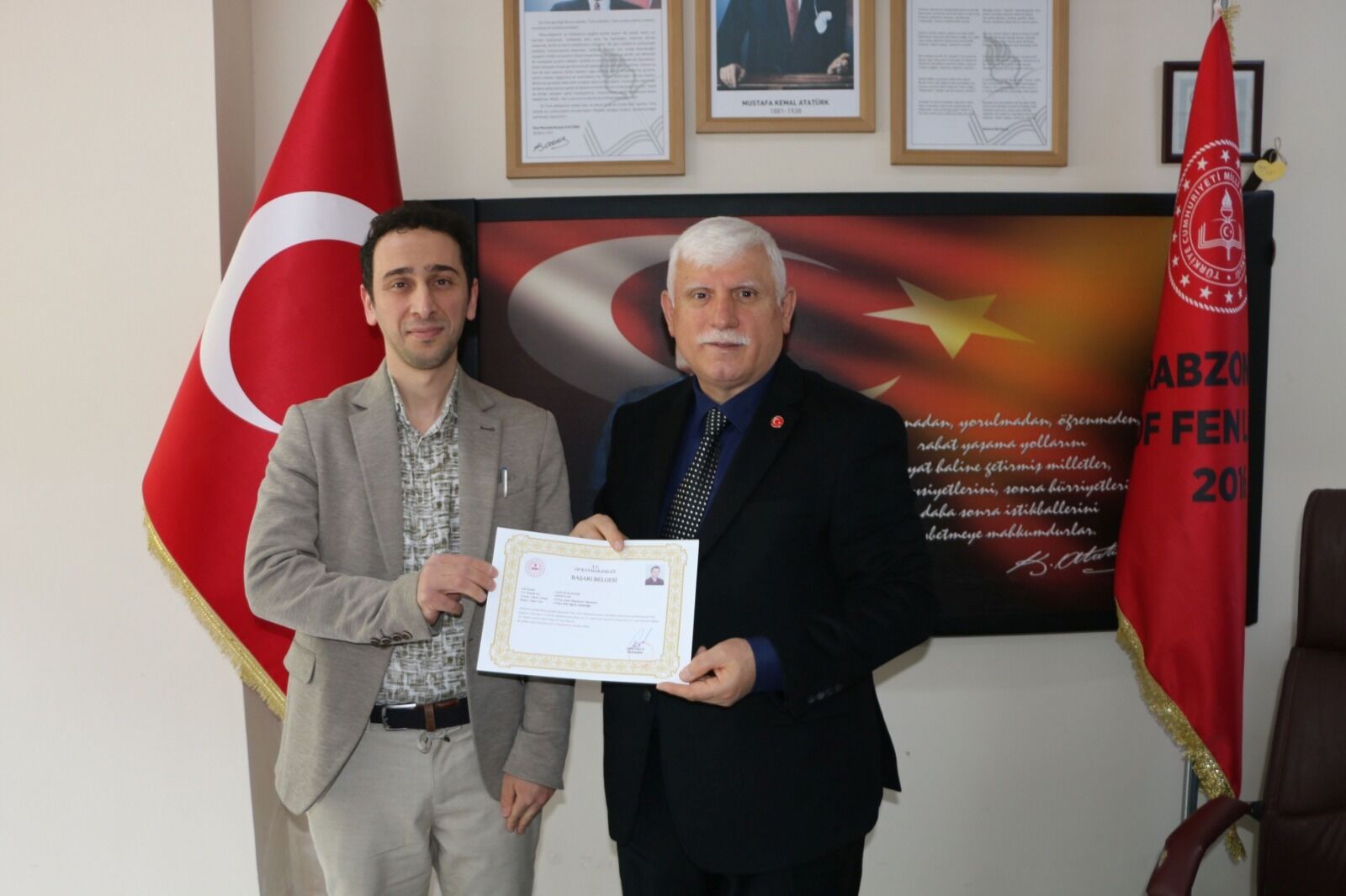 İlçe Milli Eğitim Müdürü İdris Kabahasanoğlu ikinci ziyareti Of Fen Lisesine yaptı. Burada Türkiye genelinde yapılan ortak sınavlara girilen derslikleri ziyaret ederek öğrencilere başarılar diledi. Okul Müdürü Vehap Kurt İlçe Milli Eğitim Müdürü Kabahasanoğlu’na okulun çalışmaları hakkında bilgi sundu. Of Kaymakamı Eşref Akça tarafından Of Fen Lisesinde yaptıkları projeyle başarılı çalışmalar ortaya koyan öğretmenlere verilen “Başarı Belgelerini “ İlçe Milli Eğitim Müdürü Kabahasanoğlu Şube Müdürü Canan Çolak Seymen tarafından öğretmenlere takdim ederek öğretmen ve idarecileri tebrik etti.