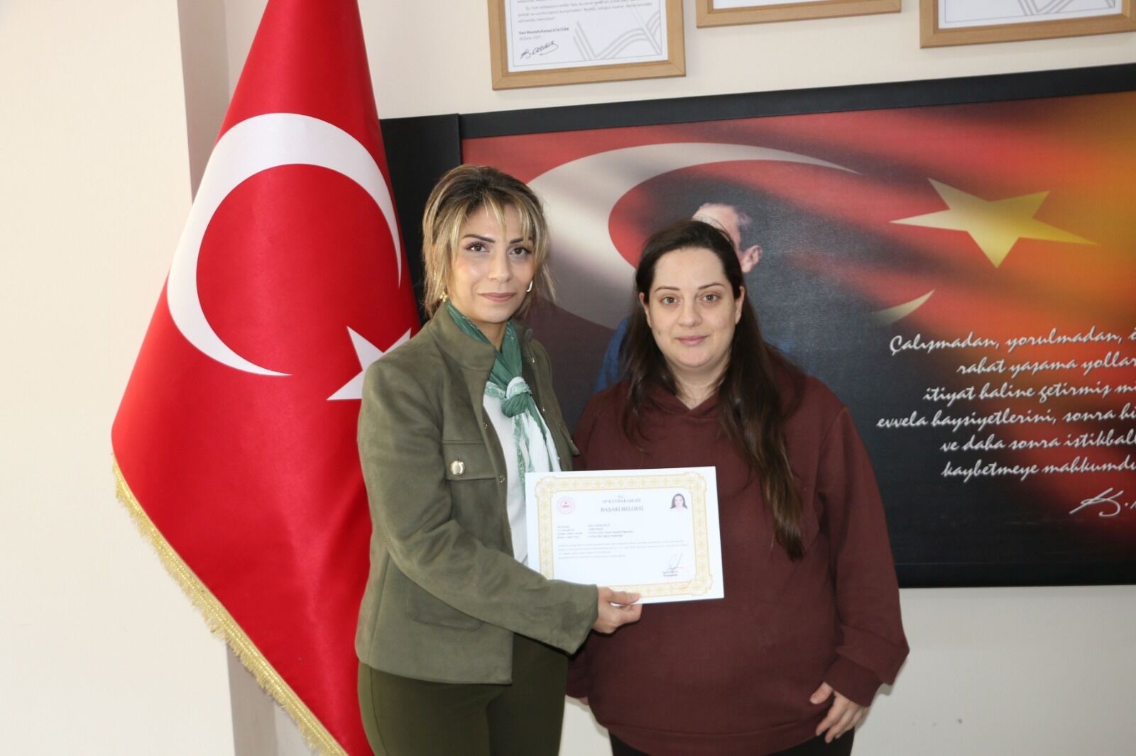 Okul Müdürü İsmail Kurt ziyaretleri ve destekleri nedeniyle İlçe Milli Eğitim Müdürü Kabahasanoğlu Şube Müdürü Canan Çolak Seymen’e teşekkür etti.