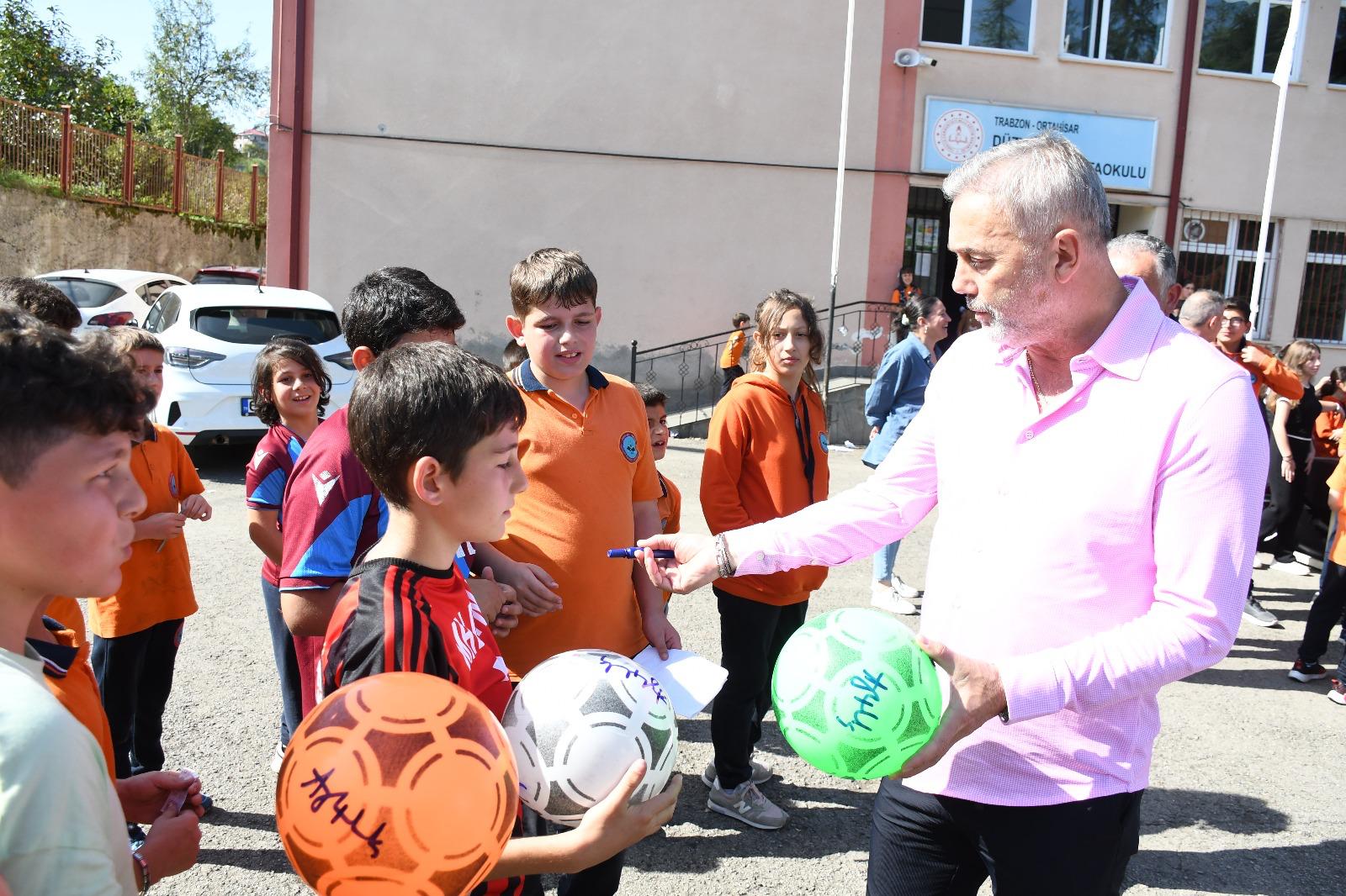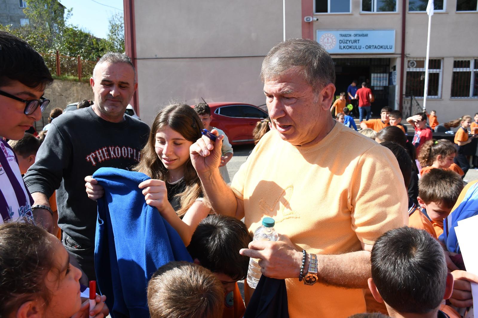 Trabzon’un sevilen iş insanlarından Necati Kazaz, anlamlı bir sosyal sorumluluk projesine daha imza attı. Kazaz Grup Yönetim Kurulu Başkanı ve eski hakem Necati Kazaz’ın önderliğinde, Trabzonspor’un efsane ismi Hami Mandıralı ve Türk futbolunun unutulmaz golcüsü Tanju Çolak, Düzyurt İlköğretim Okulu’nu ziyaret etti. Öğrencilerle bir araya gelen efsane isimler, forma hediye ederek bol bol imza dağıttı, hatıra fotoğrafları çektirdi. Okul Müdürü Mehmet Kara ve Düzyurt Muhtarı Lokman Mengüç’ün de yer aldığı ziyarette, hem duygusal hem neşeli anlar yaşandı.