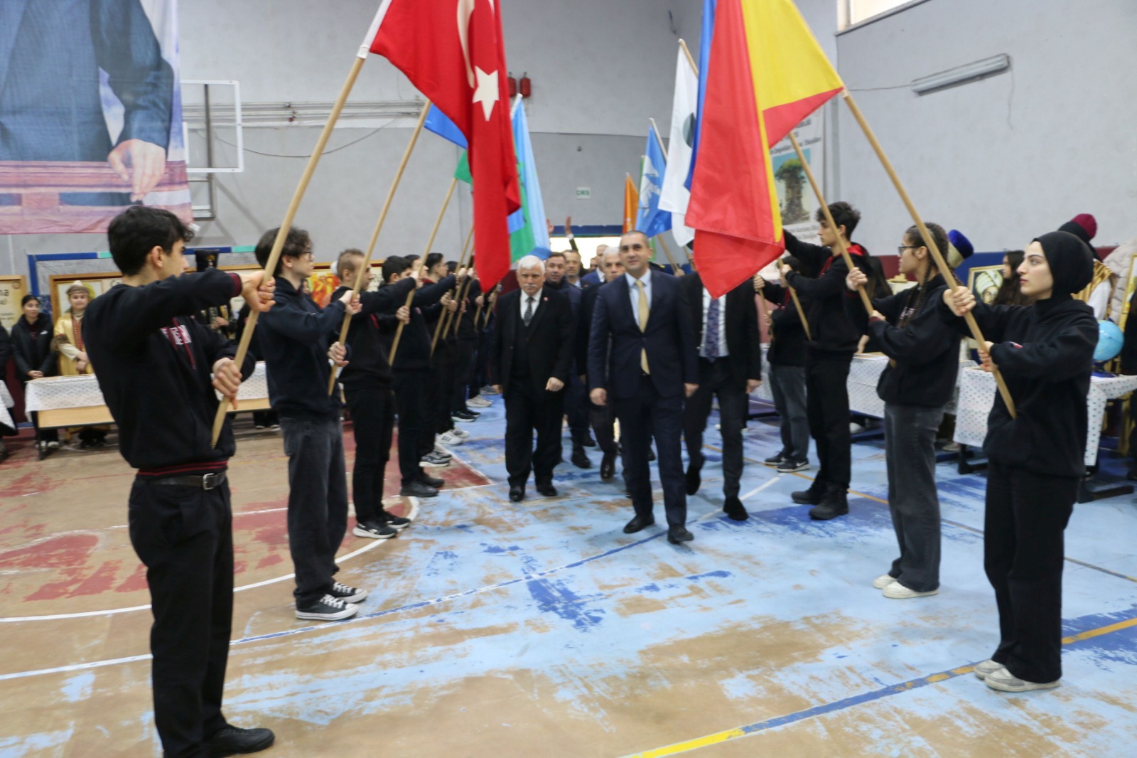 Okulun spor salonunda yapılan etkinlik saygı duruşu ve İstiklal Marşı’nın okunması ile başladı. Trabzon Büyükşehir Belediyesi Mehteran Takının gösterisinin ardından Okul Müdürü Vehap Kurt selamlama konuşması yaptı.