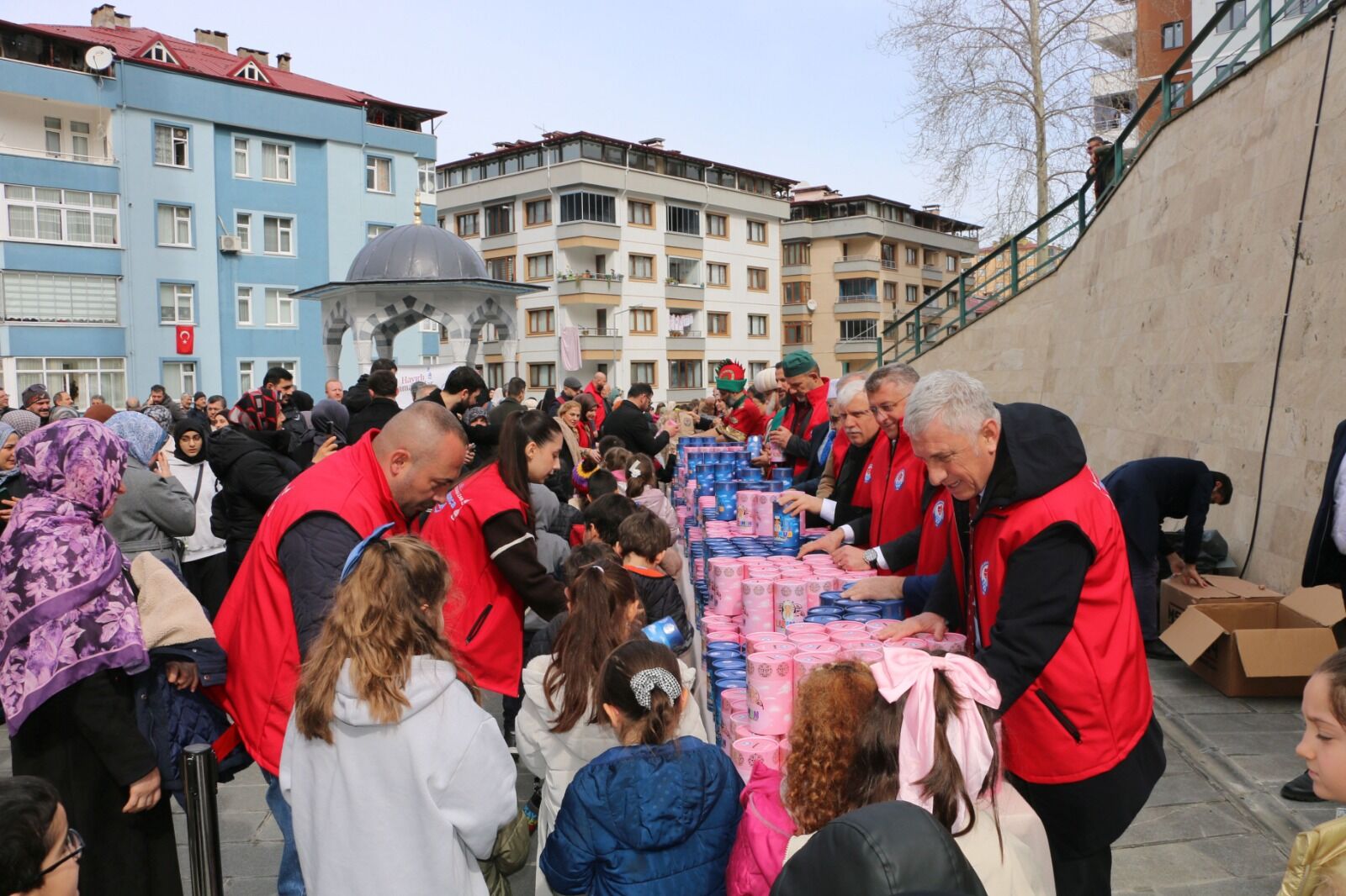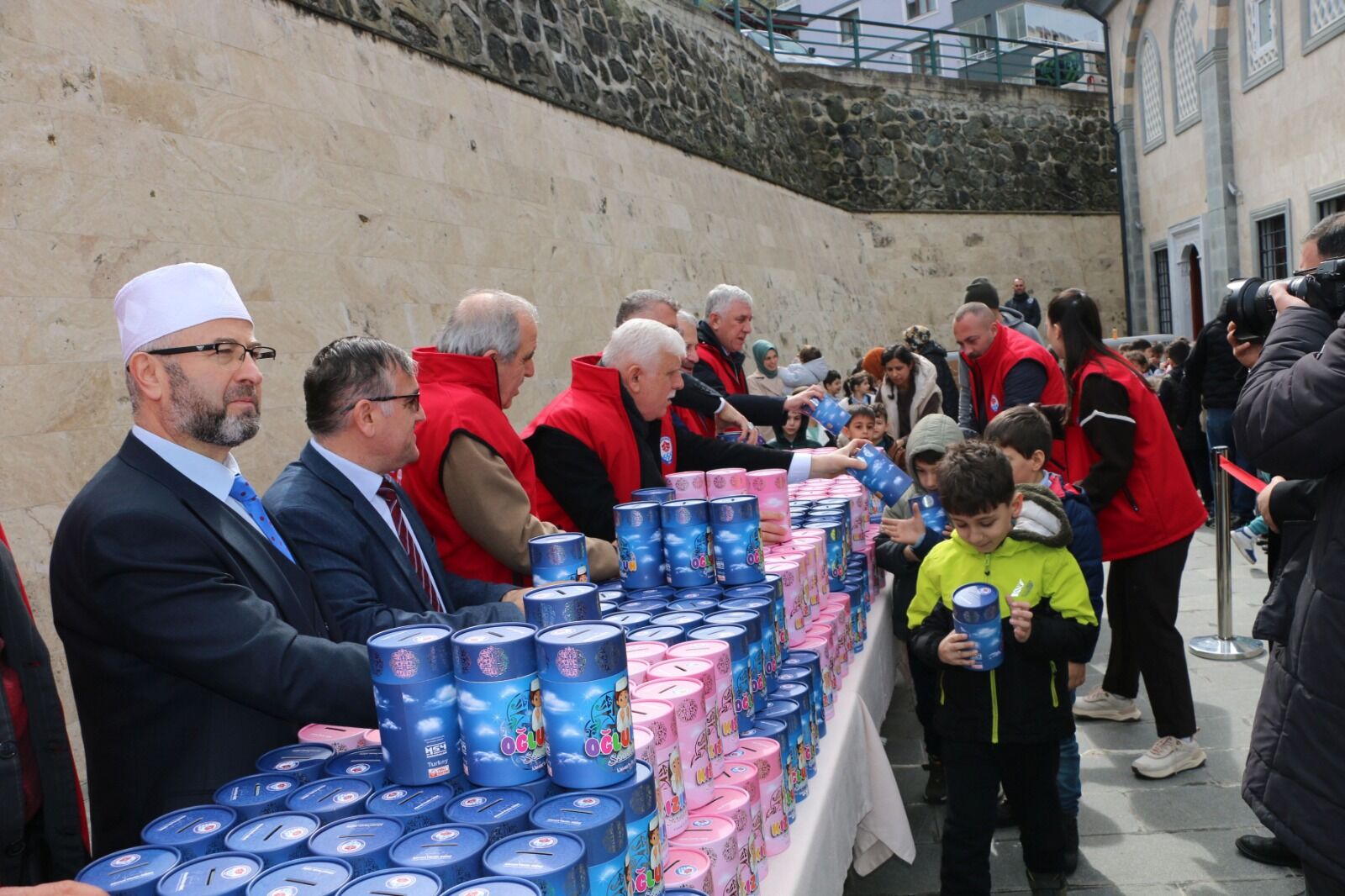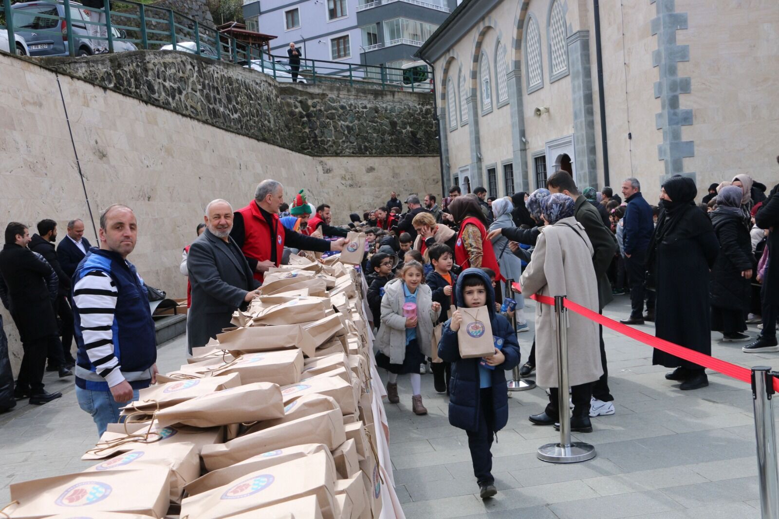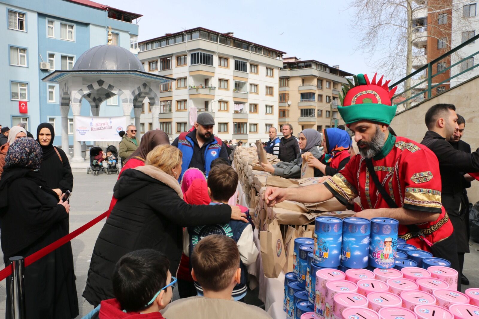 Of’ta düzenlenen Tekne Orucu etkinliği sonunda çocuklara iftarlık ikramların yanında, günün anısına seccade, tespih ve kumbara hediye edildi.