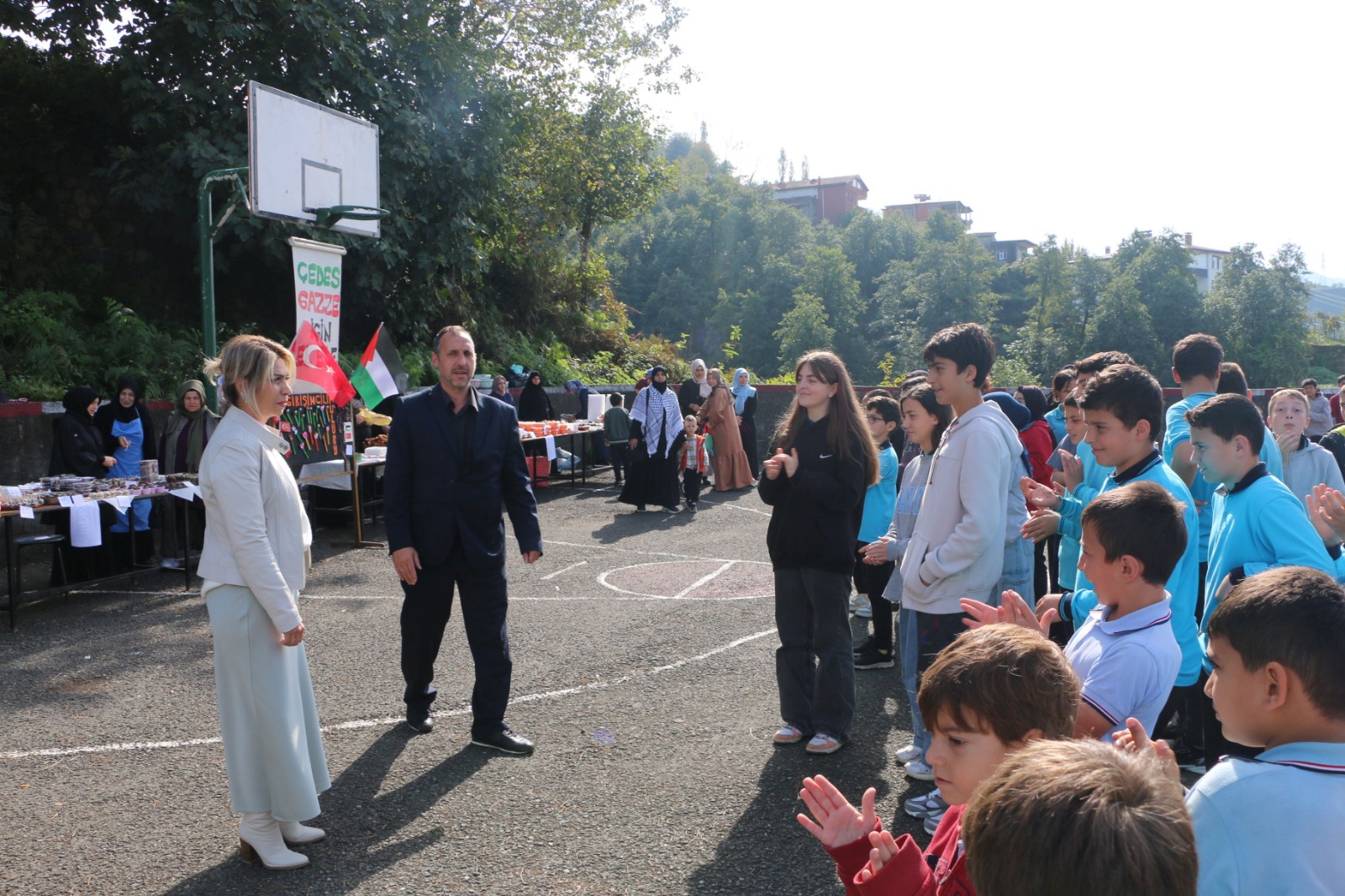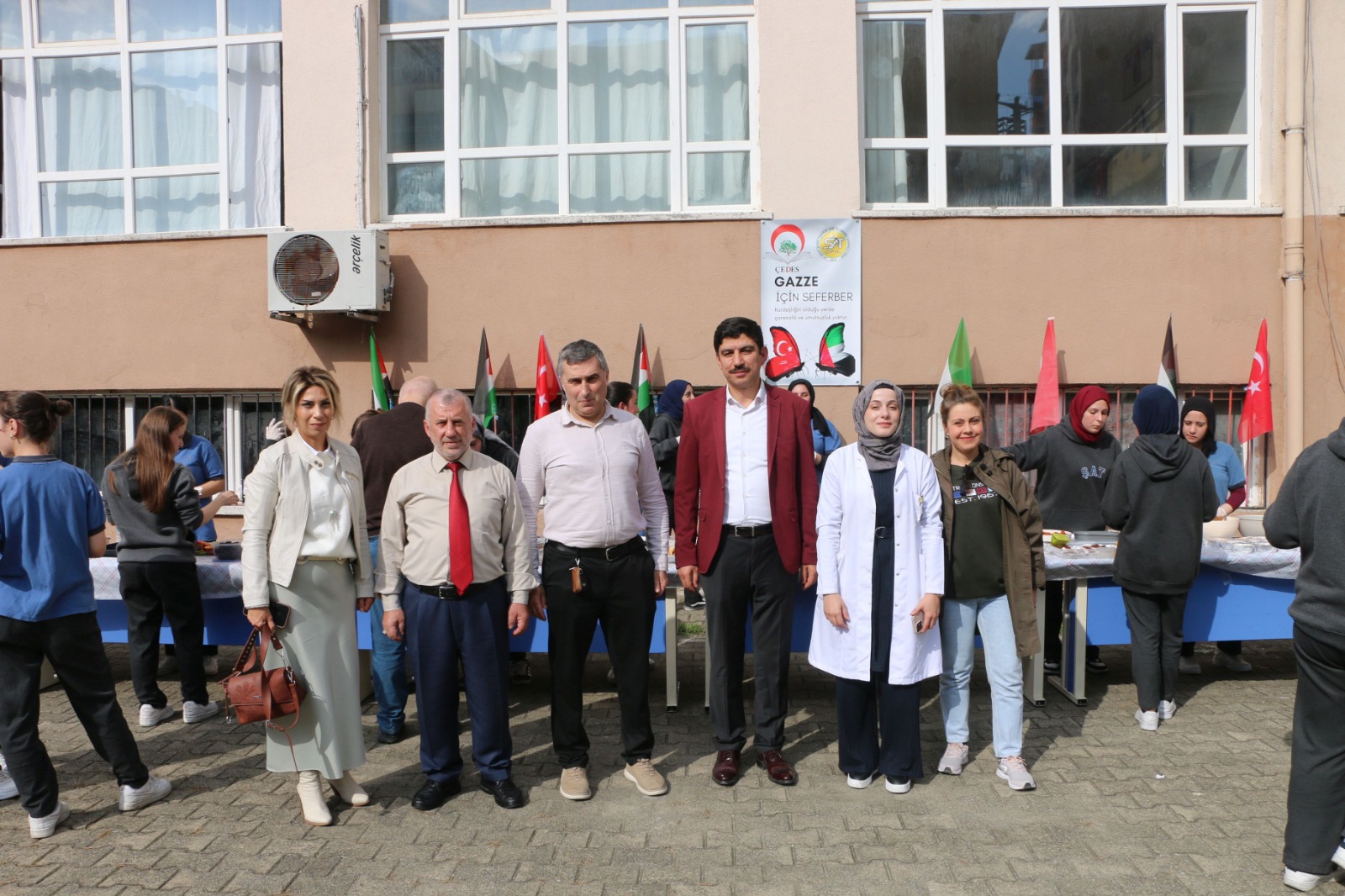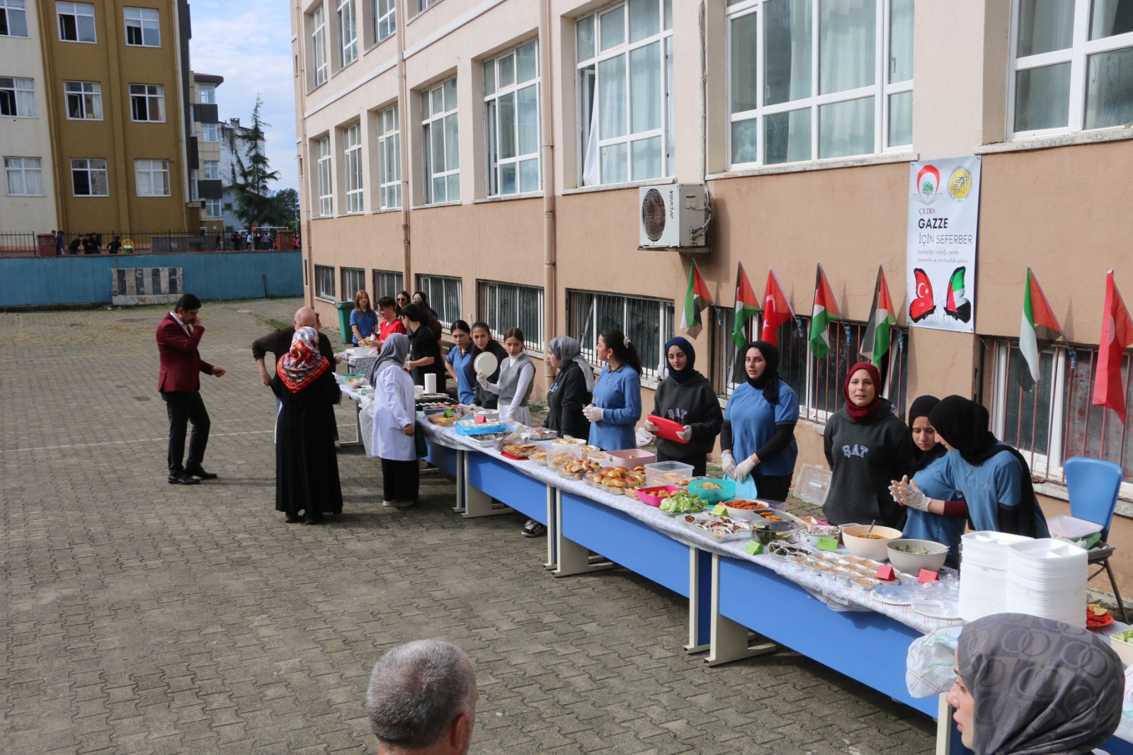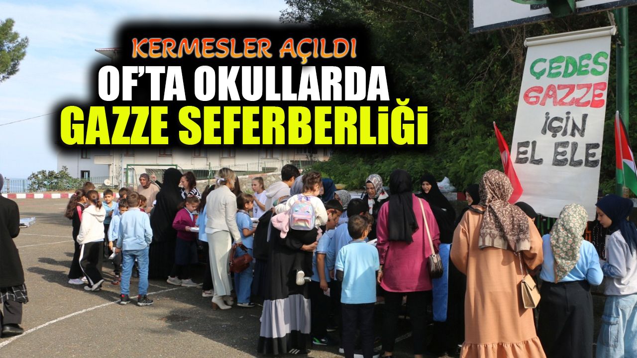 Bugün Of’ta Ali Yeşilyurt İmam Hatip Ortaokulu, Eskipazar Ortaokulu, Mikdat Sarıalioğlu Ortaokulu, Serince Şehit Fahrettin Yavuz İmam Hatip Ortaokulu, Bölümlü Şehit İhsan Yıldız Ortaokulu, İsmail Yıldırım İlkokulu, Şehit Öğretmen Ali Bulut İlkokulu, Şehit Ahmet Türkkan ÇPA Lisesi, Of Anadolu İmam Hatip Lisesi okullarında öğrenci ve veliler tarafından yapılan yiyecek ve içeceklerden oluşan kermeslerden elde edilecek gelir Gazze’ye gönderilecek.