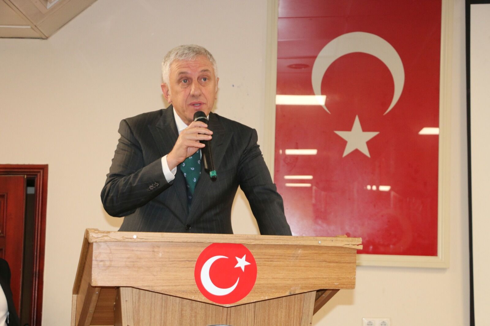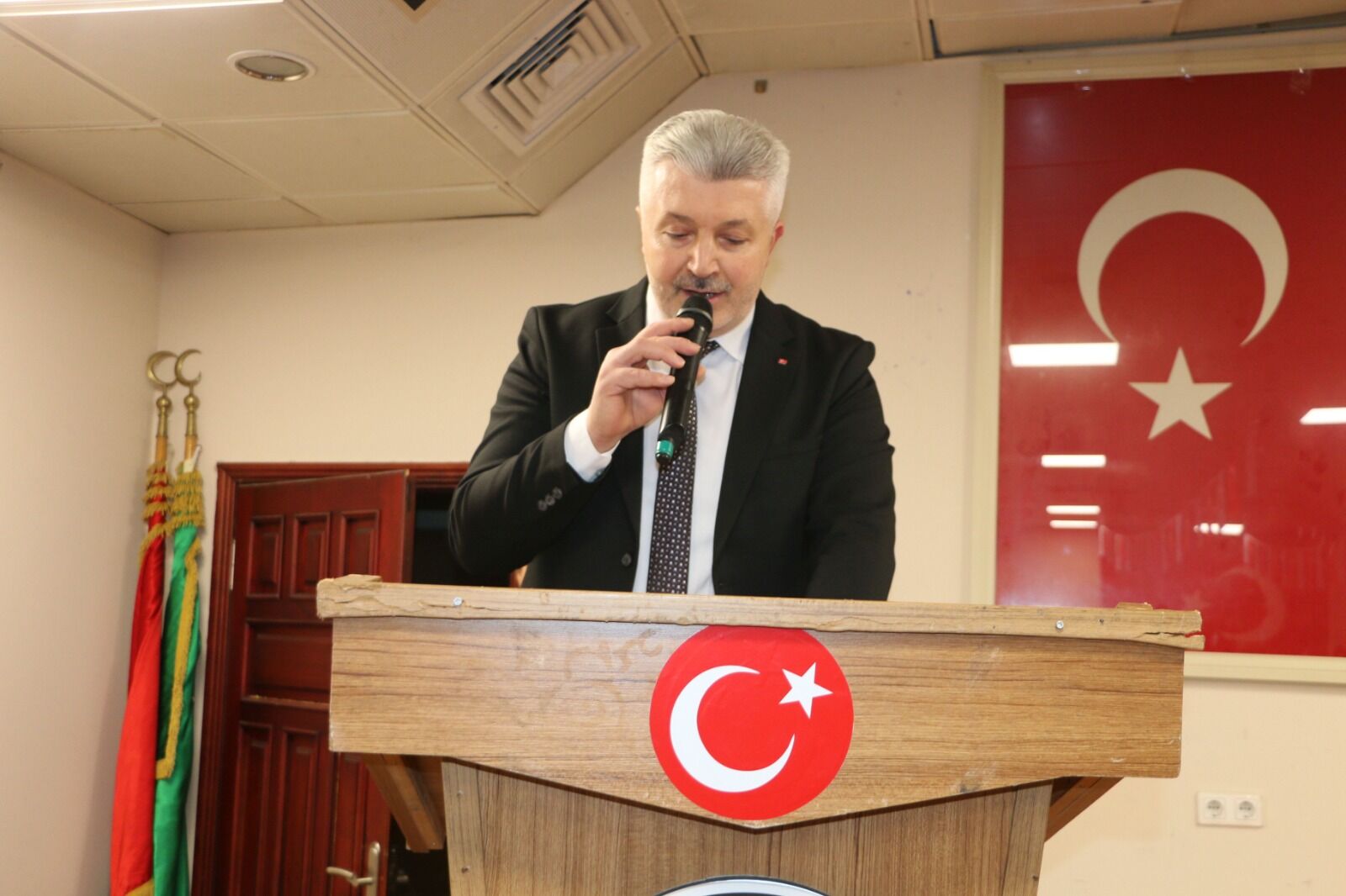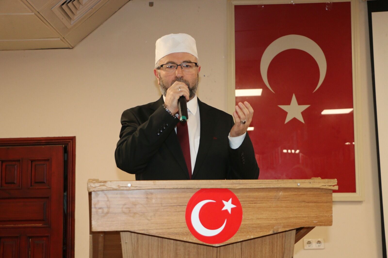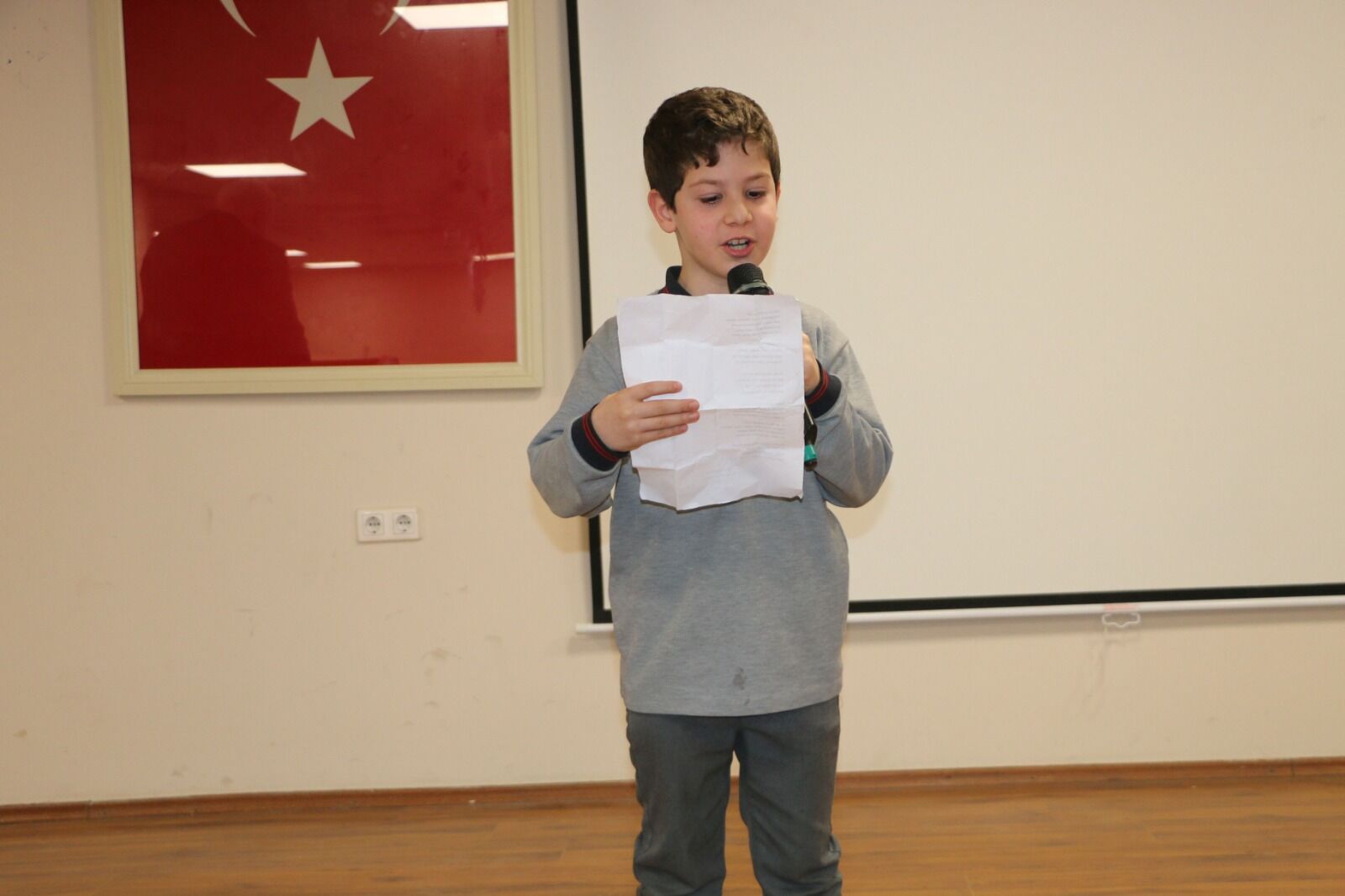 Anıt önündeki törenin ardından resmi kutlama programı Of Belediyesi Konferans Salonu’nda devam etti. Buradaki program da saygı duruşu ve İstiklal Marşı ile başladı.