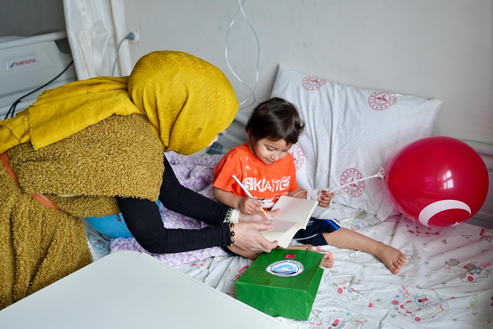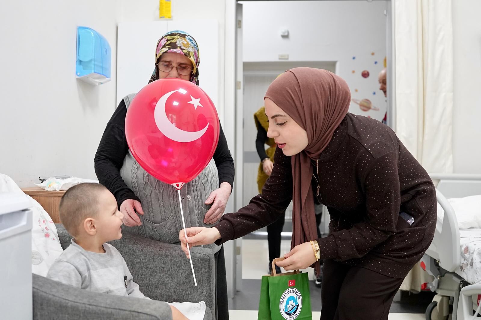 Hastane ortamında bayram geçirmek zorunda kalan çocukların yüzlerinde oluşan tebessüm, ziyaretlerin en anlamlı sonucu oldu.