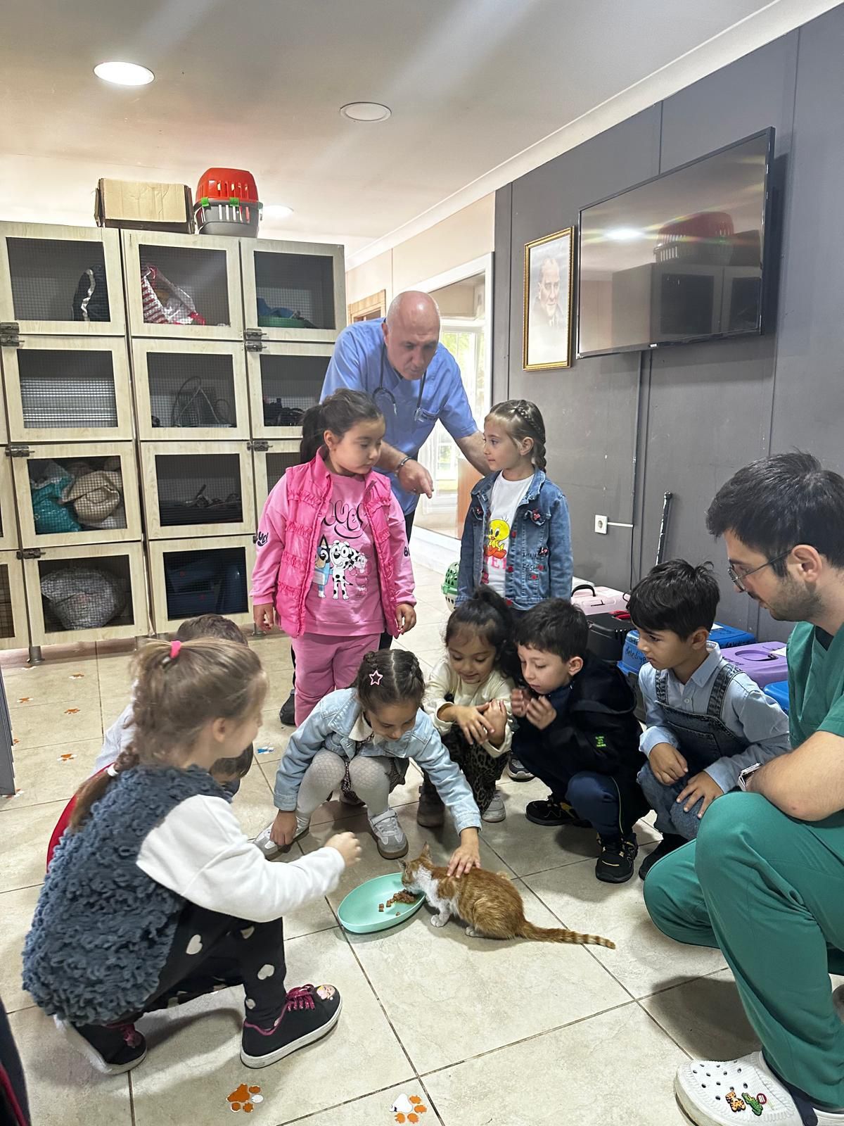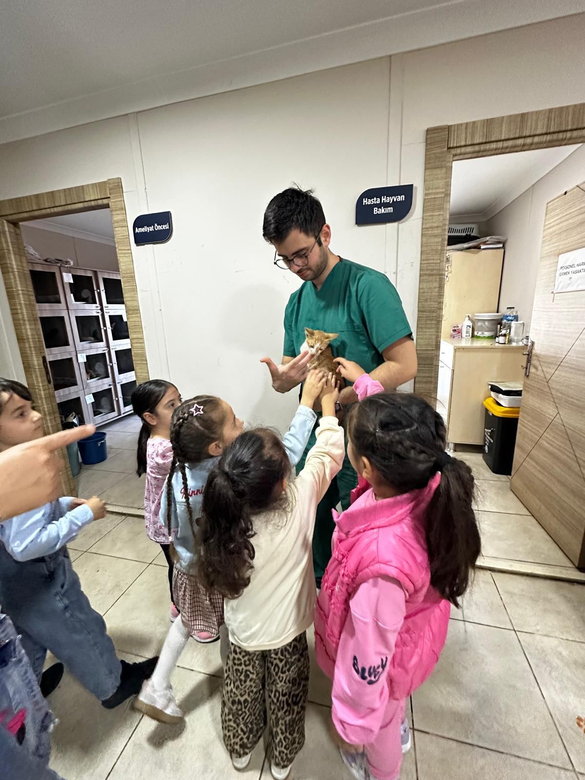 Klinikte sokak hayvanları için yapılan çalışmaları gözlemleyen ve bilgi alan öğrenciler, keyifli anlar yaşadılar.