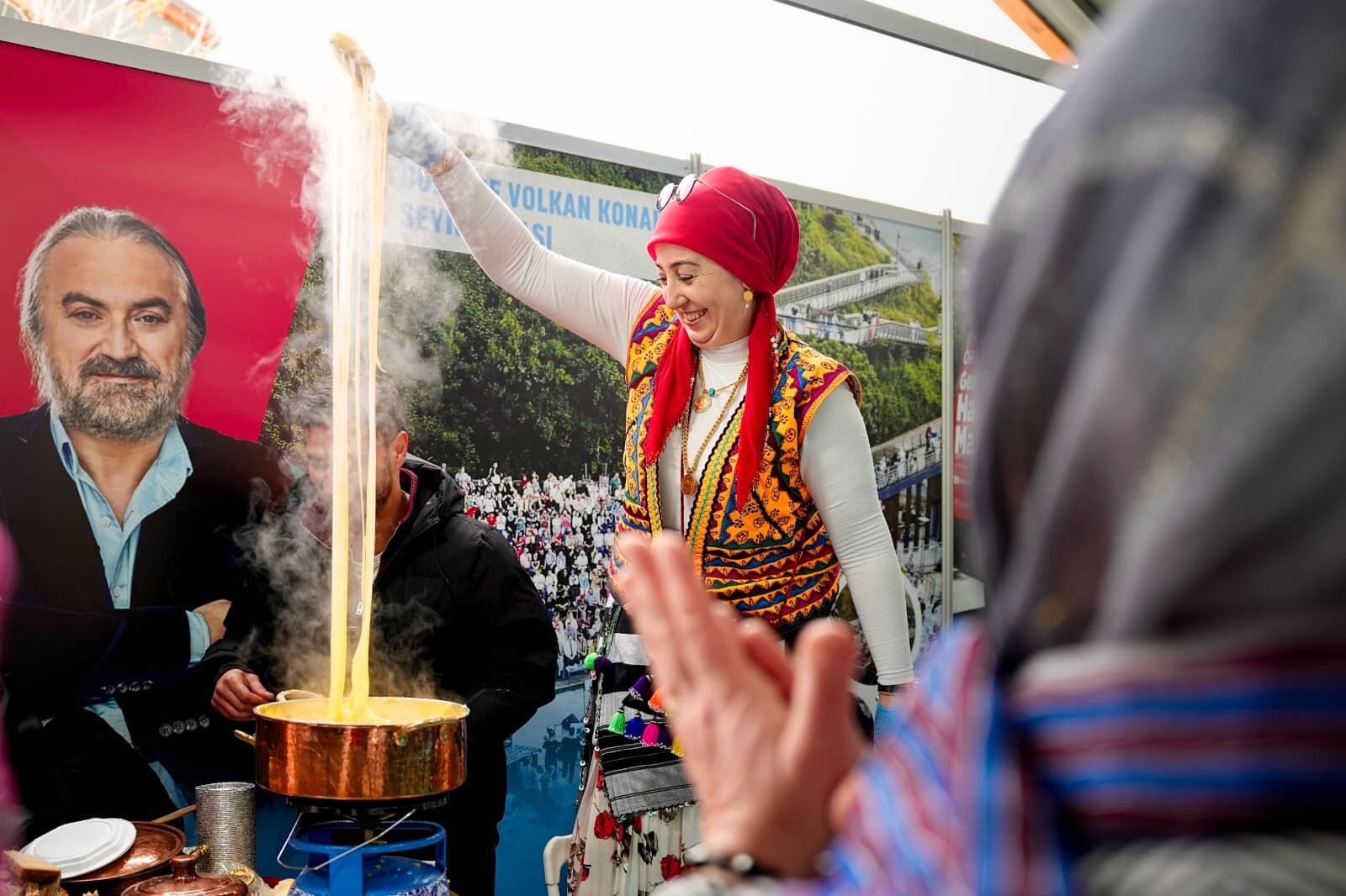 Standın en dikkat çeken bölümlerinden biri ise yöresel lezzetlerin tanıtıldığı alan oldu. Ziyaretçilere Ortahisar fındığı ve çayı hakkında bilgiler verilirken, belediyenin markası olan Zuluf Çikolata ürünleri de tanıtıldı. Özellikle Karadeniz mutfağının vazgeçilmez tatlarından kuymak, ziyaretçilere ikram edilerek büyük ilgi gördü.