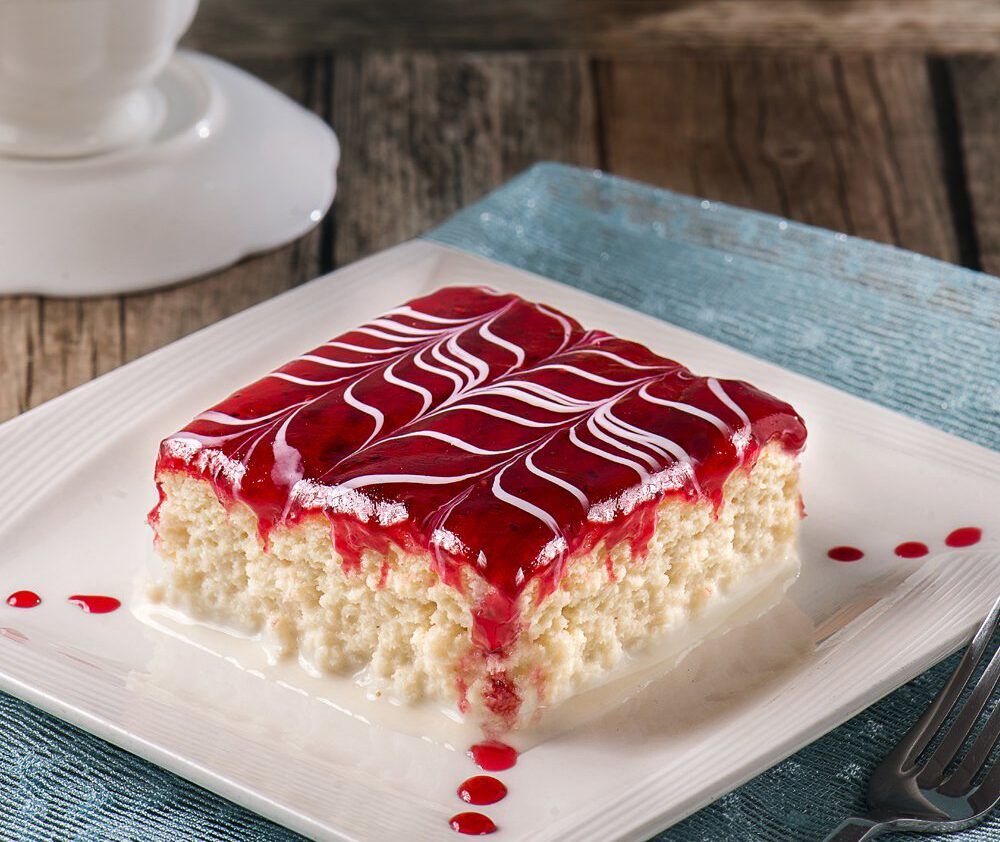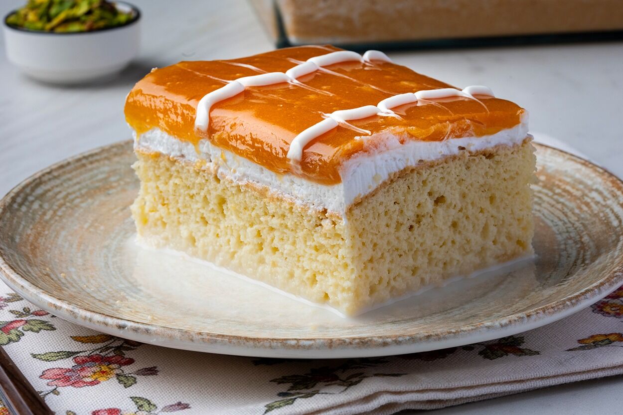 Fırından çıkan keki 5 dakika kadar dinlendirin. Sonra sütlü şerbeti kekin her yerine eşit şekilde dökün. Kekin şerbeti çekmesi için tamamen soğumaya bırakın.