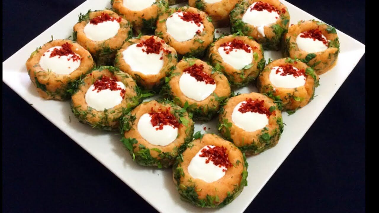 Elinizi hafif ıslatıp patates harcından küçük parçalar alın. Yuvarlayarak top şekli verin. Servis tabağına dizin.