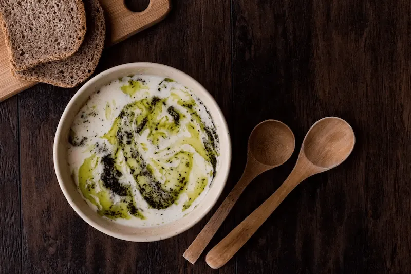 Çorbanın terbiyesi için ayrı bir karıştırma kabına yoğurdu, yumurta sarısını, limon suyunu ve unu alın. Tüm malzemeyi topak kalmayacak şekilde güzelce çırpın. Kıvam pürüzsüz olmalı.