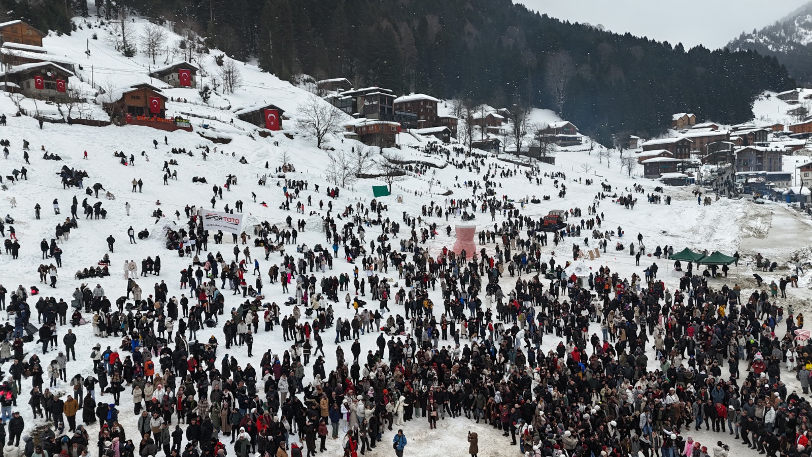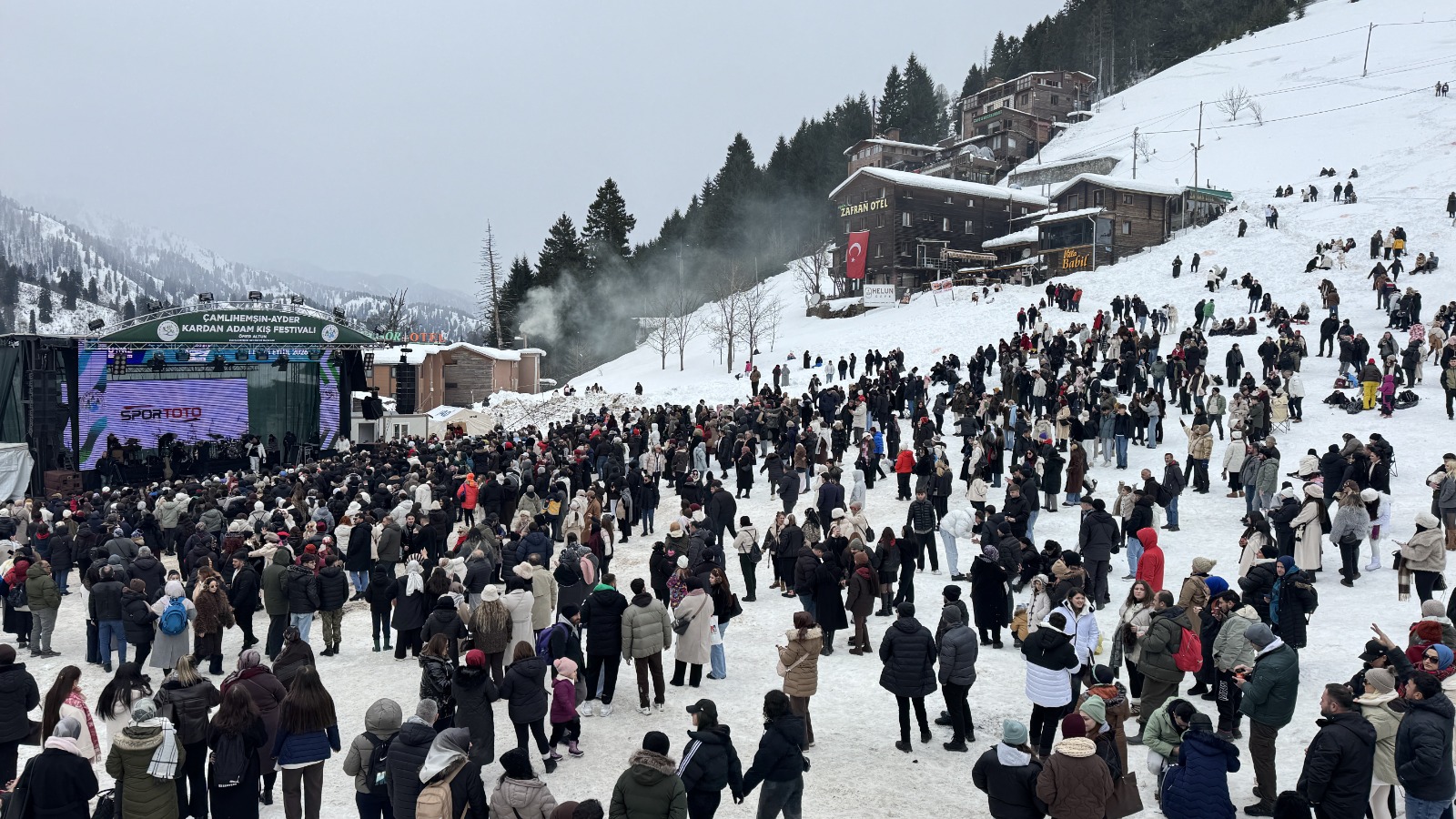 Rize’nin Çamlıhemşin ilçesindeki Ayder Yaylası bu yıl 18’inci kez "Kardan Adam Kış Festivali"ne ev sahipliği yapıyor. Çamlıhemşin Kaymakamlığı ve Belediye Başkanlığı’nın organizasyonuyla başlayan festival, bölgenin doğal güzelliklerini kış eğlenceleriyle bir araya getiriyor. Karla kaplı doğada kardan adam yarışmaları, geleneksel horonlar ve yöresel sanatçılarla unutulmaz anlar yaşanıyor. Etkinliğe katılanlar, kar üstünde çocuklar gibi eğlenirken, festivalin simgesi haline gelen dev kardan çay bardağı bu yıl en çok ilgi çeken figür oldu.