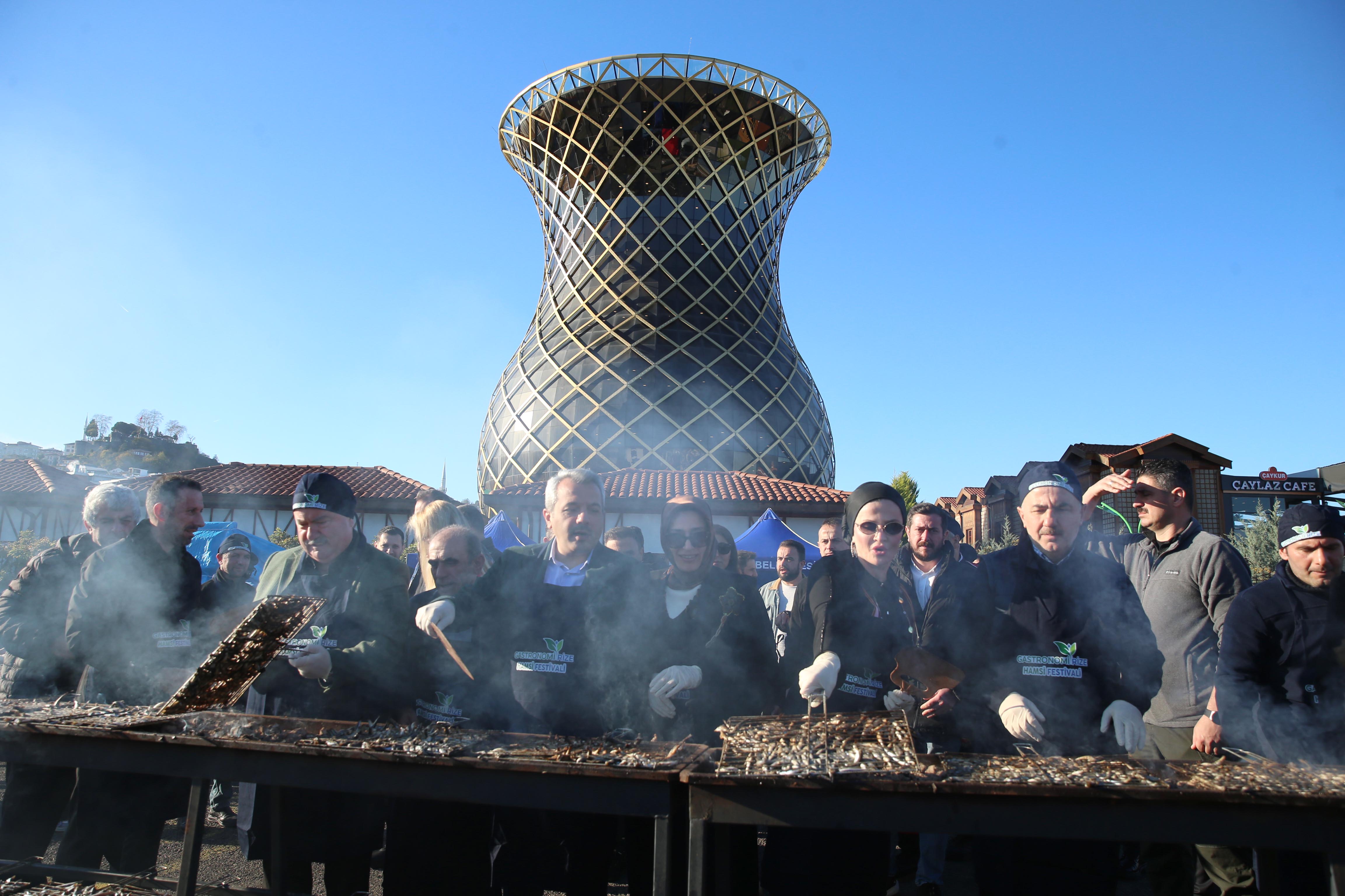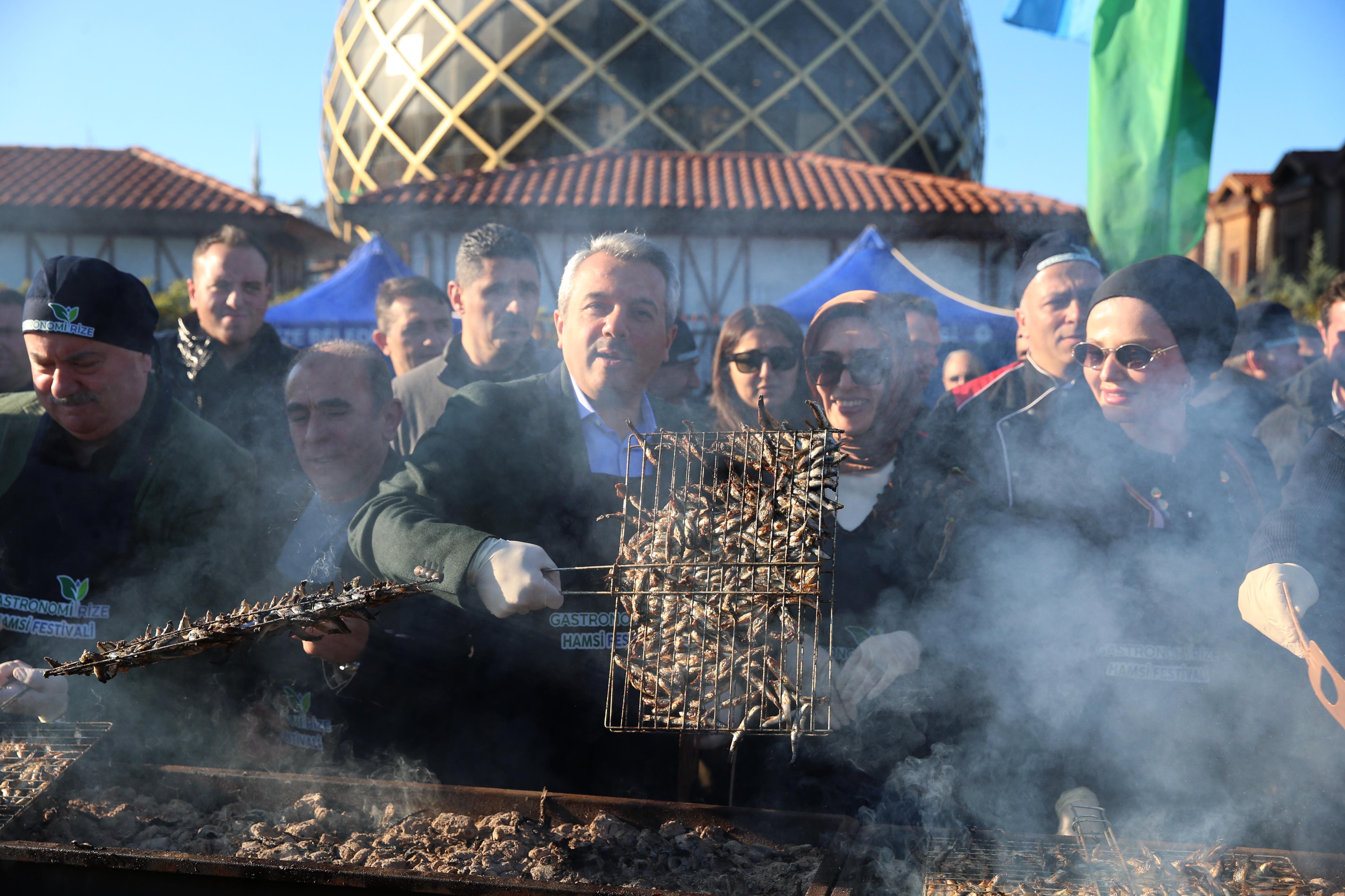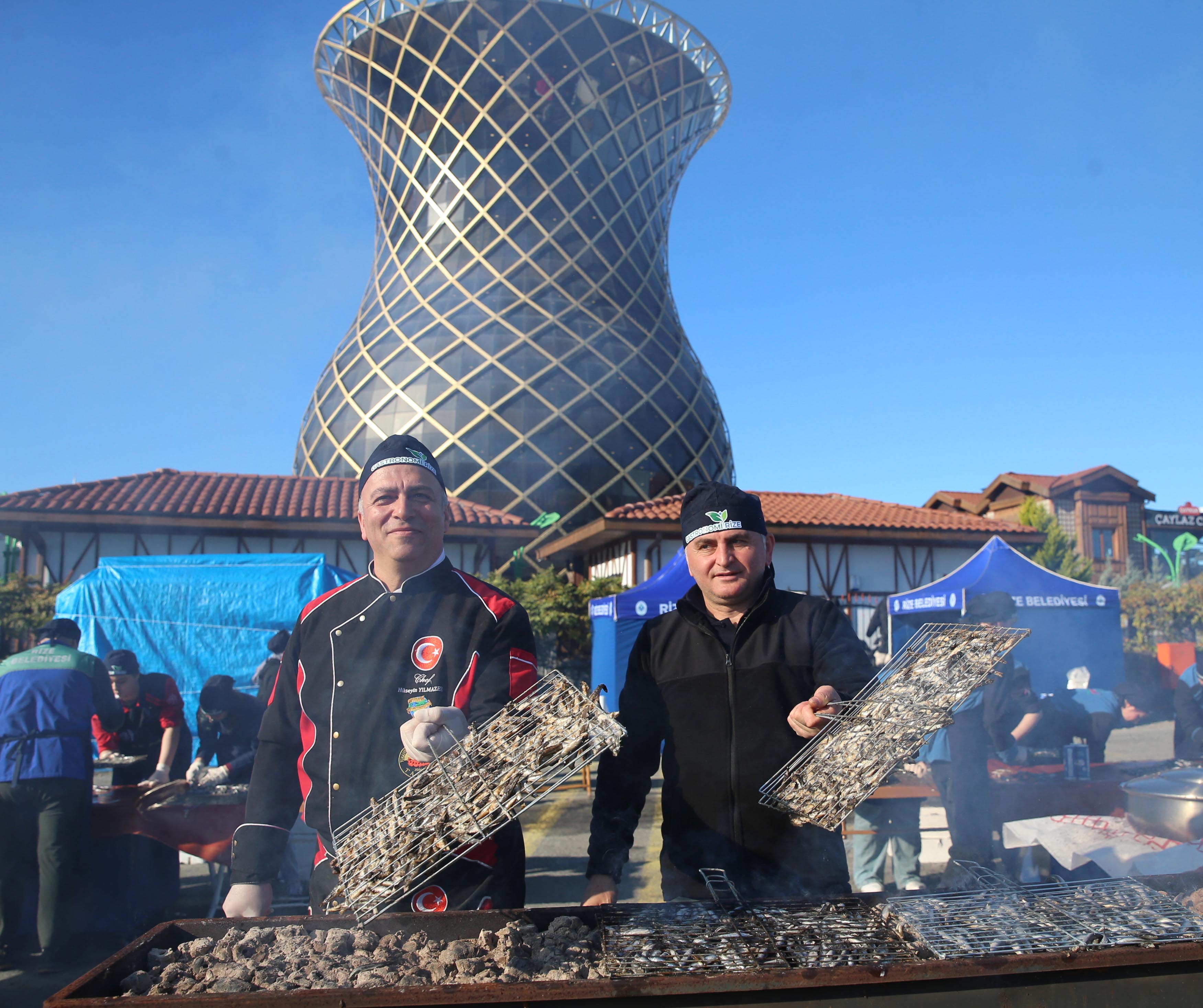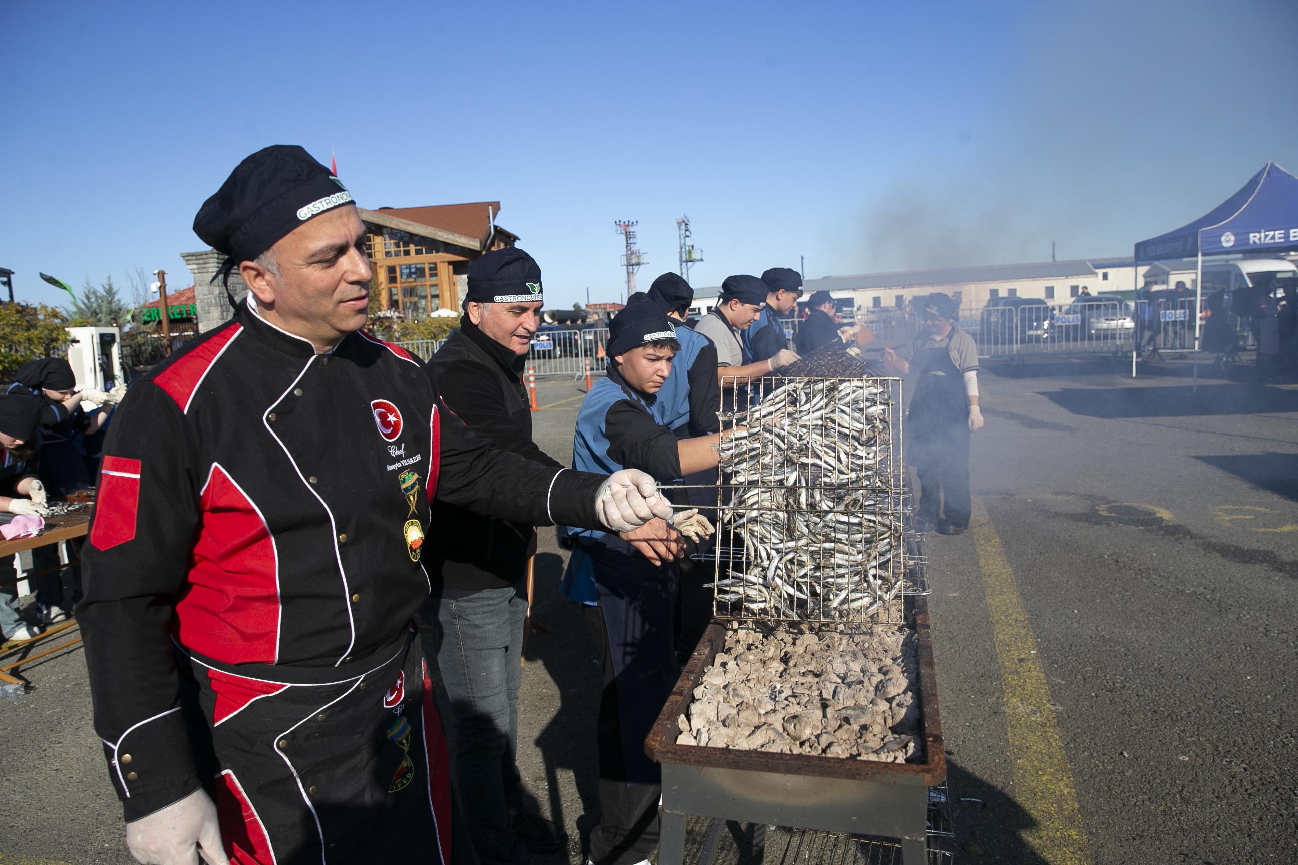 Rize Belediyesi tarafından sahil dolgu alanında organize edilen “8. Hamsi Festivali”, güneşli havayla birlikte renkli görüntülere sahne oldu. Festivale katılan binlerce kişi, çay çöpünden üretilen kömürle pişirilen 2 ton hamsiyi tatma fırsatı buldu. Belediye Başkanı Rahmi Metin, festivale gösterilen ilgiden memnun olduklarını belirterek, “Her yıl vatandaşımızla bu şöleni buluşturuyoruz. Hamsi bizim simgemizdir, kültürümüzdür,” dedi.