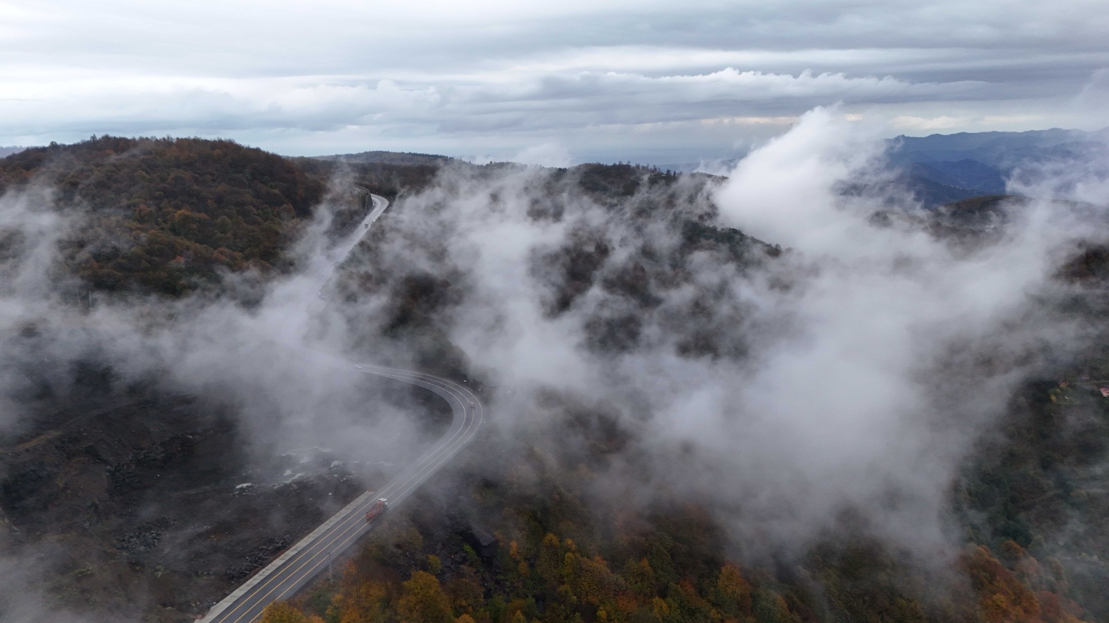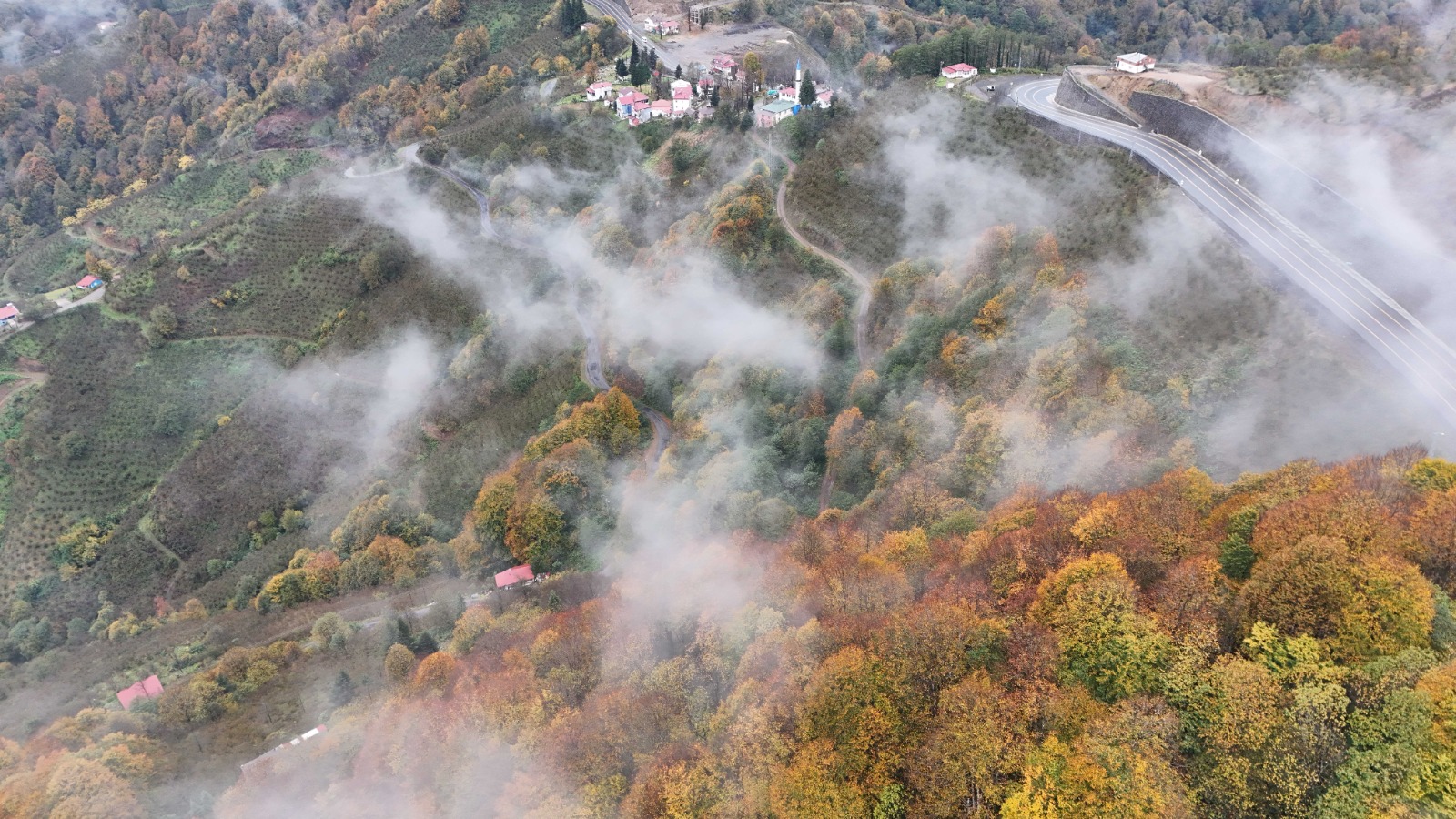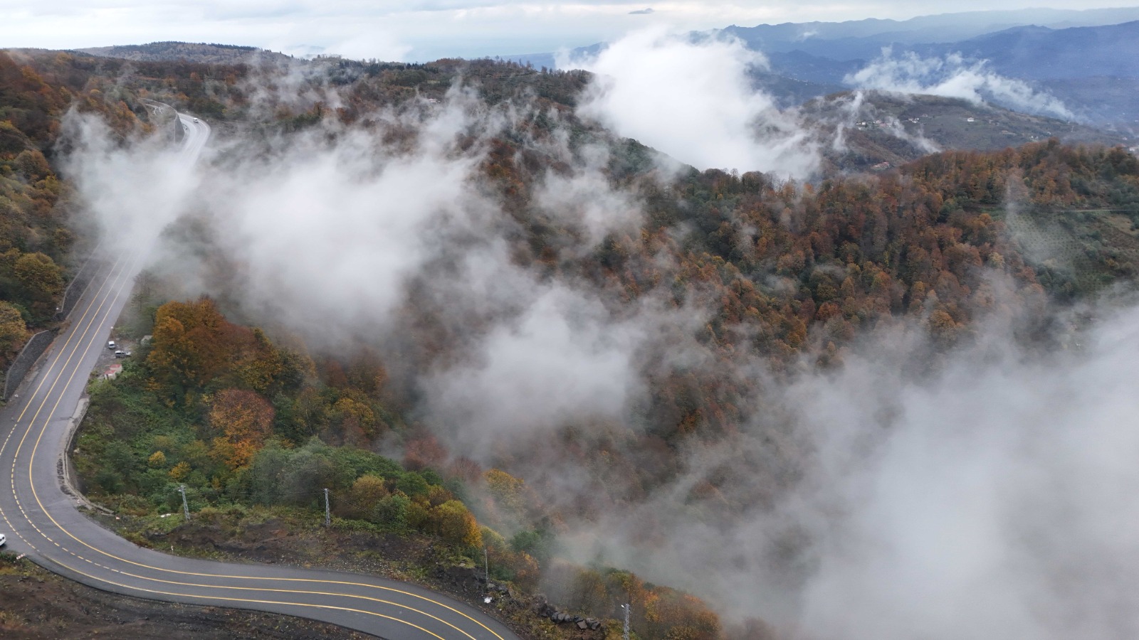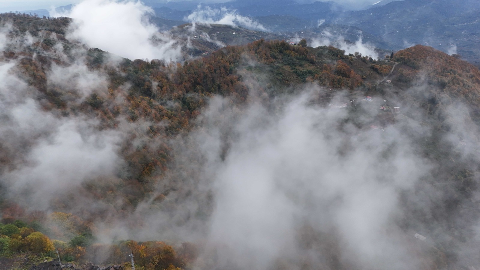 Ordu'nun yüksek kesimlerinde etkili olan sis, sonbaharın sarı, turuncu ve kızıl tonlarına bürünen doğayla birleşince etkileyici manzaralar ortaya çıktı. Ulubey ilçesinin Sayacabaşı mevkisinde görülen sis, orman örtüsünü kısmen sararak kartpostallık görüntüler oluşturdu.