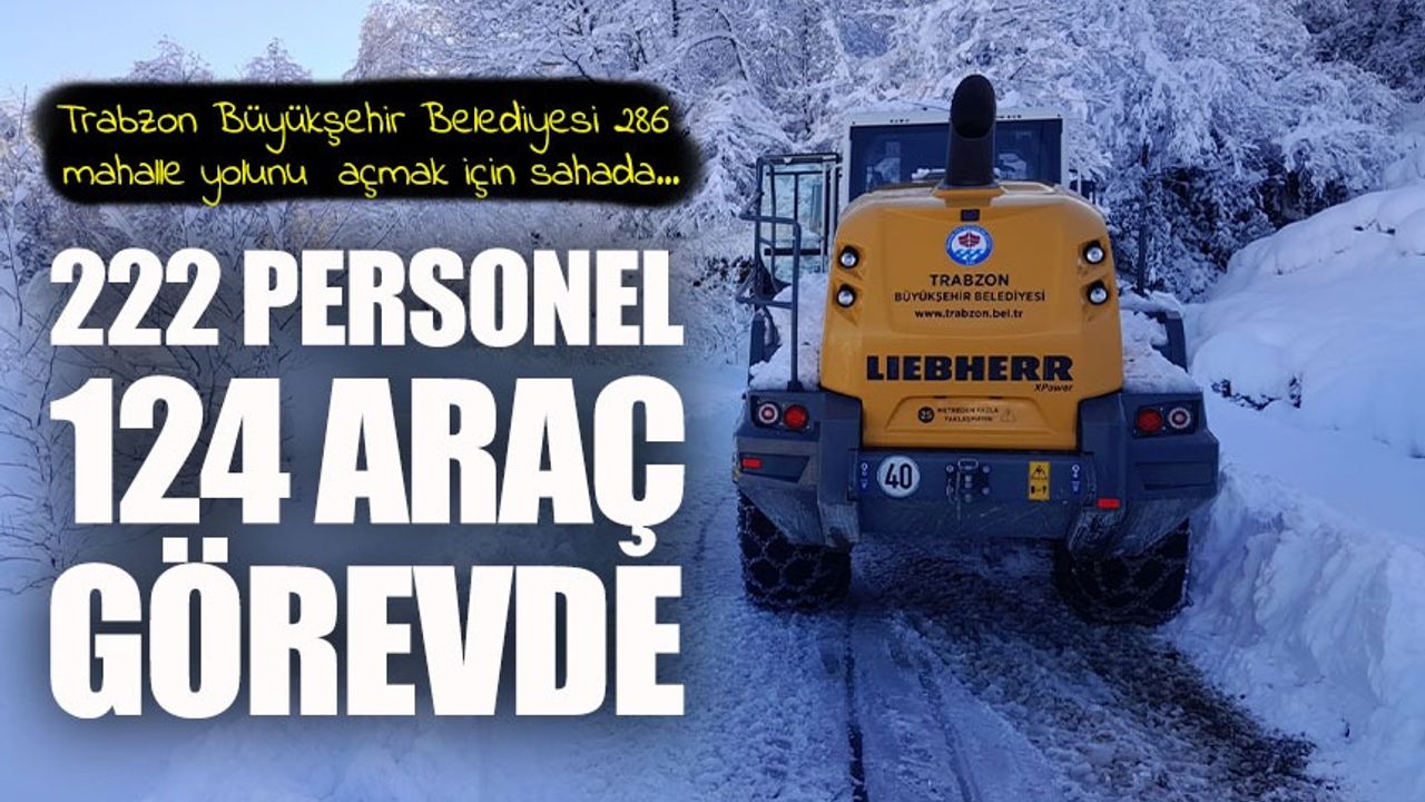 Trabzon genelinde özellikle yüksek rakımlı ilçelerde etkili olan kar yağışı, ulaşımda ciddi aksamalara neden oldu. Büyükşehir Belediyesi Yol Yapım Bakım ve Onarım Dairesi Başkanlığı’na bağlı ekipler, 122 personel ve 100 iş makinesi ile kapanan yolları açmak için çalışmalarını sürdürüyor.