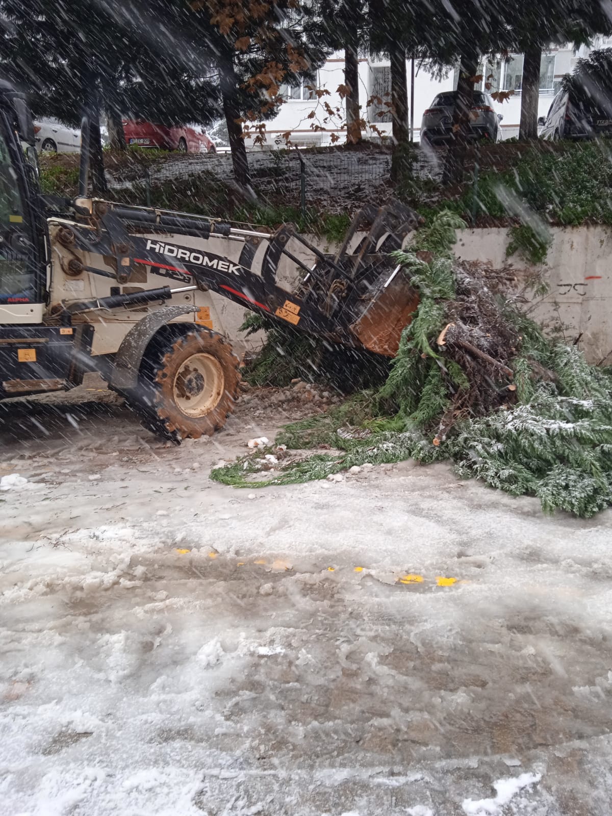 Kar yağışıyla birlikte bazı mahallelerde karın ağırlığıyla eğilen veya kırılan ağaçlara da müdahale edildi. Park ve Bahçeler Dairesi ekipleri, tehlike arz eden ağaç dallarını budayarak yayalara ve araçlara yönelik riskleri ortadan kaldırdı.