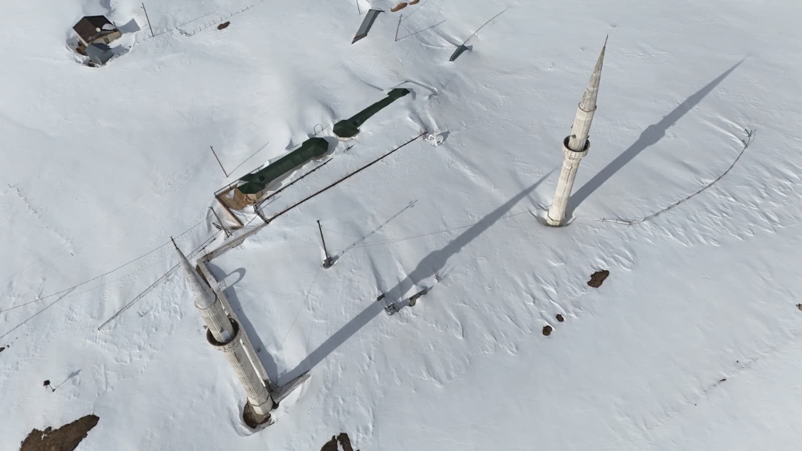 Doğa tutkunu Muhammet Uludüz tarafından dron ile kaydedilen görüntüler, Kadırga Yaylası’nın kış manzarasını gözler önüne serdi. Açık hava cami, çevresindeki obalar ve karla kaplı zirveler izleyenleri adeta büyüledi.