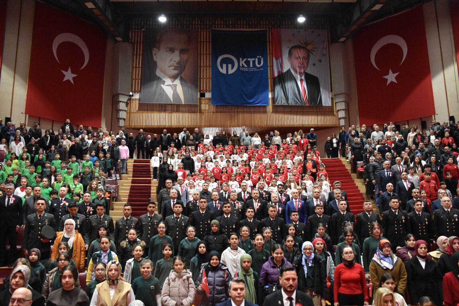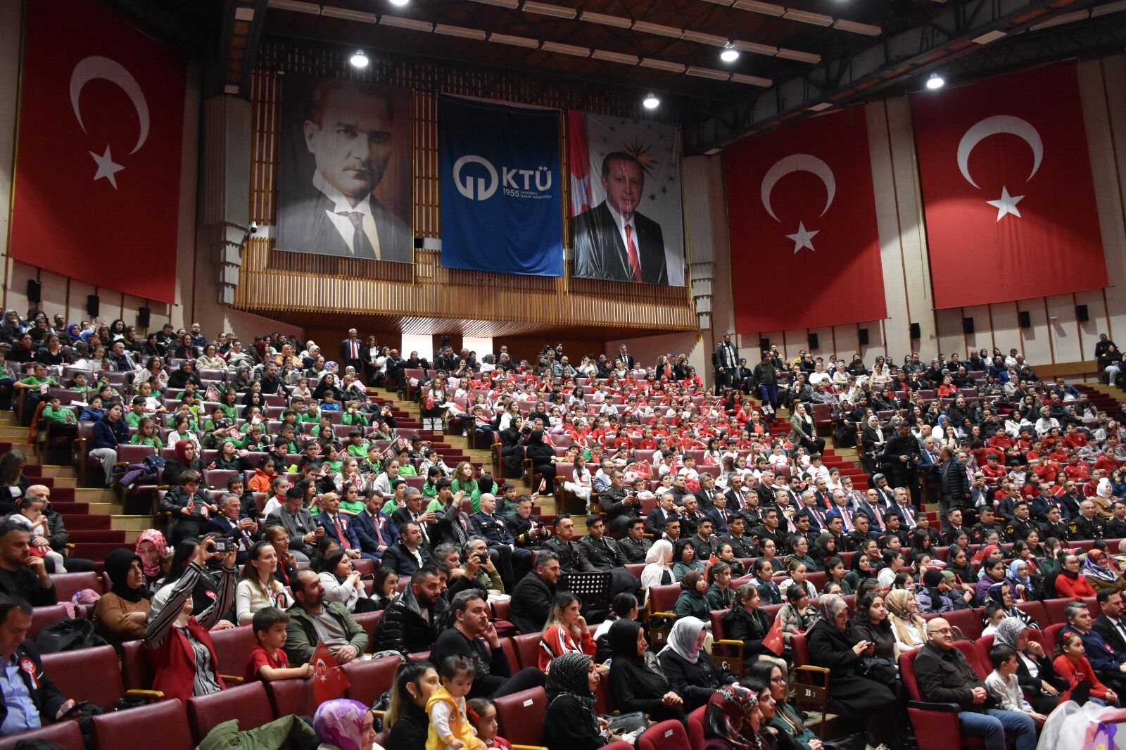 Kutlamalar daha sonra Karadeniz Teknik Üniversitesi Atatürk Kültür Merkezi’nde sürdü. Öğrencilerin hazırladığı gösteriler büyük ilgi görürken, törende konuşan Uygun, çocuklara daha güçlü bir gelecek bırakmanın önemine vurgu yaptı. Programda Vali Tahir Şahin ve protokol üyeleri dereceye giren öğrencilere ödüllerini verdi.