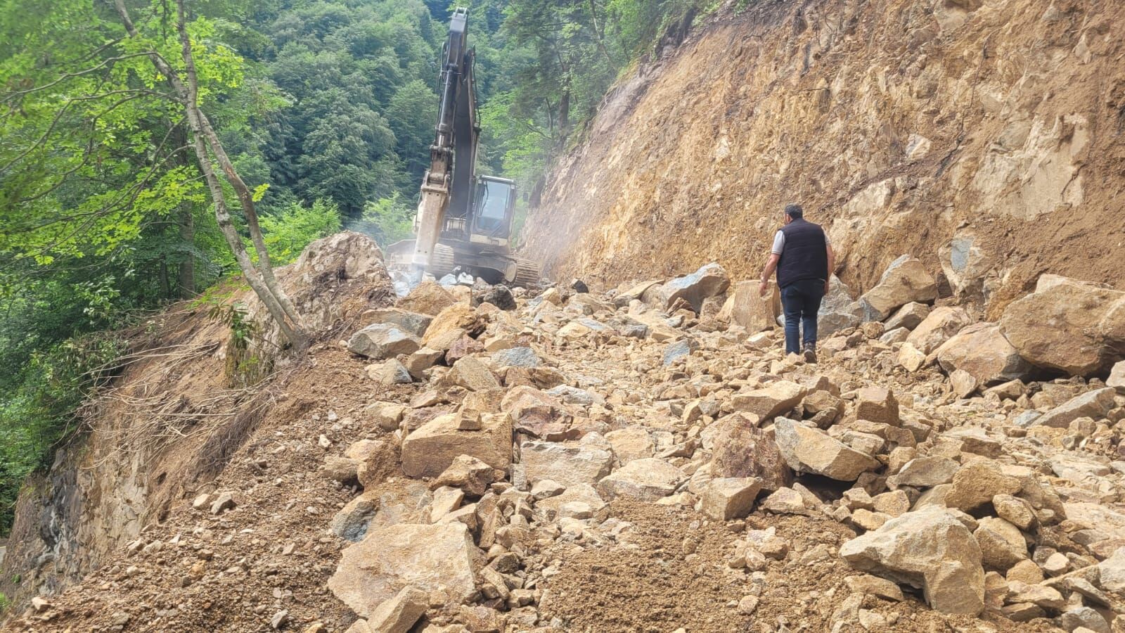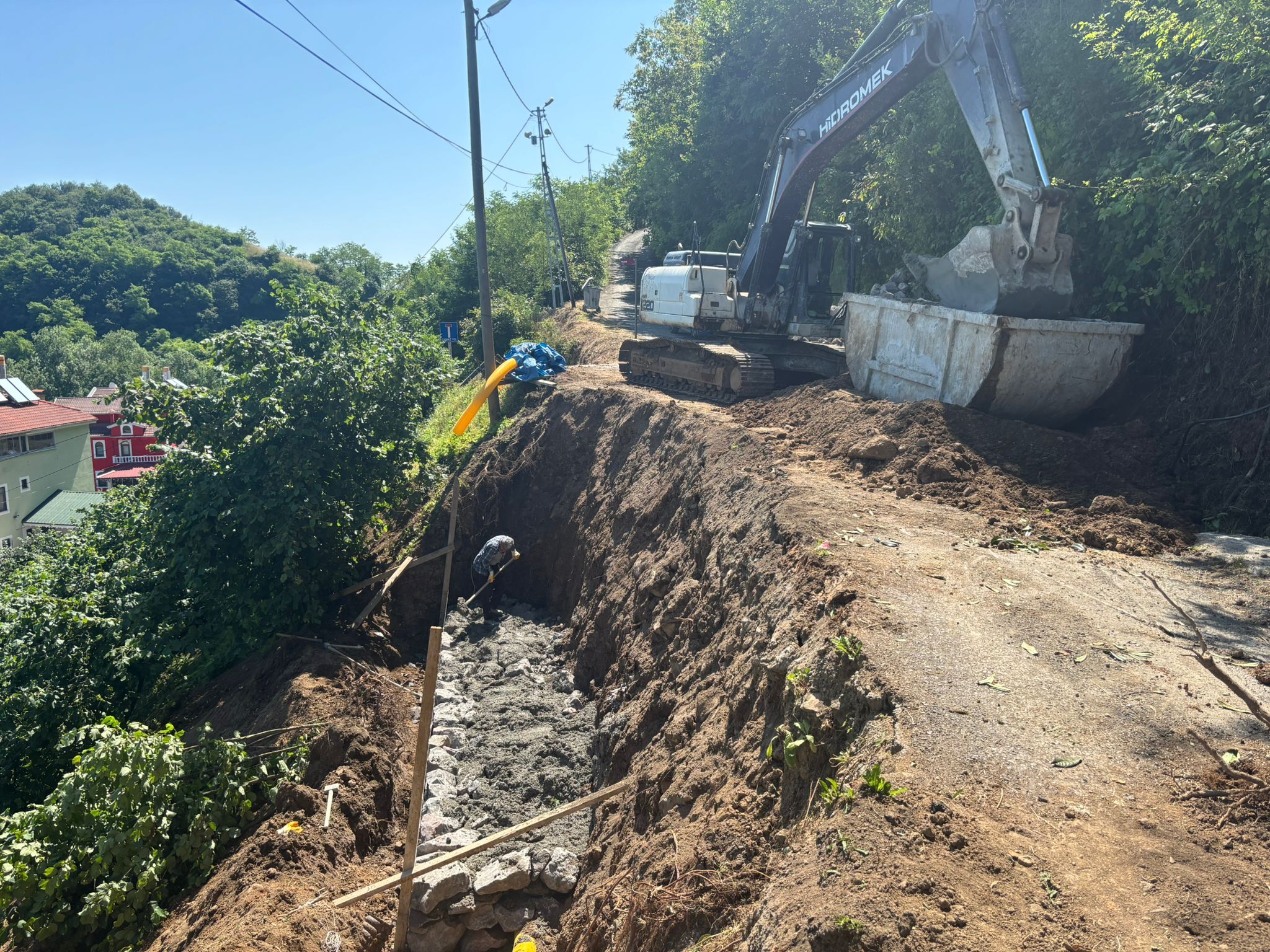 Trabzon Büyükşehir Belediyesi ekipleri, yeni yol açma ve genişletme çalışmalarını da sürdürüyor.