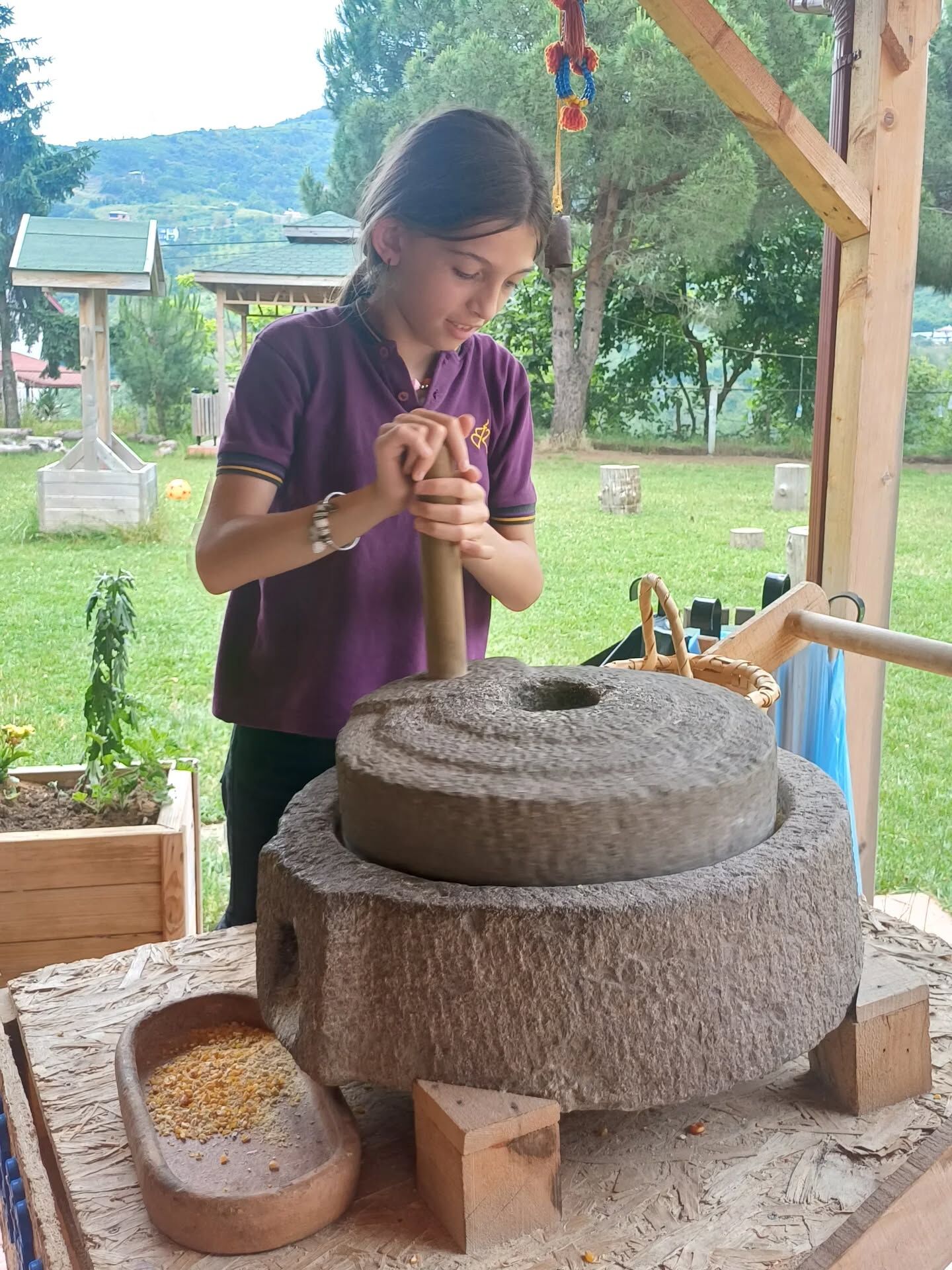 Çocuklar burada hayvanları besliyor, kendi yoğurtlarını mayalıyor, ekmeklerini pişiriyor ve doğadan topladıkları ürünlerle sağlıklı yiyecekler yapmayı öğreniyor.