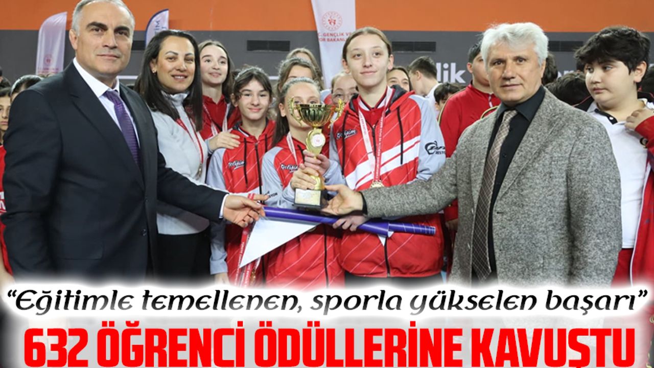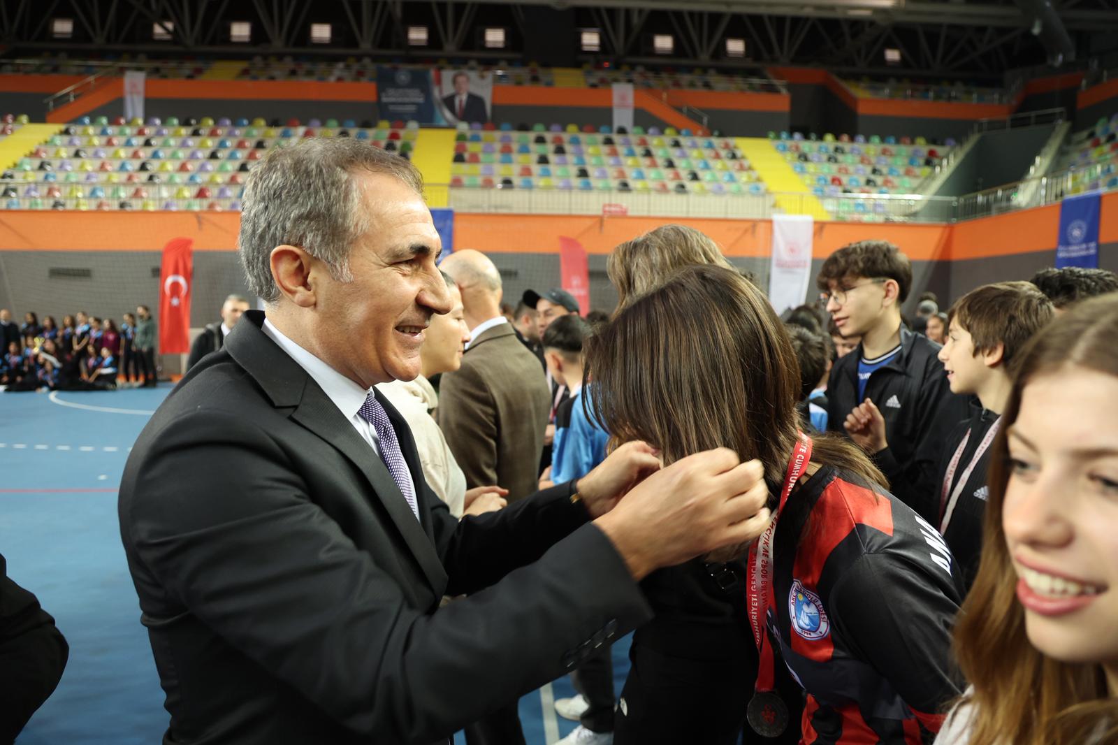 “Bugün burada; akademik çalışmalarının yanı sıra spor organizasyonlarına verdikleri katkılarla öne çıkan 33 okulumuzdan 632 öğrencimizin ödül takdimini gerçekleştirmek üzere bir araya geldik. Bu başarıda emeği geçen tüm okullarımıza, öğretmenlerimize, yöneticilerimize ve sevgili öğrencilerimize teşekkür ediyorum,” dedi.