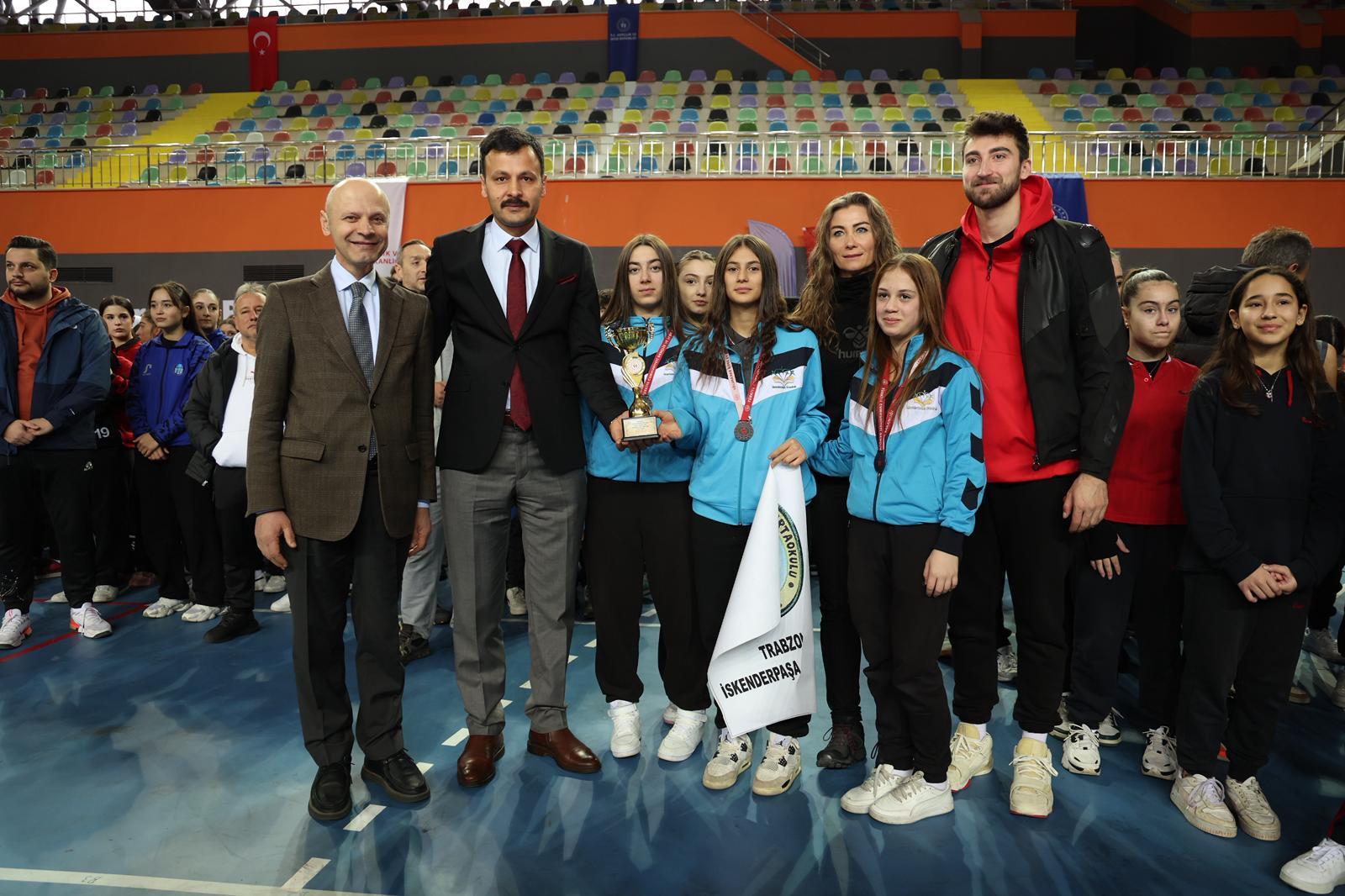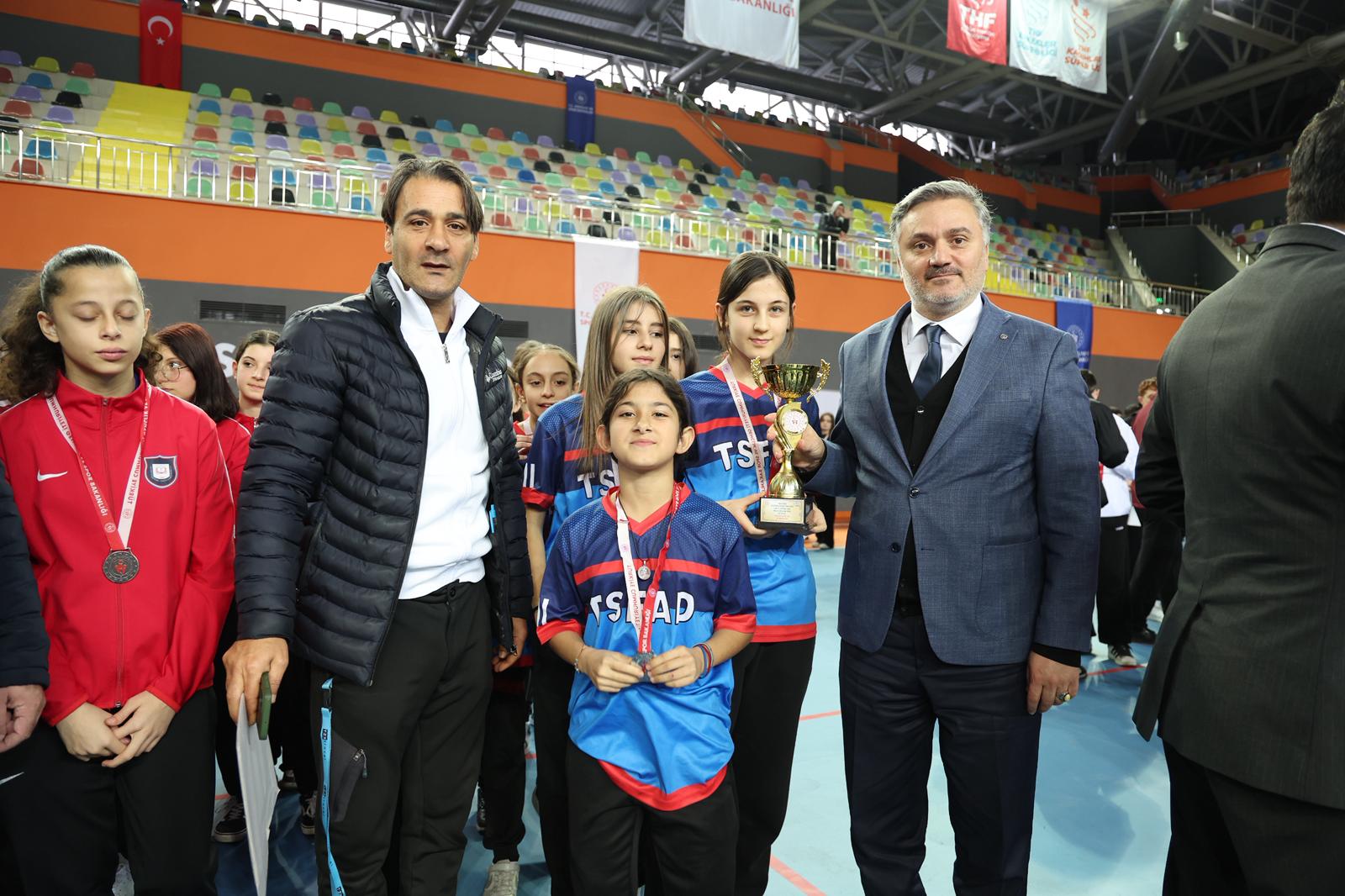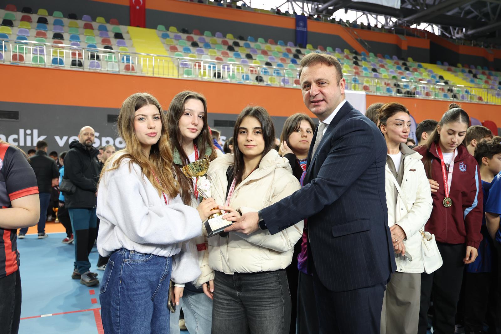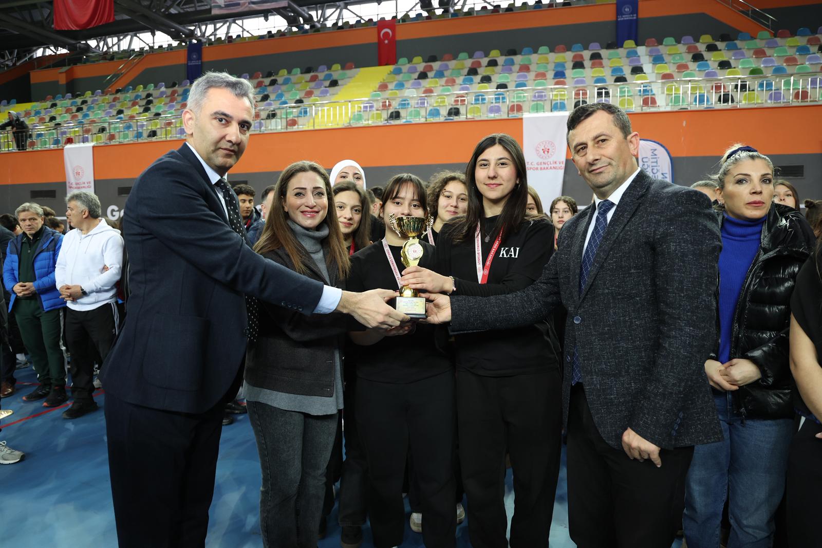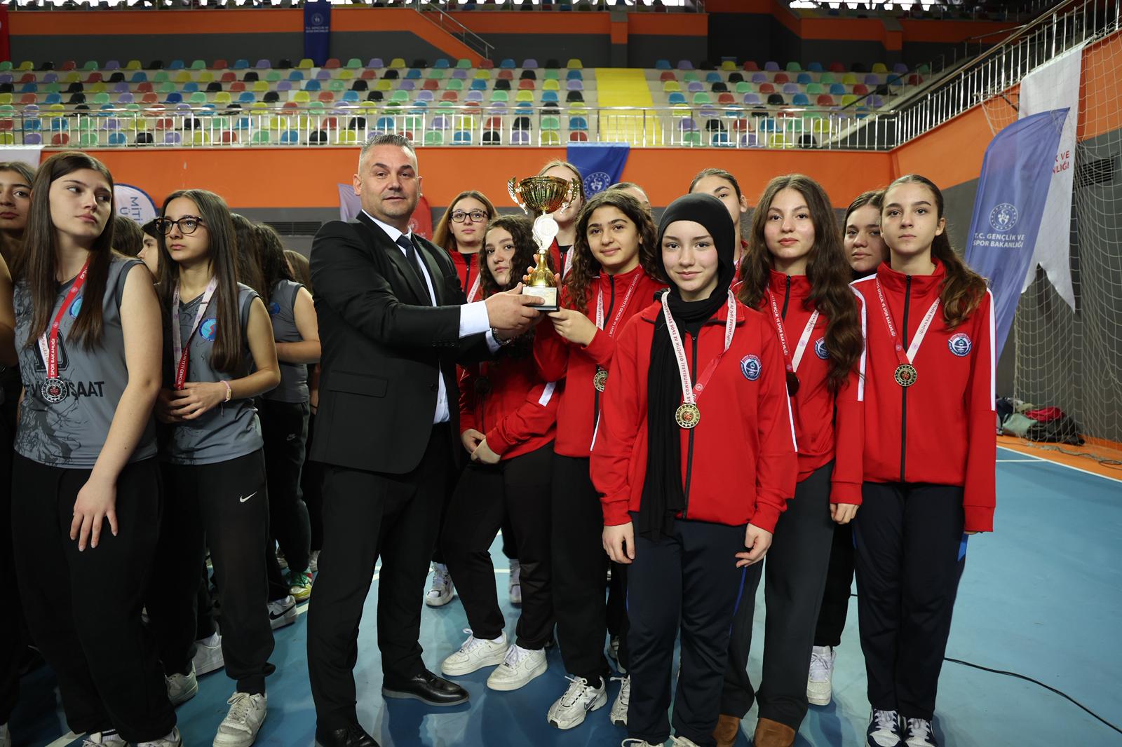 Voleybol, futsal ve hentbol olmak üzere 3 branşta, 6 farklı kategoride dereceye giren okul ve sporculara kupa ve madalyaları protokol üyeleri tarafından takdim edildi.