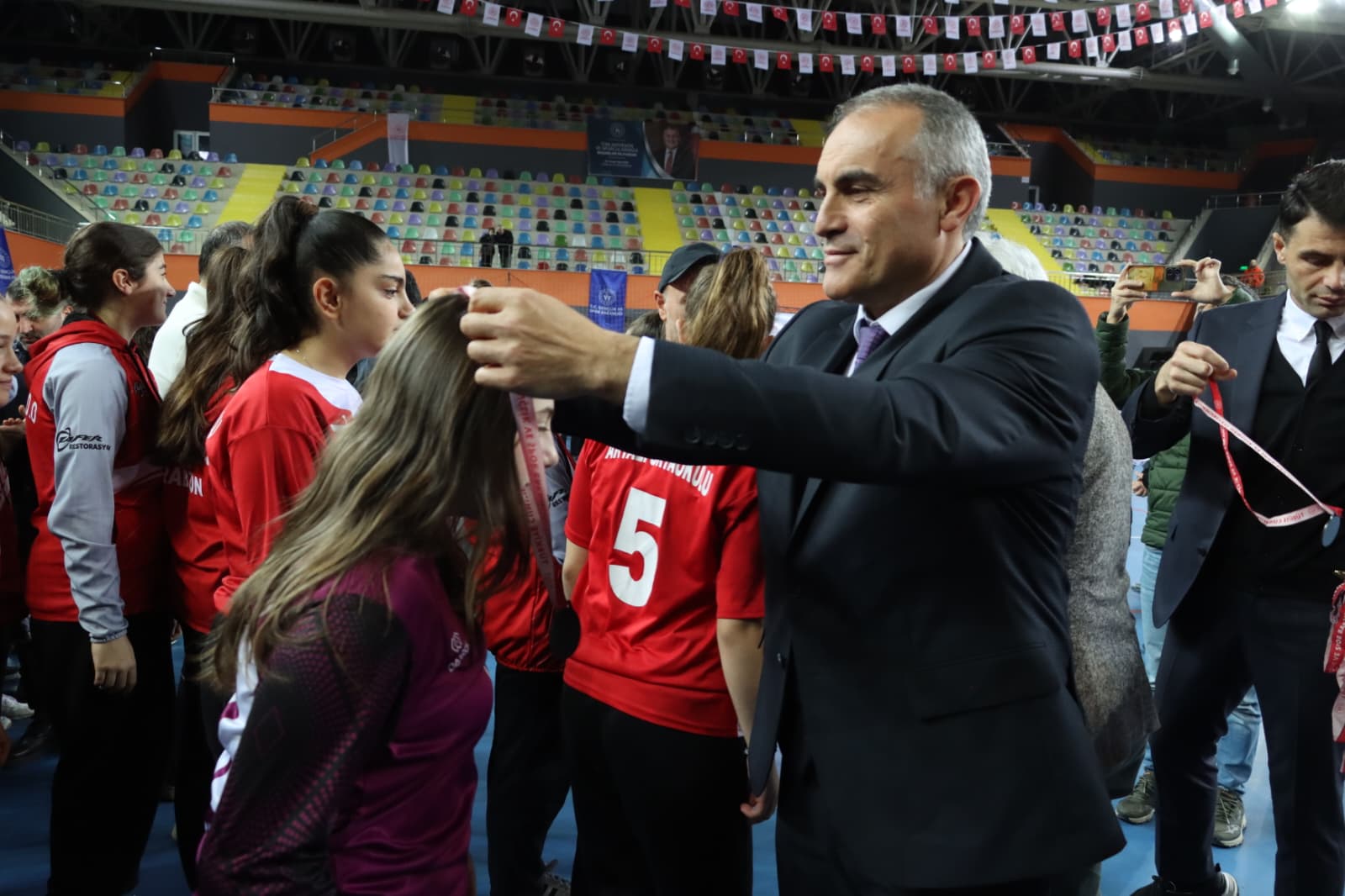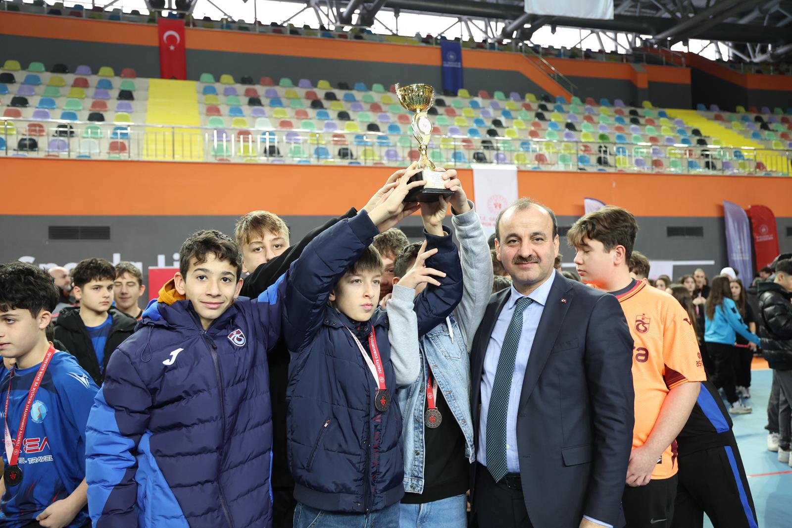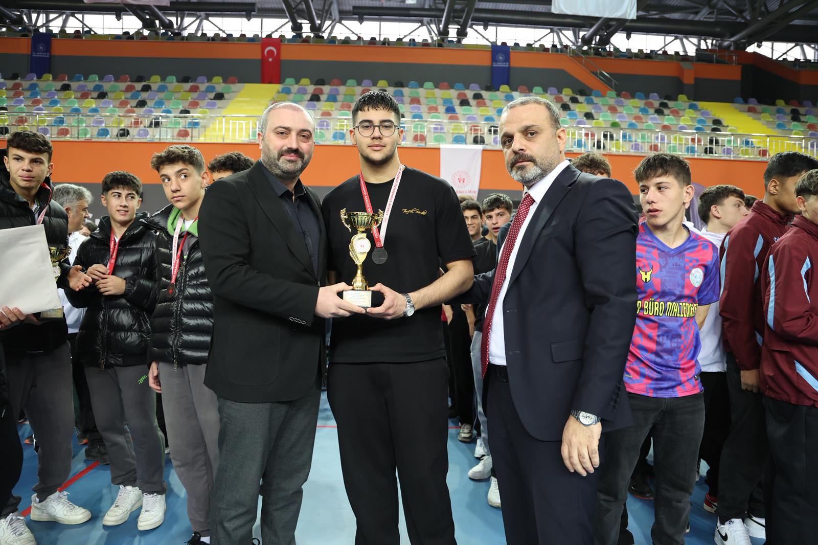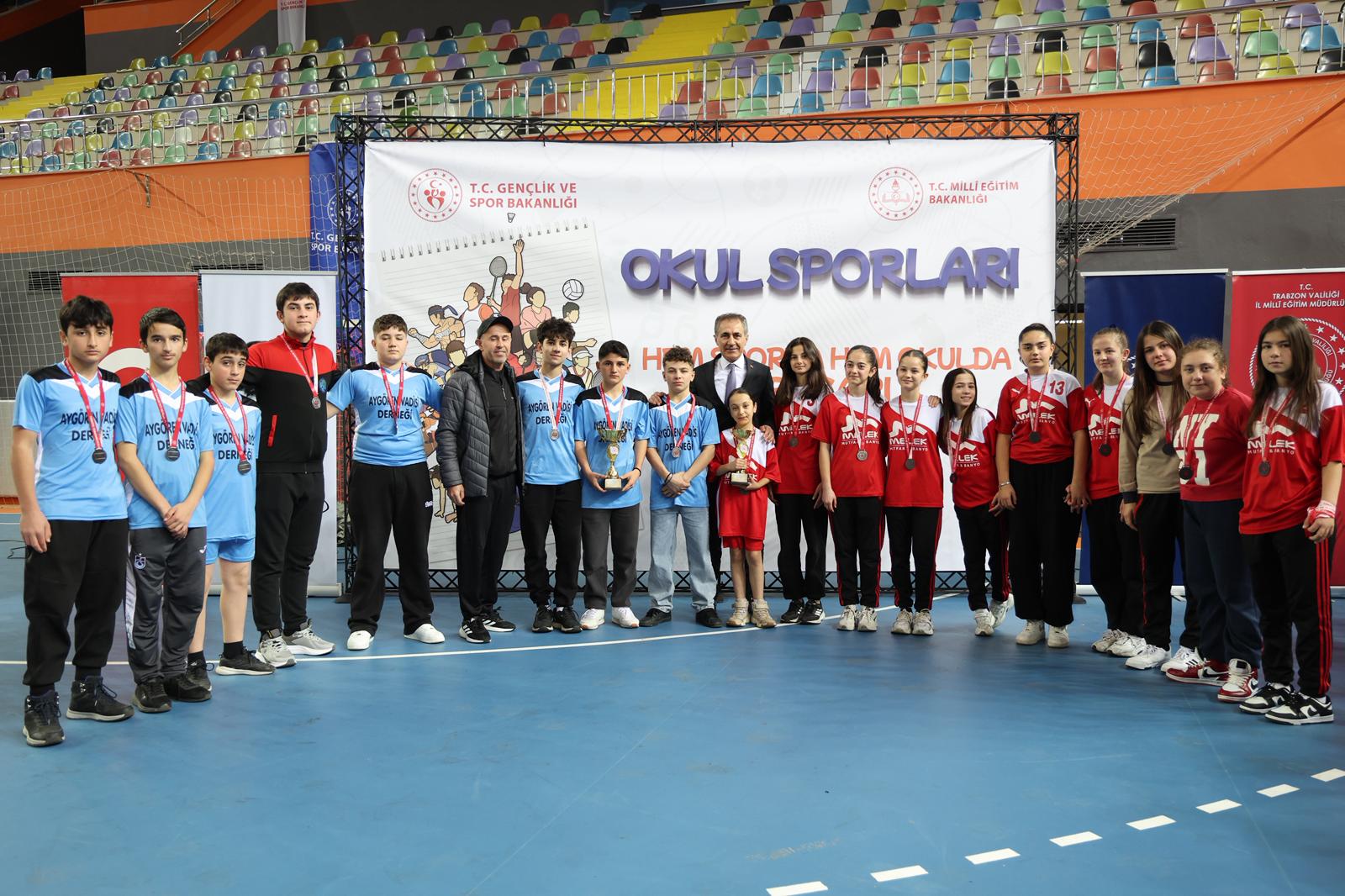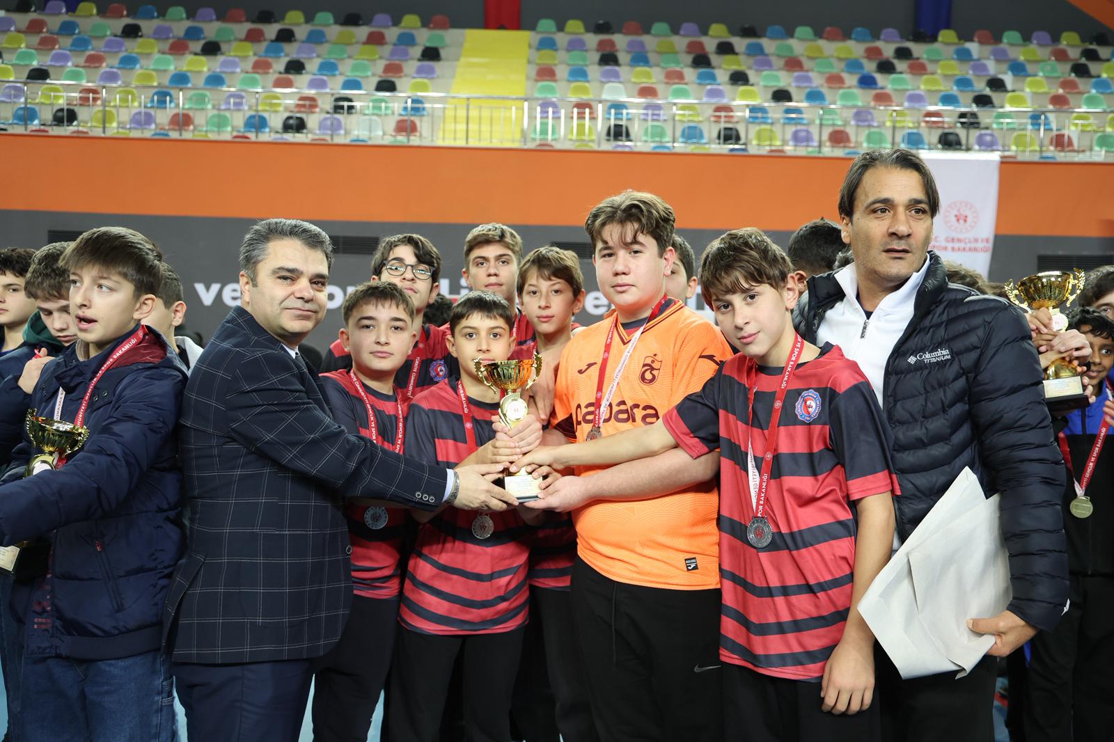 Voleybol, futsal ve hentbol olmak üzere 3 branşta, 6 farklı kategoride dereceye giren okul ve sporculara kupa ve madalyaları protokol üyeleri tarafından takdim edildi.