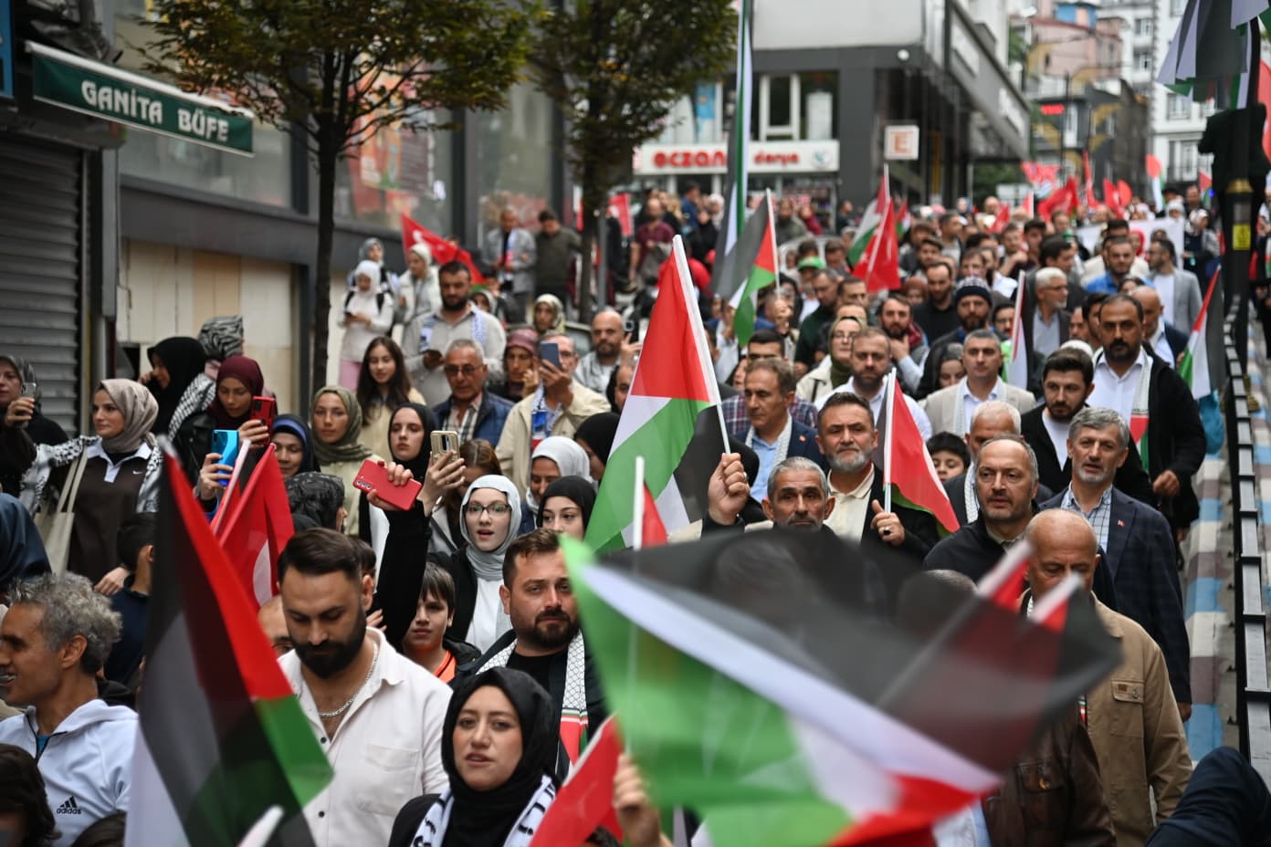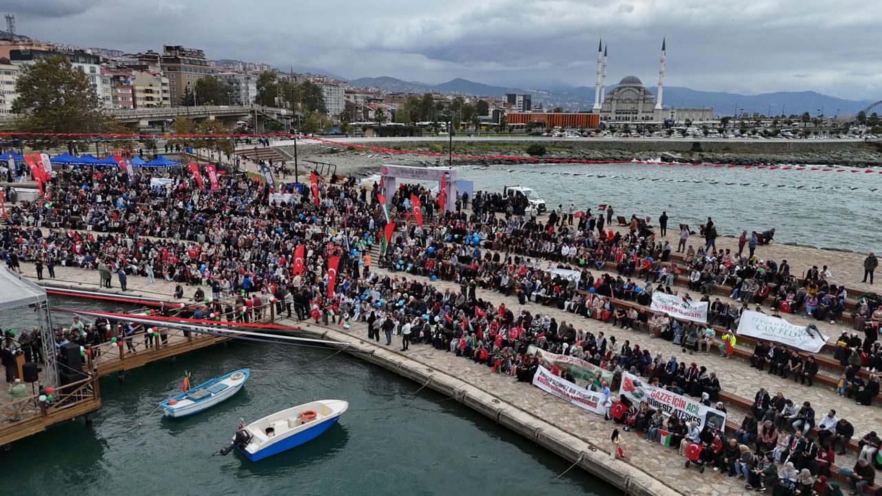 Vatandaşların da yoğun ilgi gösterdiği etkinlikte, Gazze halkına Trabzon’dan dayanışma mesajı verildi.