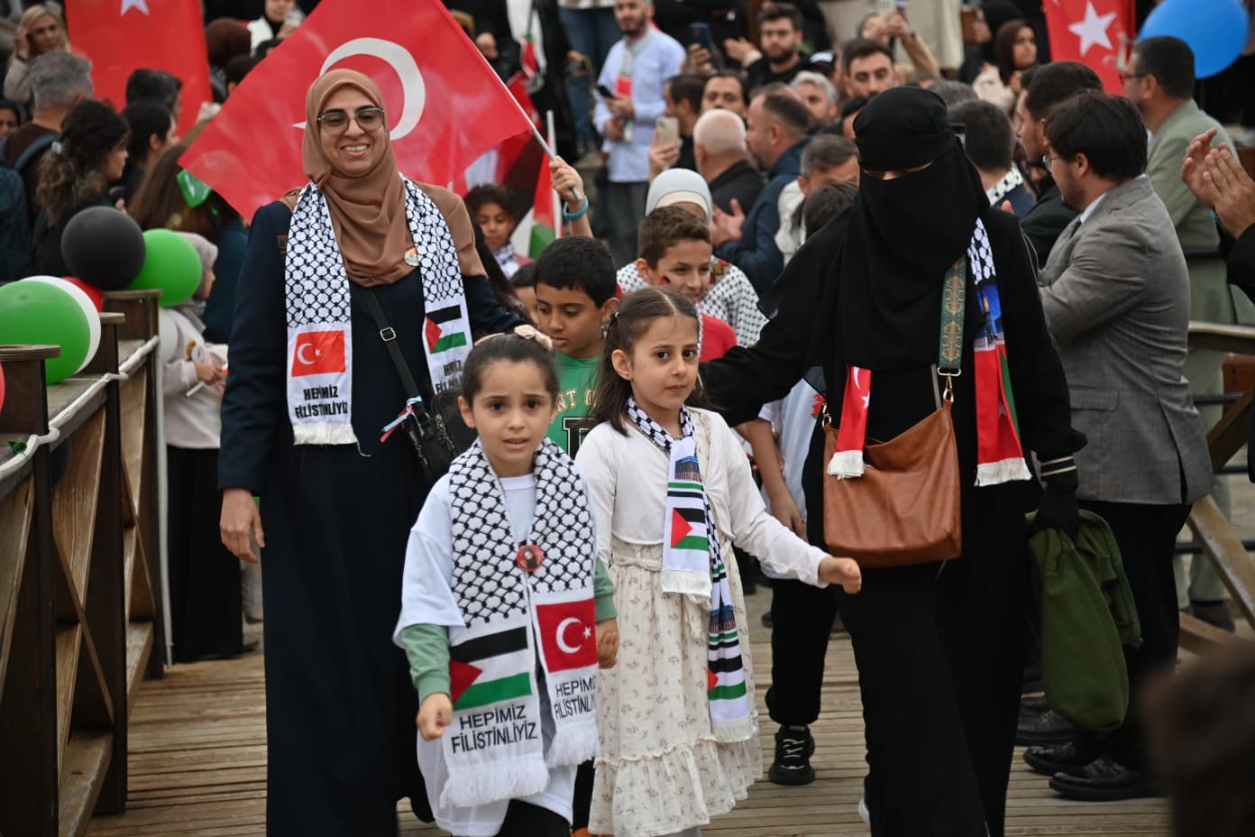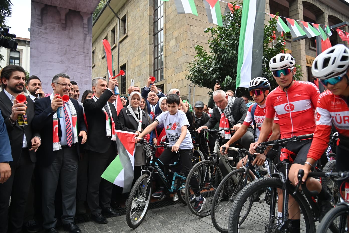 Etkinlikte bisiklet yarışına ek olarak yürüyüş de yapıldı. Ellerinde hem Türk bayrakları hem de Filistin bayrakları taşıyan katılımcılar, Maraş Caddesi’nden yürüyerek Uzun Sokak’a geçti.