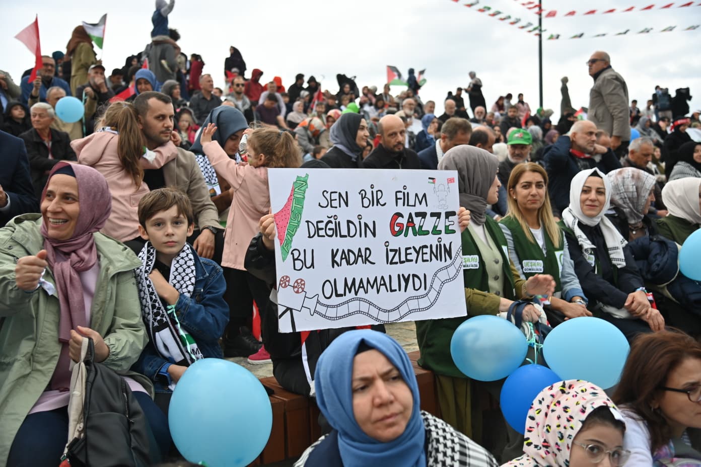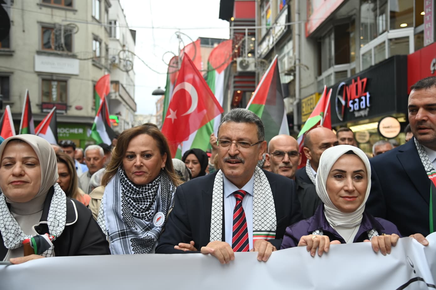 Gazze’de ki kardeşlerimiz, Filistin’de ki kardeşlerimiz susuzluktan, açlıktan ölen çocuklarımız, bomba yağdırılan hastanelerde ölen hastalar, kadınlar, erkekler asla yalnız değillerdir. Bir insanlık, onlarla beraberdir. Bizde Trabzon’dan yaptığımız bu etkinlikle ki Büyükşehir Belediye Başkanımıza buradan çok büyük teşekkür ediyorum.