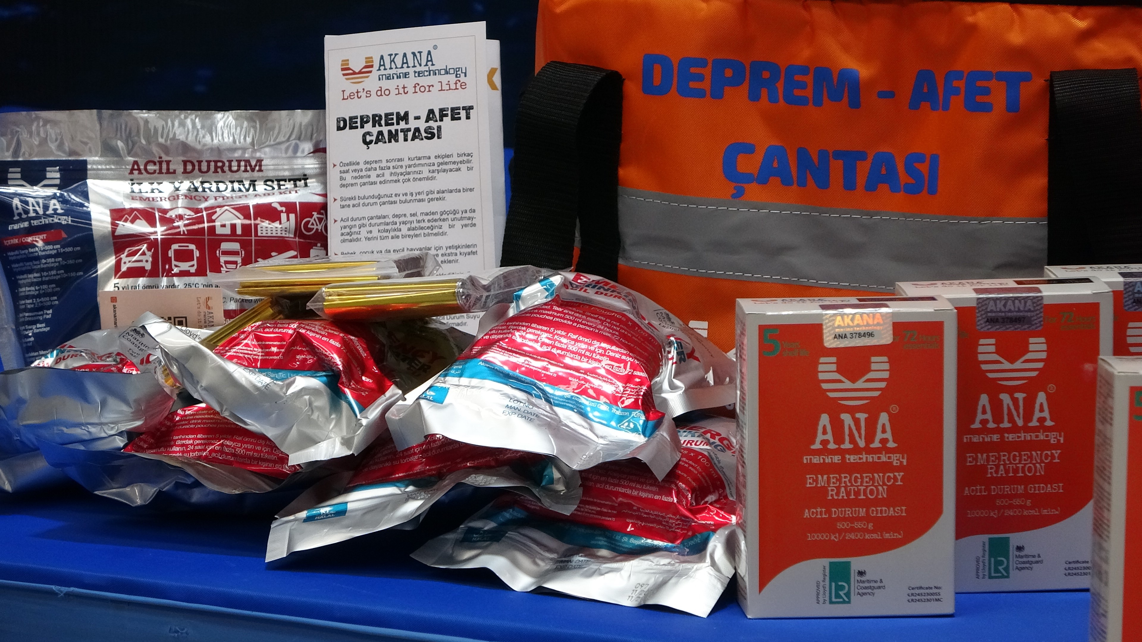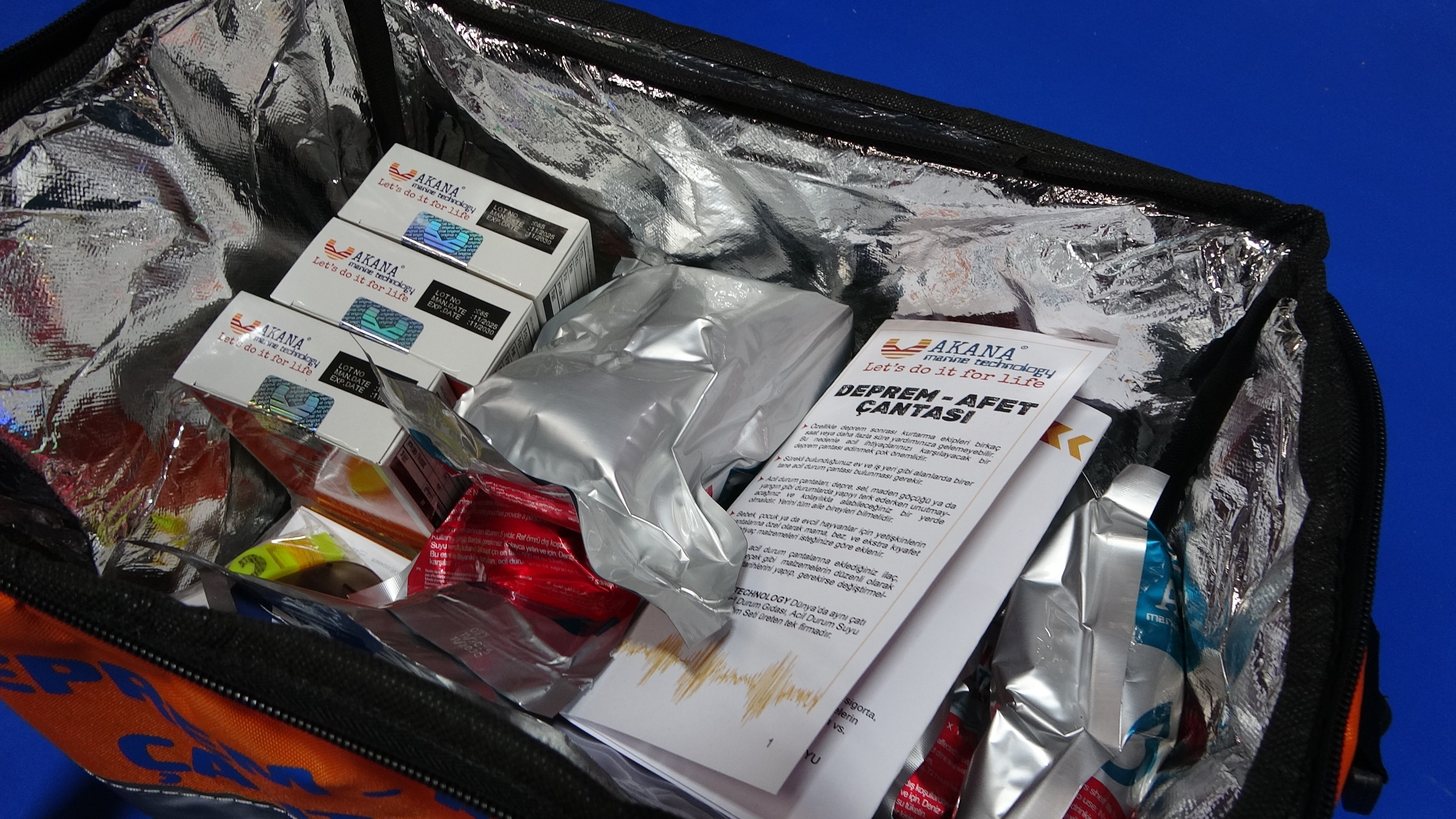 Acil durum gıdası, acil durum suyu ve ilk yardım setiyle birlikte 72 saatlik yaşam desteği sunan yerli deprem çantası uluslararası standartlarda hazırlanıyor.