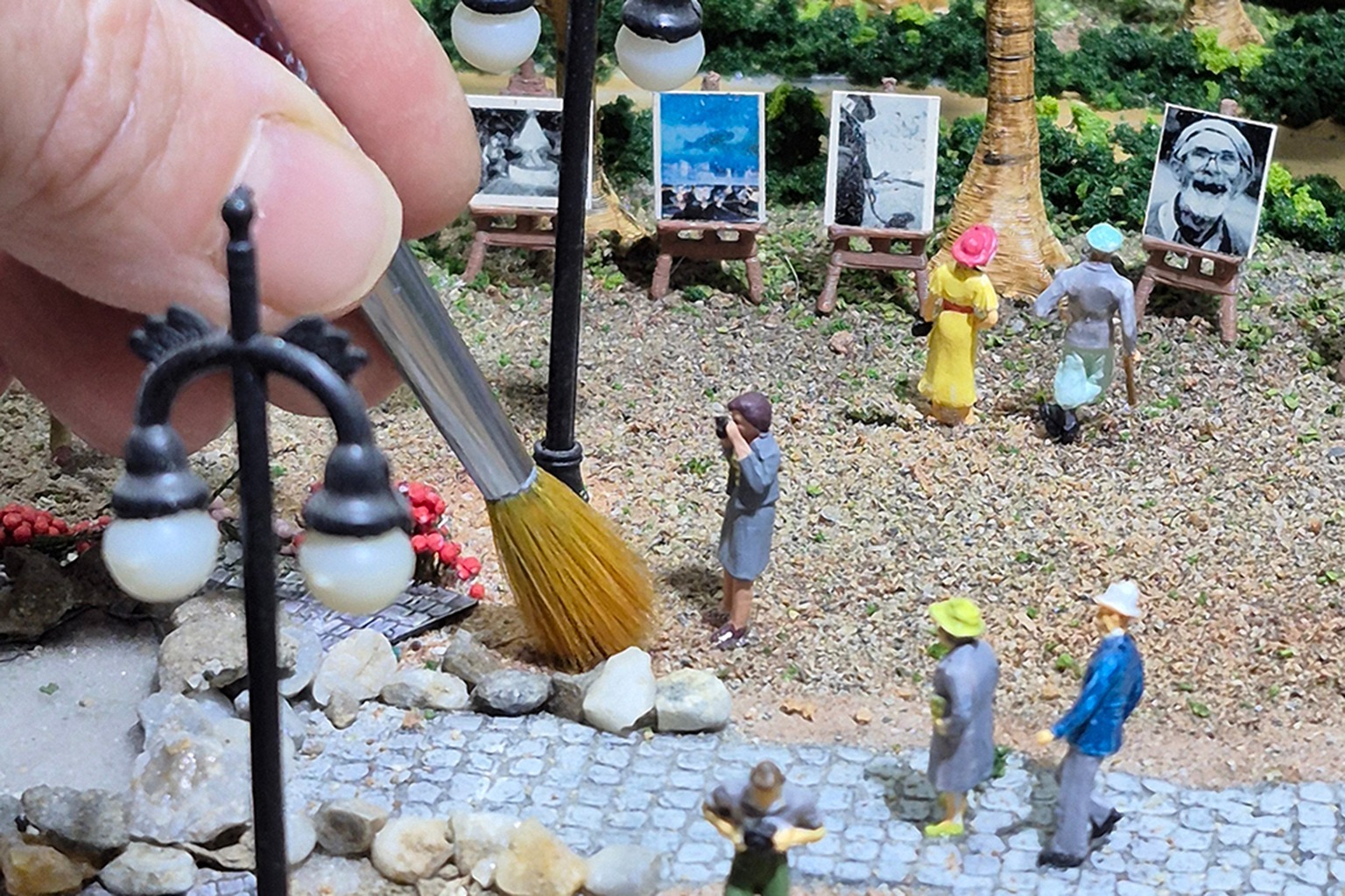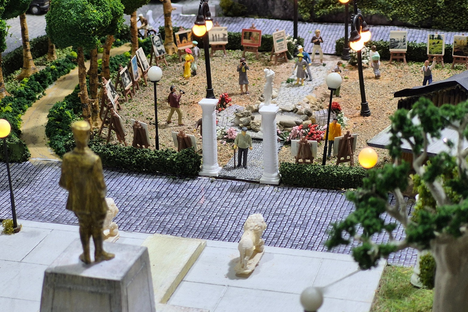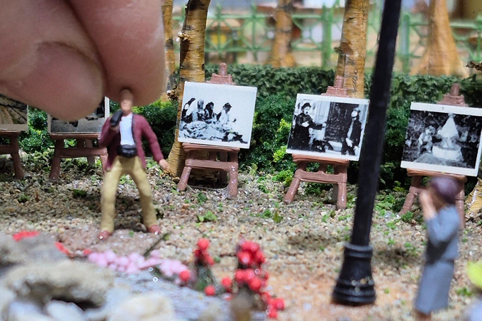 Çok küçük ölçekteki kurguda, kendi çektiği fotoğraflarından oluşan kişisel fotoğraf sergisi izleyicisiyle buluştu. Minyatürün içerisinde yer alan Atatürk Parkı’ndaki sergide renkli ve siyah beyaz baskılı fotoğraflar şövalyelerin üzerinde sergileniyor.