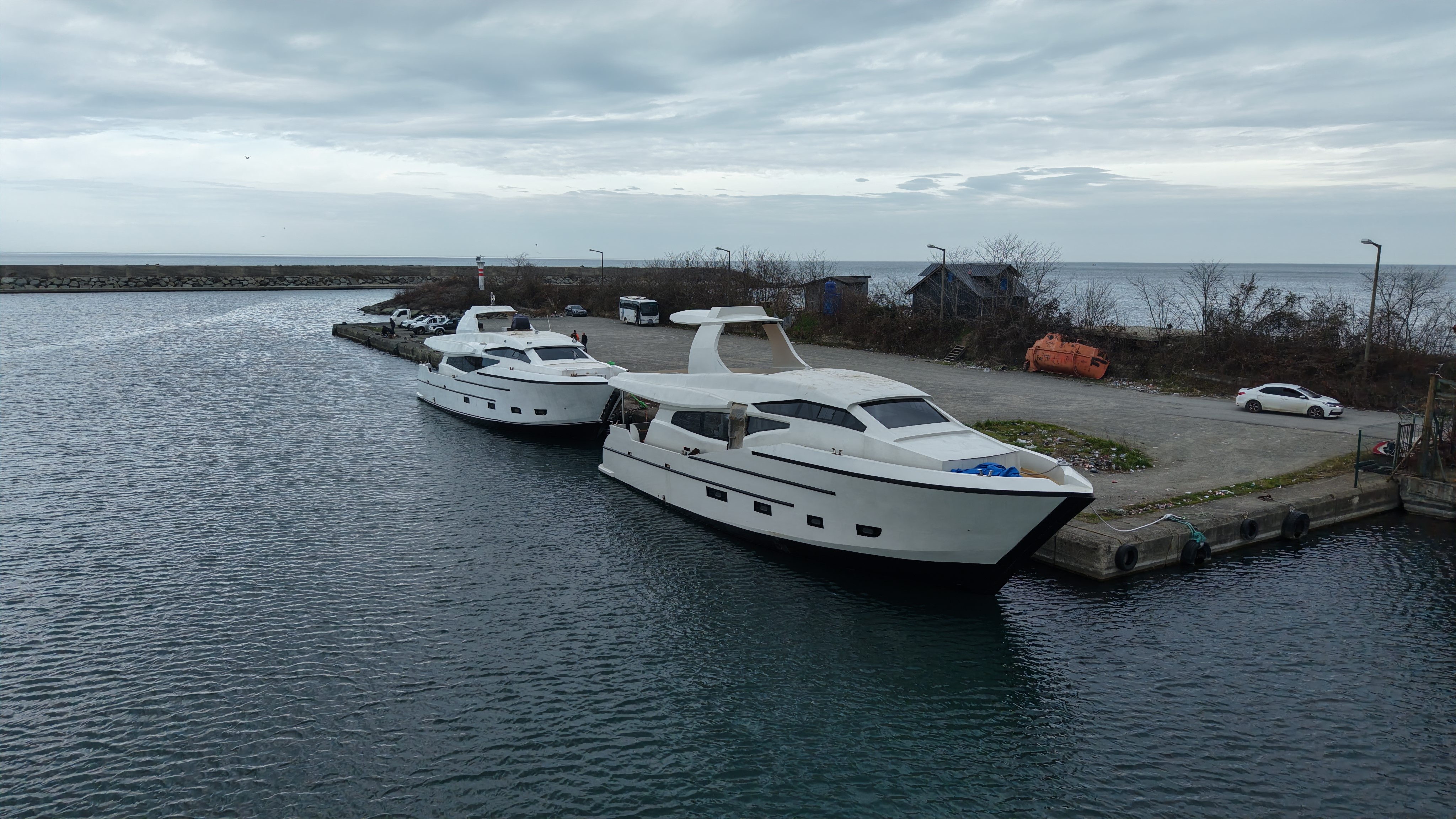 Yatların tersaneden denize ulaştırılması ise başlı başına bir operasyon gerektirdi. Tırlara yüklenerek yaklaşık 1 kilometrelik mesafede taşınan tekneler, vinç yardımıyla Of Limanı’ndan denize indirildi. Bu süreç bir gün boyunca sürdü ve büyük bir dikkatle yürütüldü.
