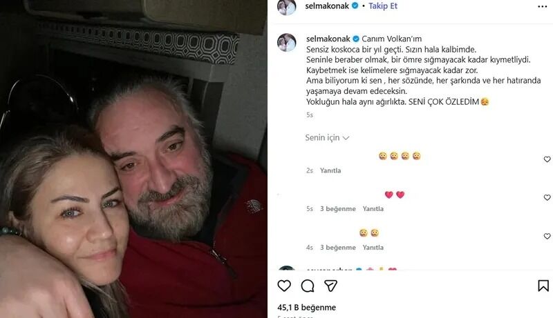 Selma Konak, eşinin vefatının birinci yılında yaptığı paylaşımda duygularını samimi ifadelerle dile getirdi. Eşiyle birlikte çekilmiş bir fotoğrafı paylaşan Konak, geçen bir yılın ardından yaşadığı özlemi şu sözlerle anlattı: