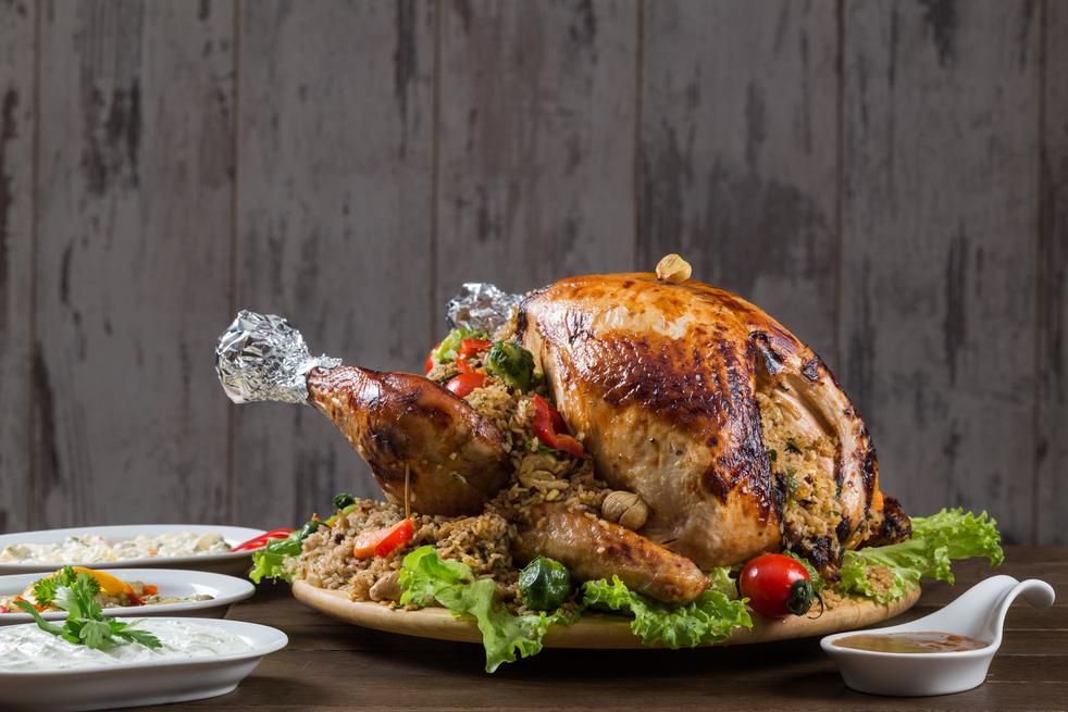 Servis ederken hindiyi pilavla doldurun, üzerine gravy sos dökerek şık bir şekilde sunun.