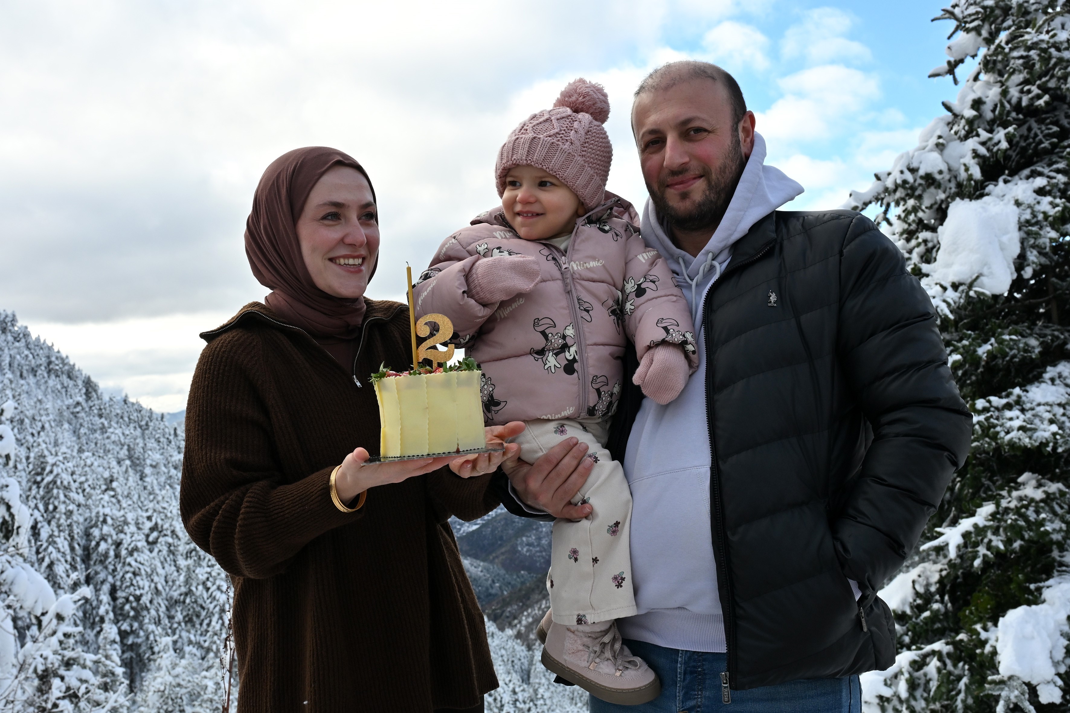 Hafta sonu Zigana’da yaşananlar sadece kar keyfiyle sınırlı değildi. Kalabalık arasında kızları için doğum günü kutlamaya gelen Hülya ve Sezer Ateş çifti, kar üstünde 2 yaş pastası keserek renkli anlara imza attı. Hülya Ateş, “Normalde evde kutlardık ama kar yağınca burayı tercih ettik. Hem doğayla iç içe olduk hem de çocuklarımız karla tanıştı” dedi.
