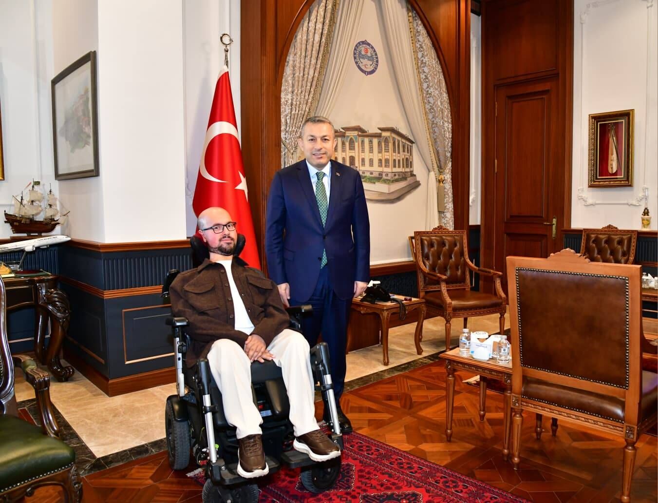 Trabzon Valisi Tahir Şahin, Türkiye Boccia Şampiyonası’nda elde ettiği başarıyla dikkat çeken milli sporcu Emre Vural ve annesi Nihal Vural’ı makamında ağırladı. Ziyarette, Emre Vural’ın azmi, kararlılığı ve mücadelesiyle elde ettiği başarı ele alınırken, sporcunun başarı hikâyesi de paylaşıldı. Vali Şahin, Emre Vural’ı tebrik ederek başarılarının devamını dilerken, sporcu ve ailesine ziyaretlerinden dolayı teşekkür etti.