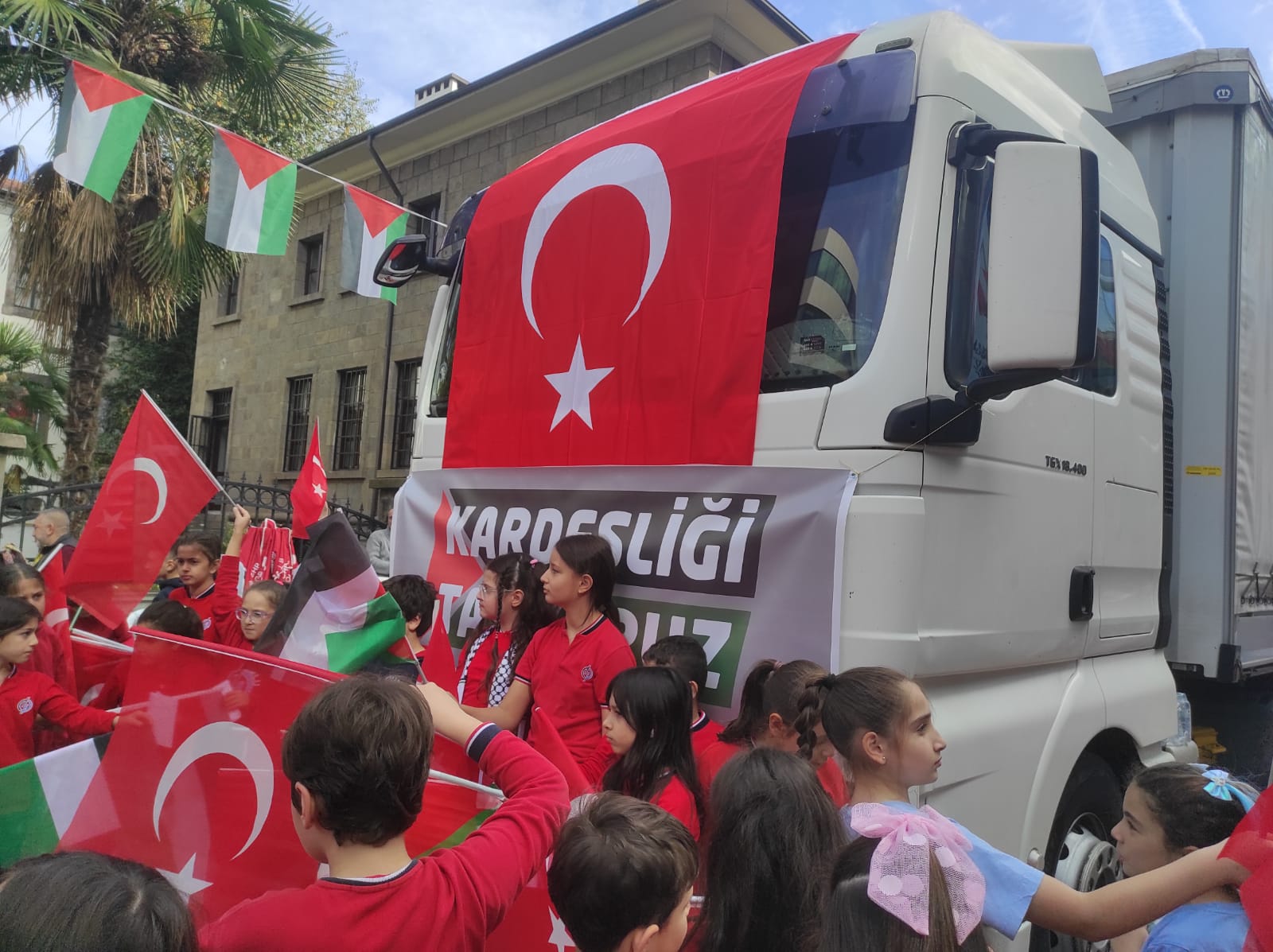 Ayrıca bugün 100 öğrencimizin kaleme aldığı 100 mektup da Gazze’deki kardeşlerine gönderilecek.”