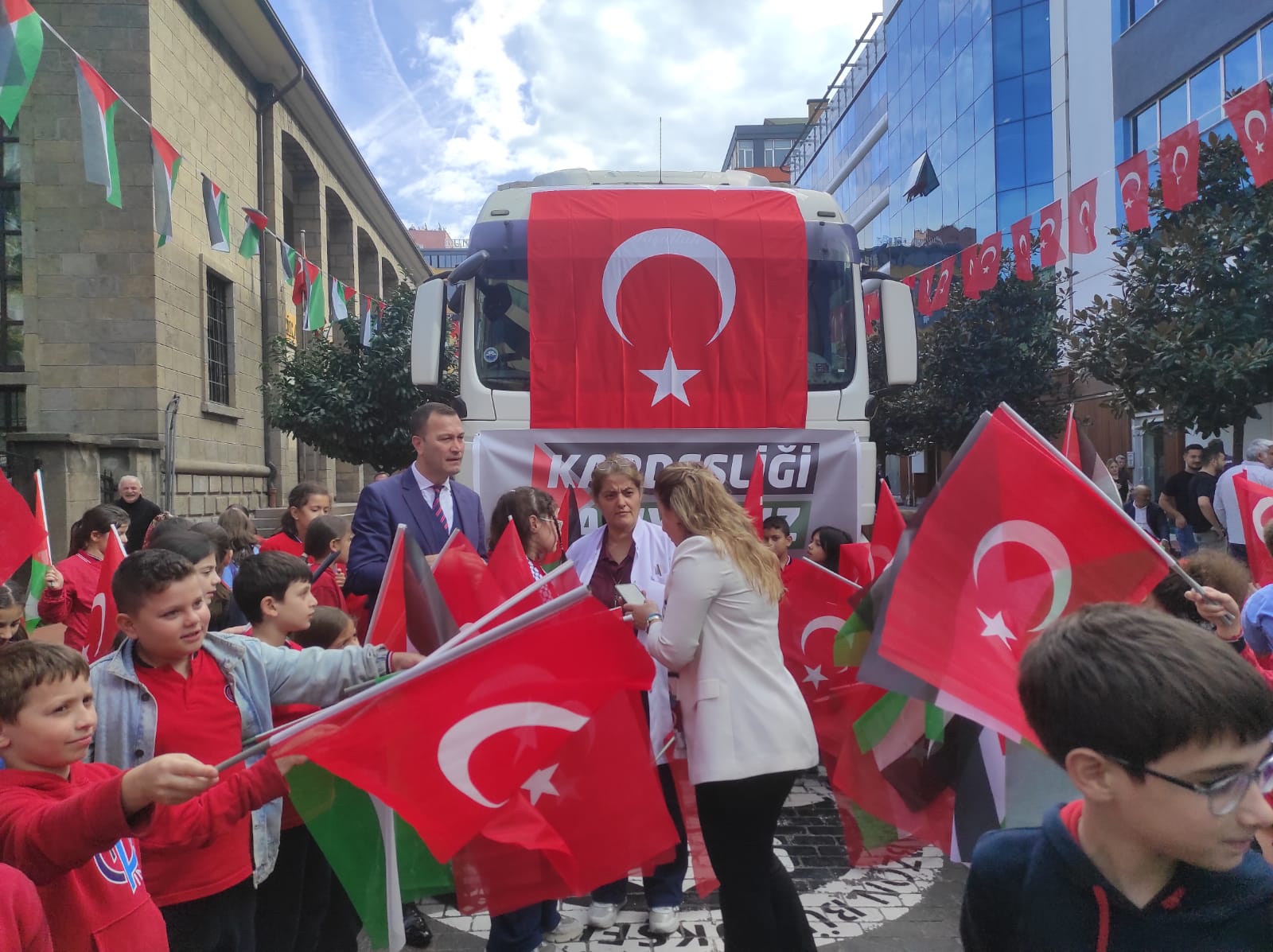 “Trabzon Büyükşehir Belediyemiz, Hayrat Yardım ve İl Milli Eğitim Müdürlüğümüzle birlikte gerçekleştirdiğimiz Gazze’ye yardım programına hoş geldiniz, sefalar getirdiniz.