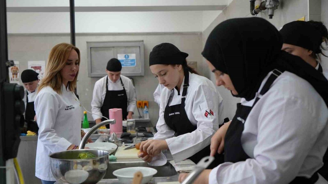 Yiyecek İçecek Hizmetleri Alan Şefi Aslı Sertbaş, bölümlerine olan ilginin yoğun olduğunu belirterek, "Tüm sınıflarımız kapasite olarak doludur. Rağbet gören bir bölümdür. Öğrenciler 10 ve 11 sınıfın yazında staja gidiyorlar. Otellerde 5 buçuk 6 ay staj yapıyorlar. Bizlerin proje ortağı olan oteller var. Antalya’da, Bodrum’da yeri geliyor Erasmus projeleri ile Almanya’da İtalya’da, Belçika’da öğrencilerimiz staj yapıyor. Direk sektörün içerisinde hazırlanmış oluyorlar. Sonrasında bu öğrencilerimiz sektörde çalıştıkları için sektörden çok talep görüyorlar. Öğrencilerimiz yiyecek, içecek bölümü öğrencileri oldukları için mutfaklarda aşçı olarak çalışıyorlar. Sonrasında yükselebiliyorlar. Yine servis personeli olarak çalışabiliyorlar. Öğrenciler 5 yıldızlı otellerde, restoranlarda görev alabiliyor" dedi.